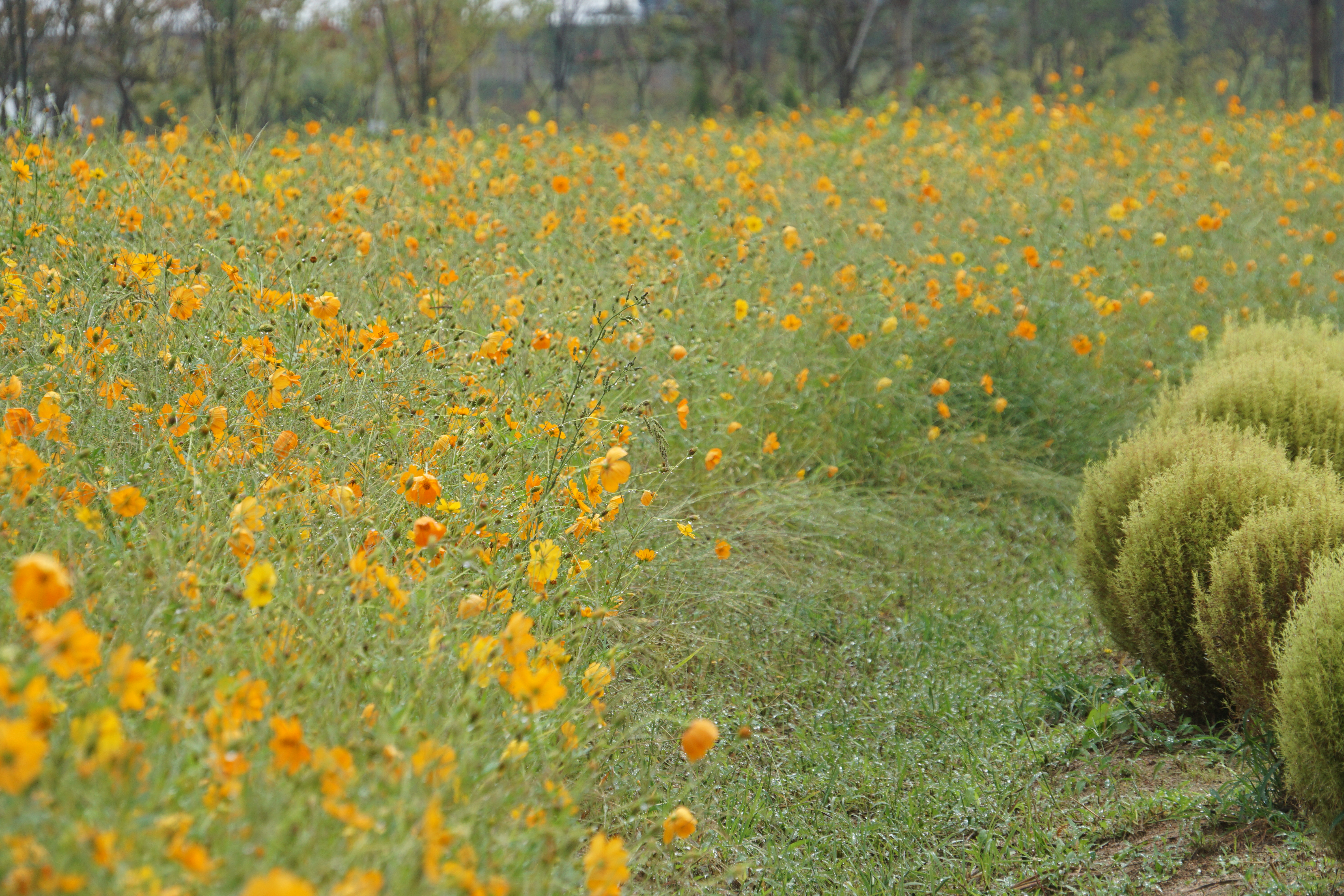 황화코스모스만 가득피어있고 일반코스모스는 더 있어야 한다.