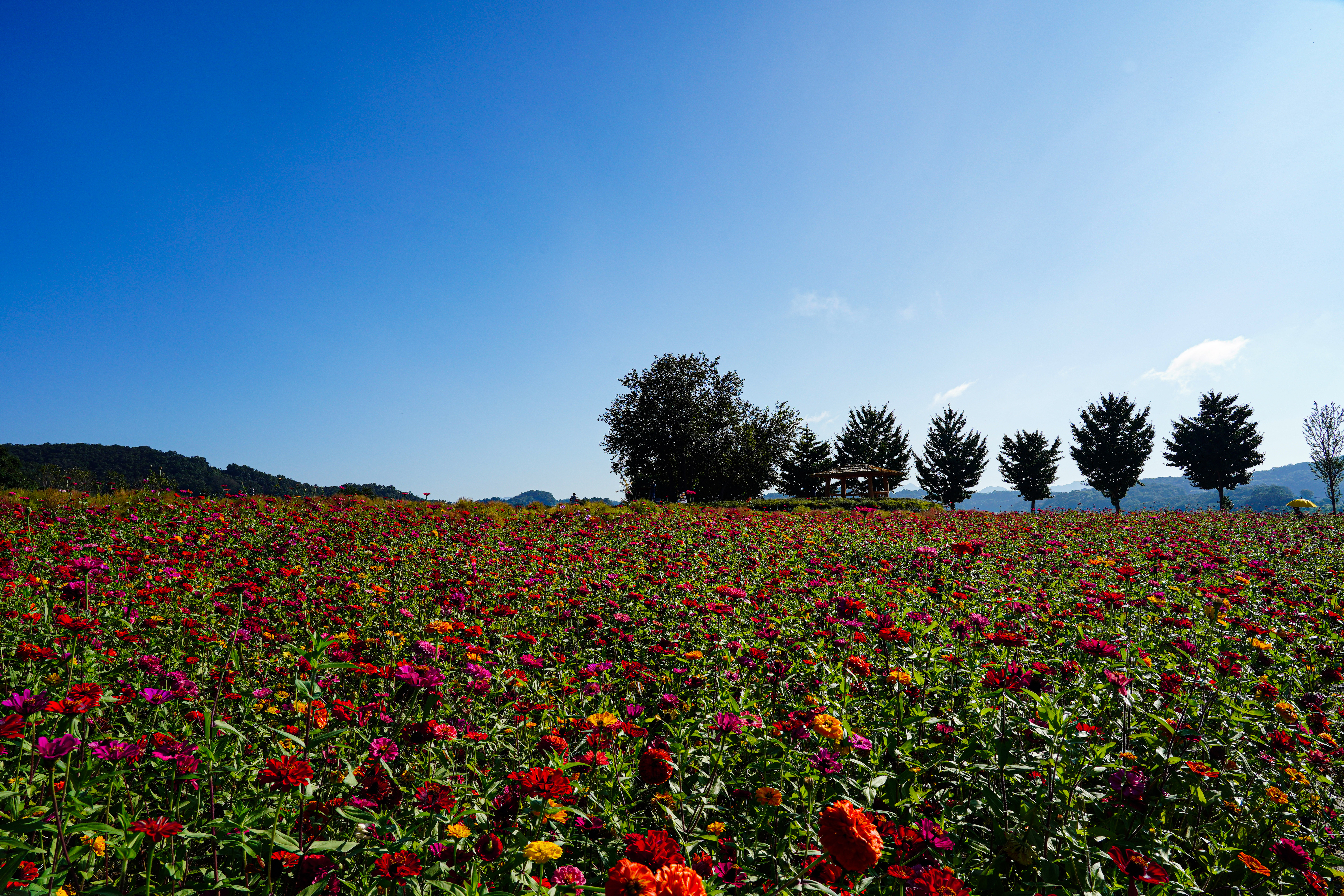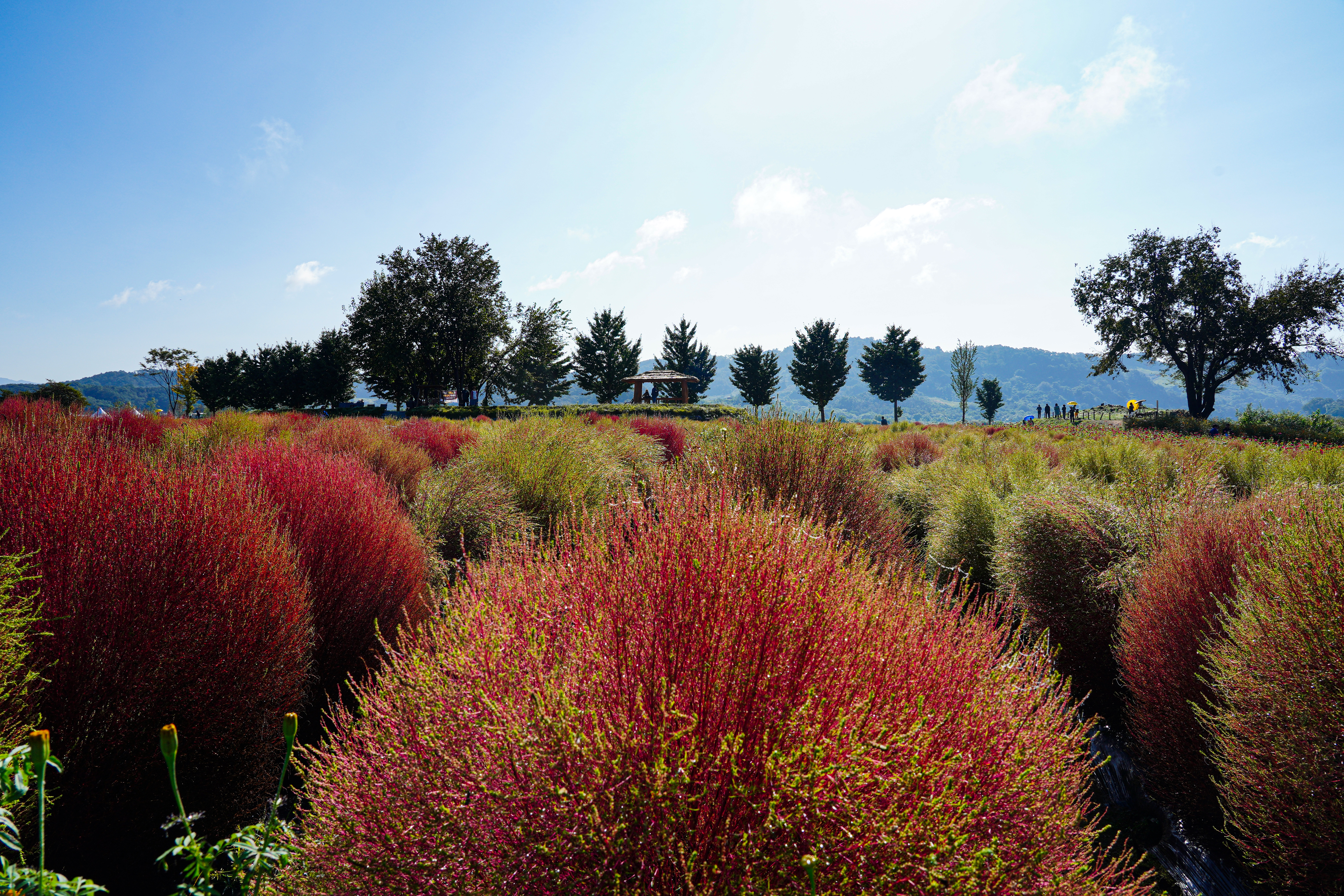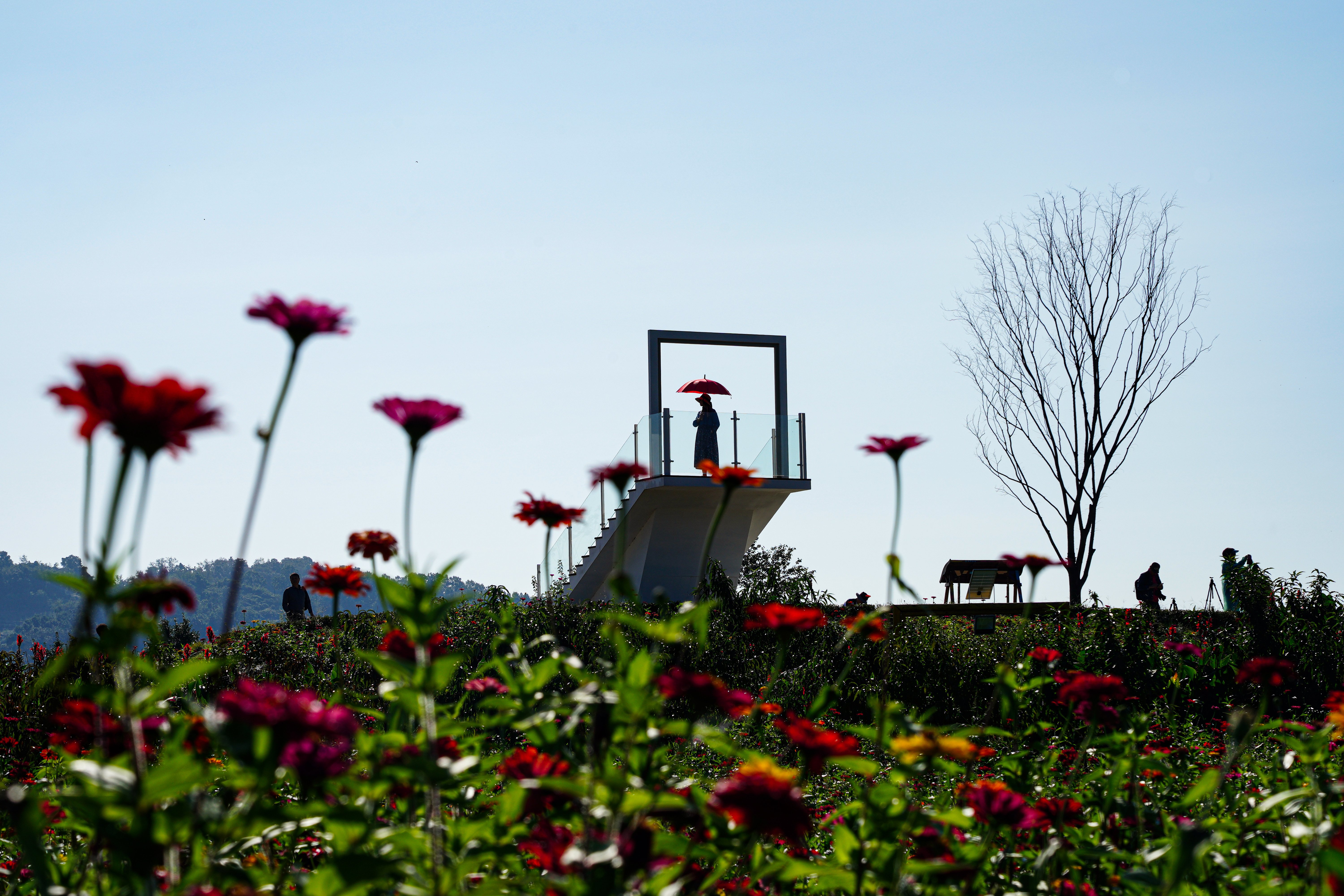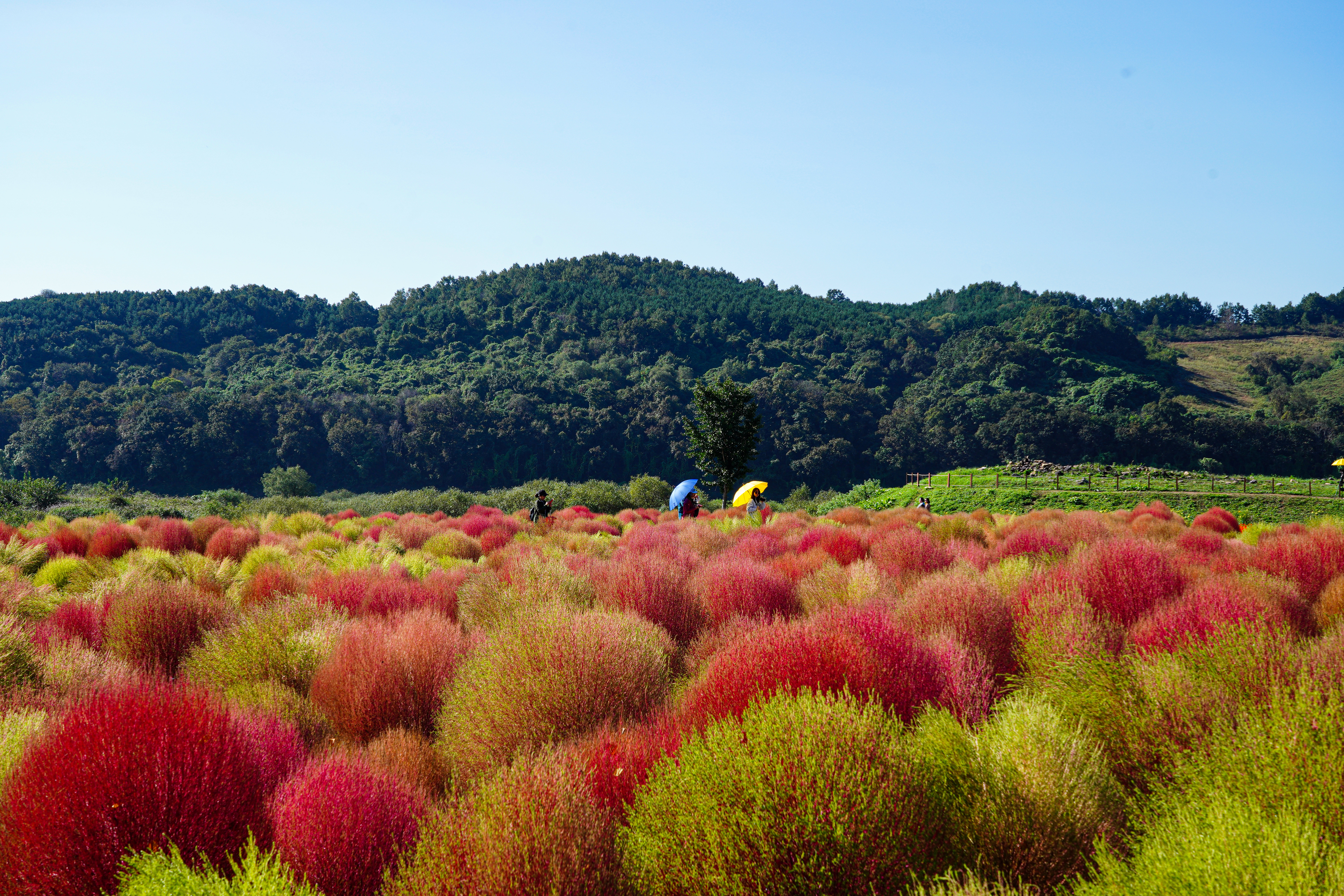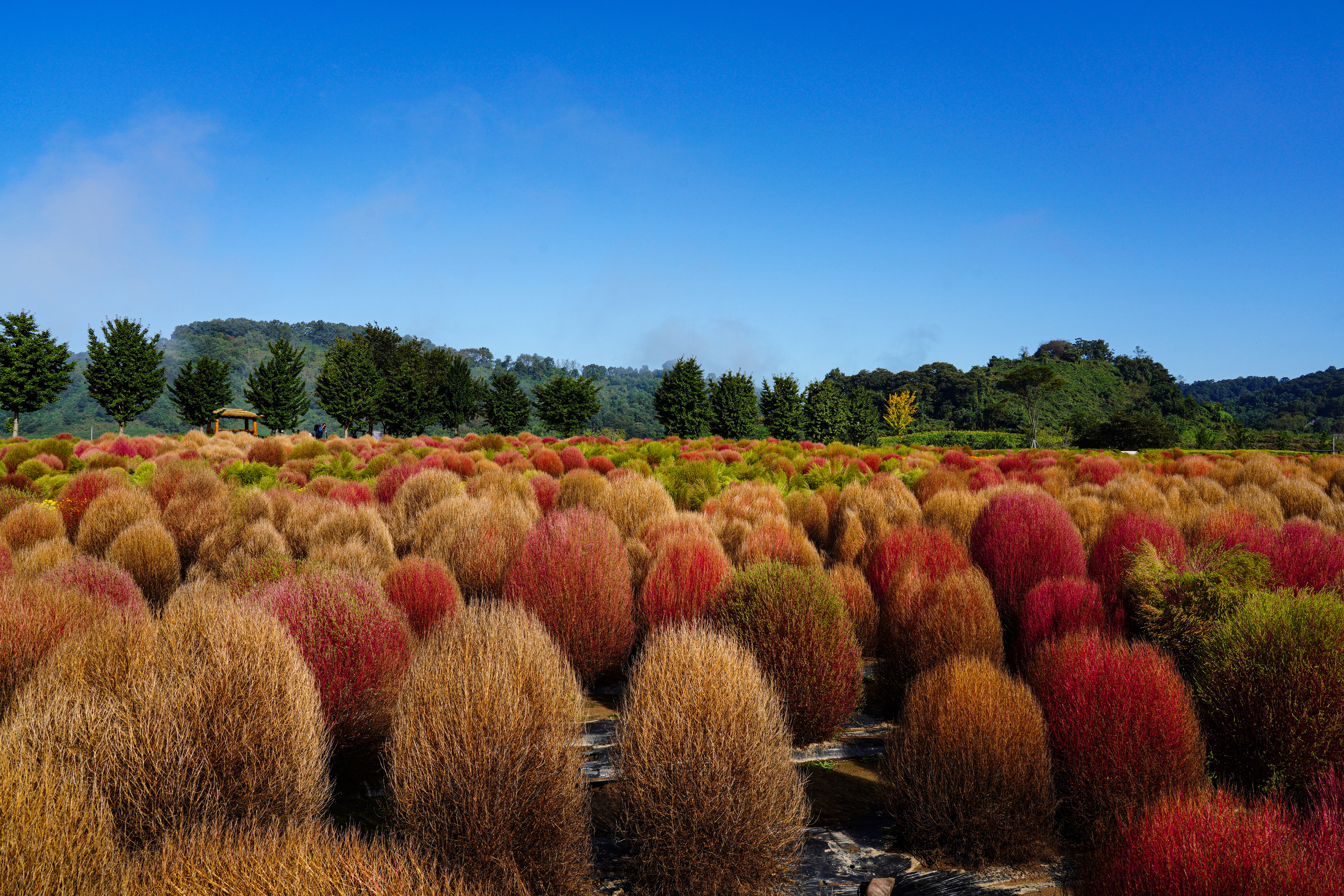 댑싸리 너머에 있는 백일홍.