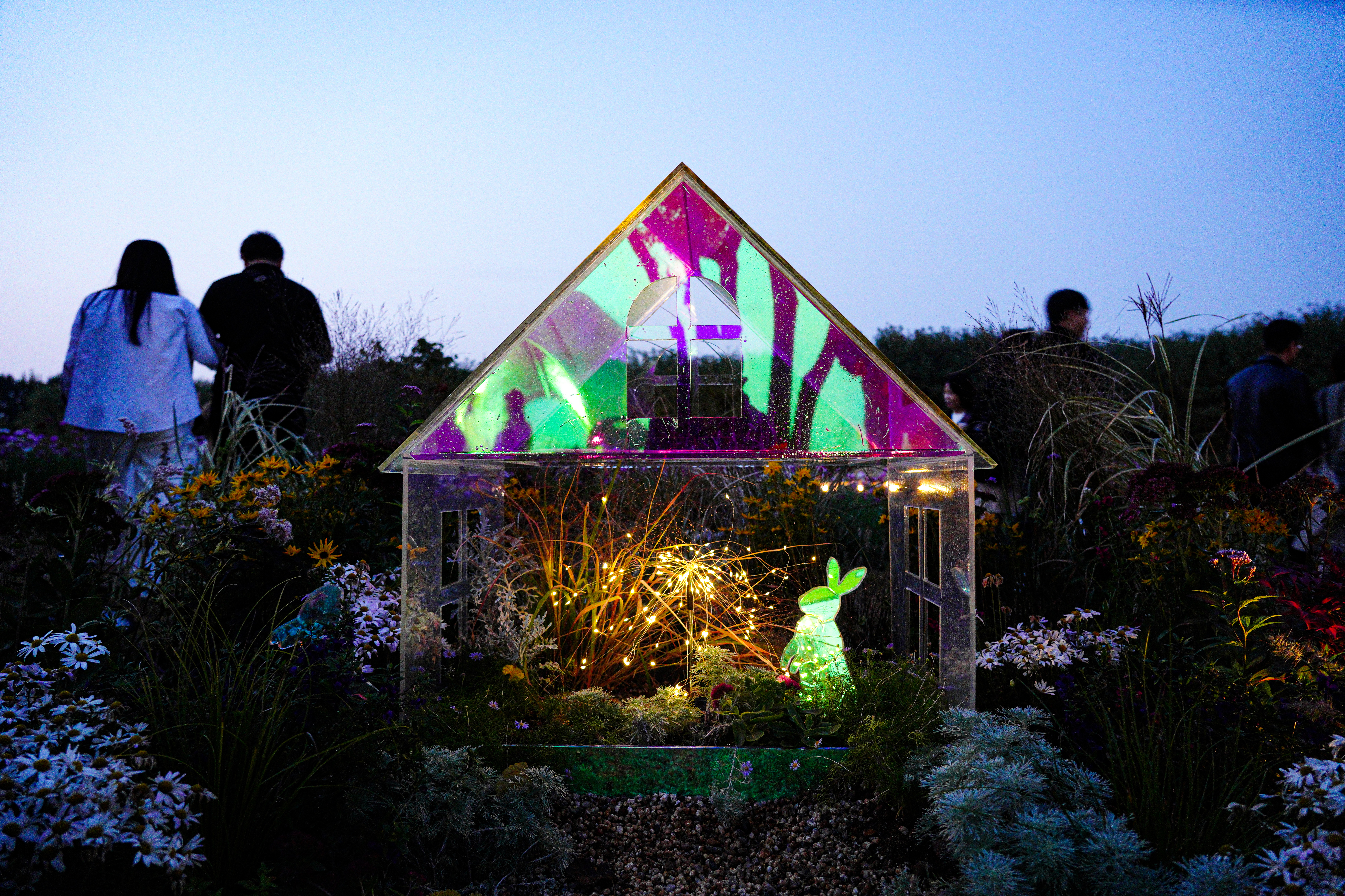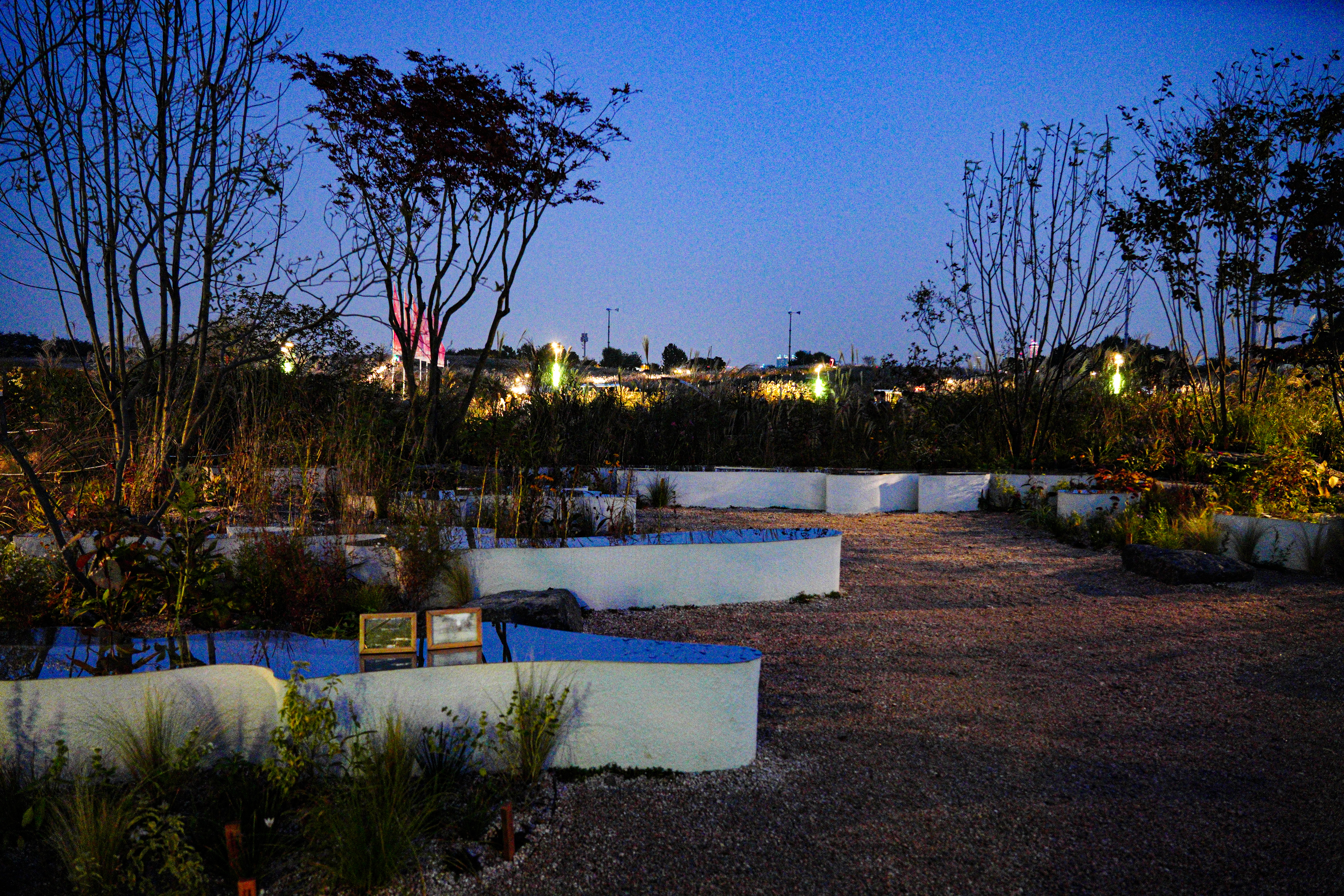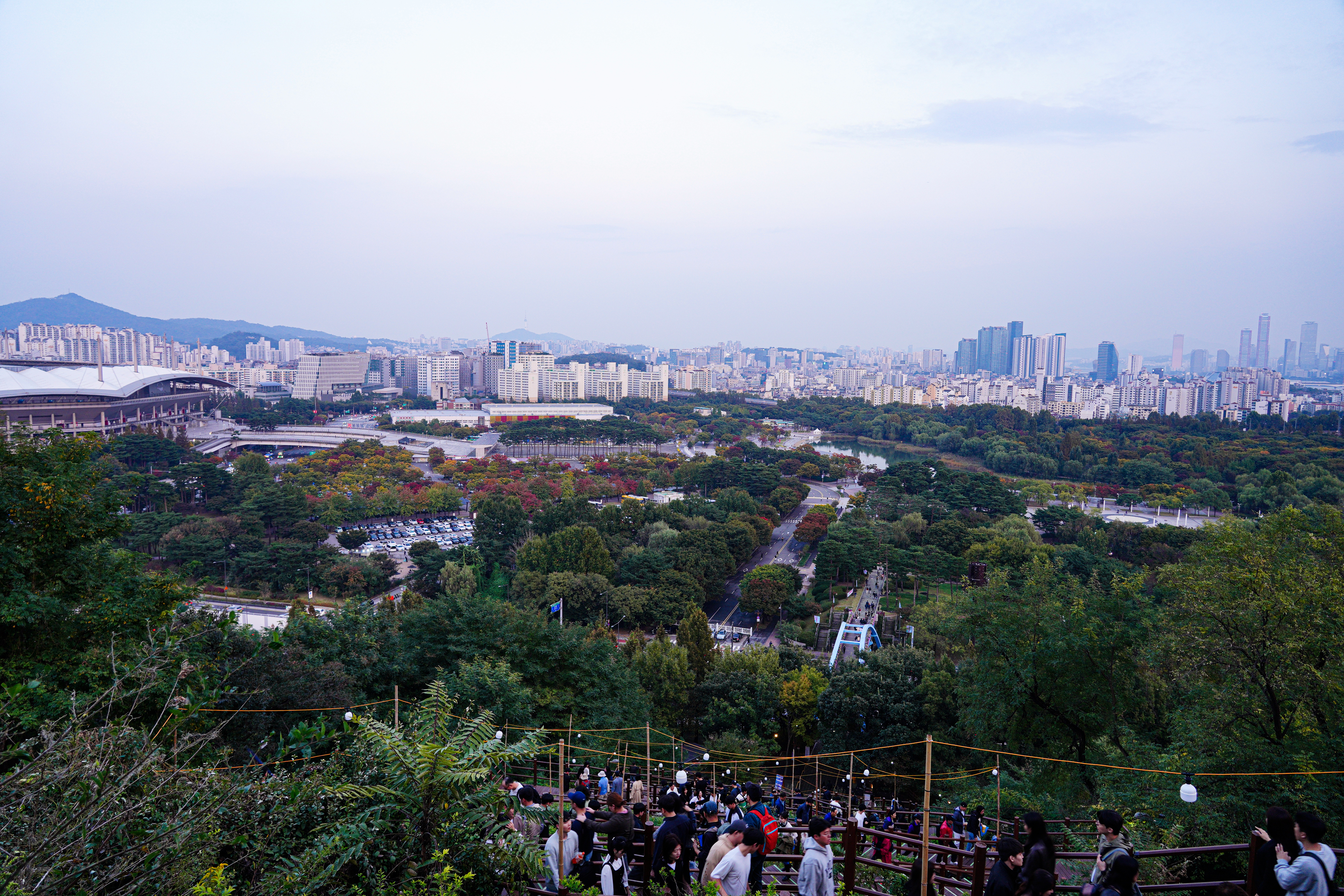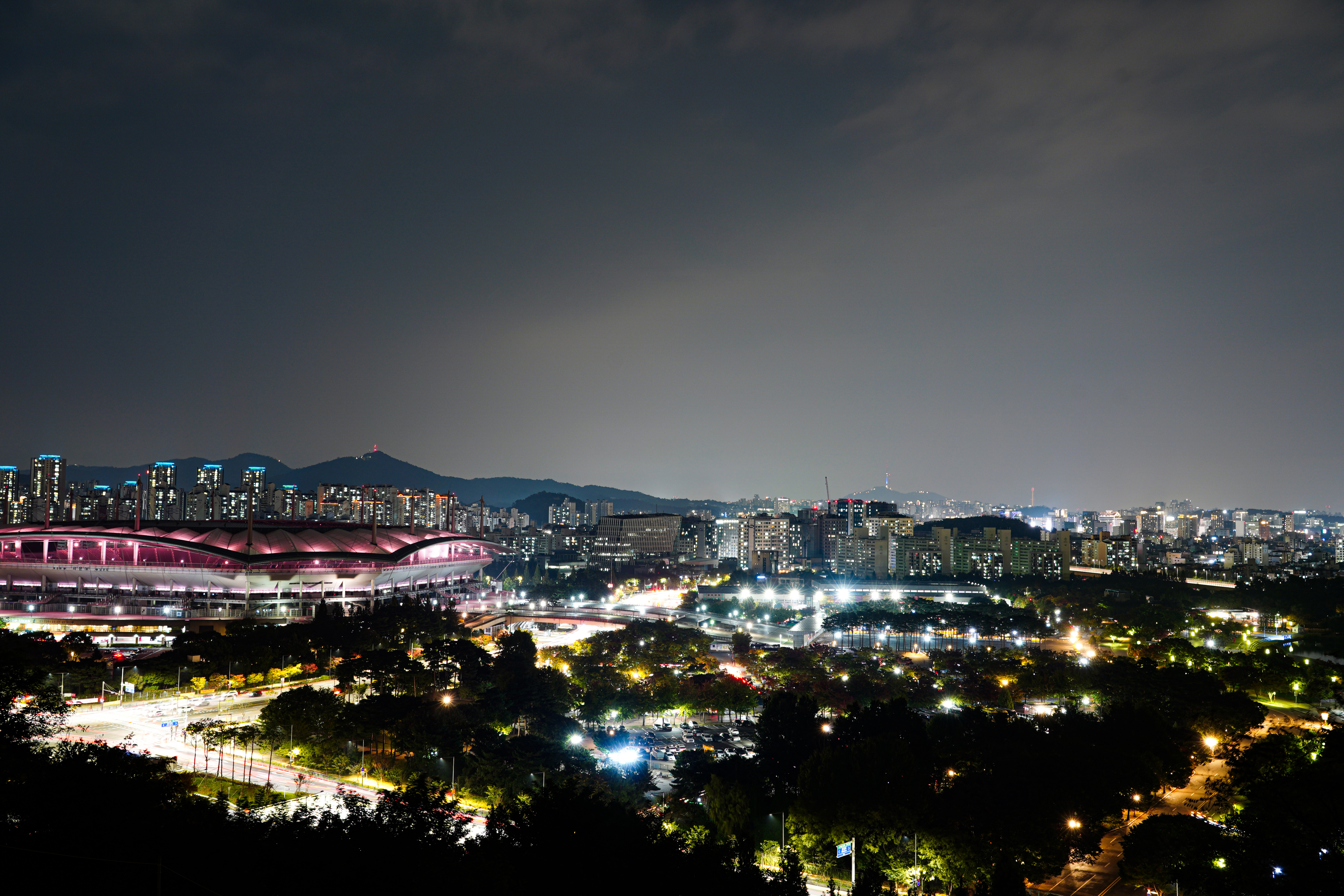 하늘계단에서 찍은 월드컵 경기장과 공원의 야경.