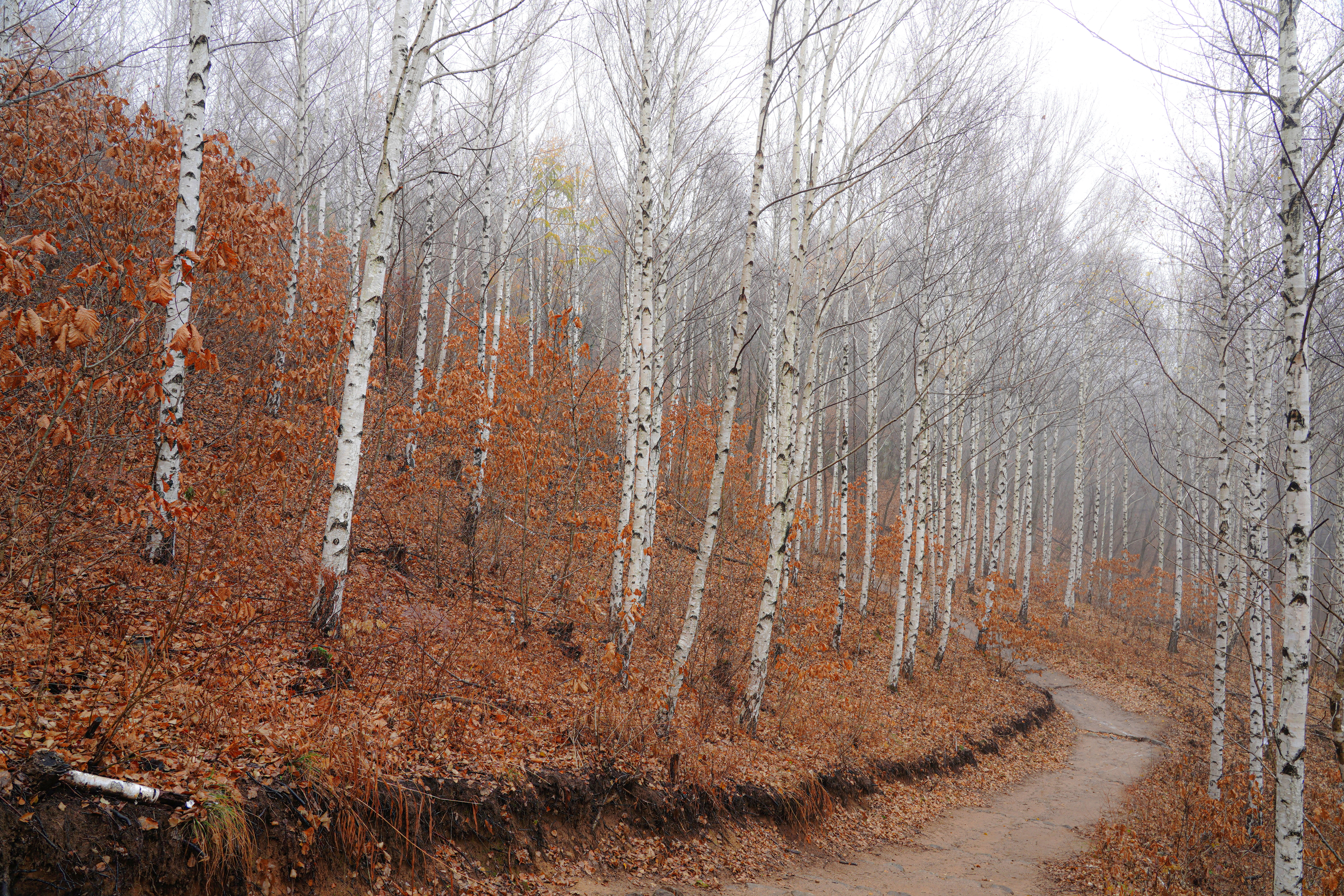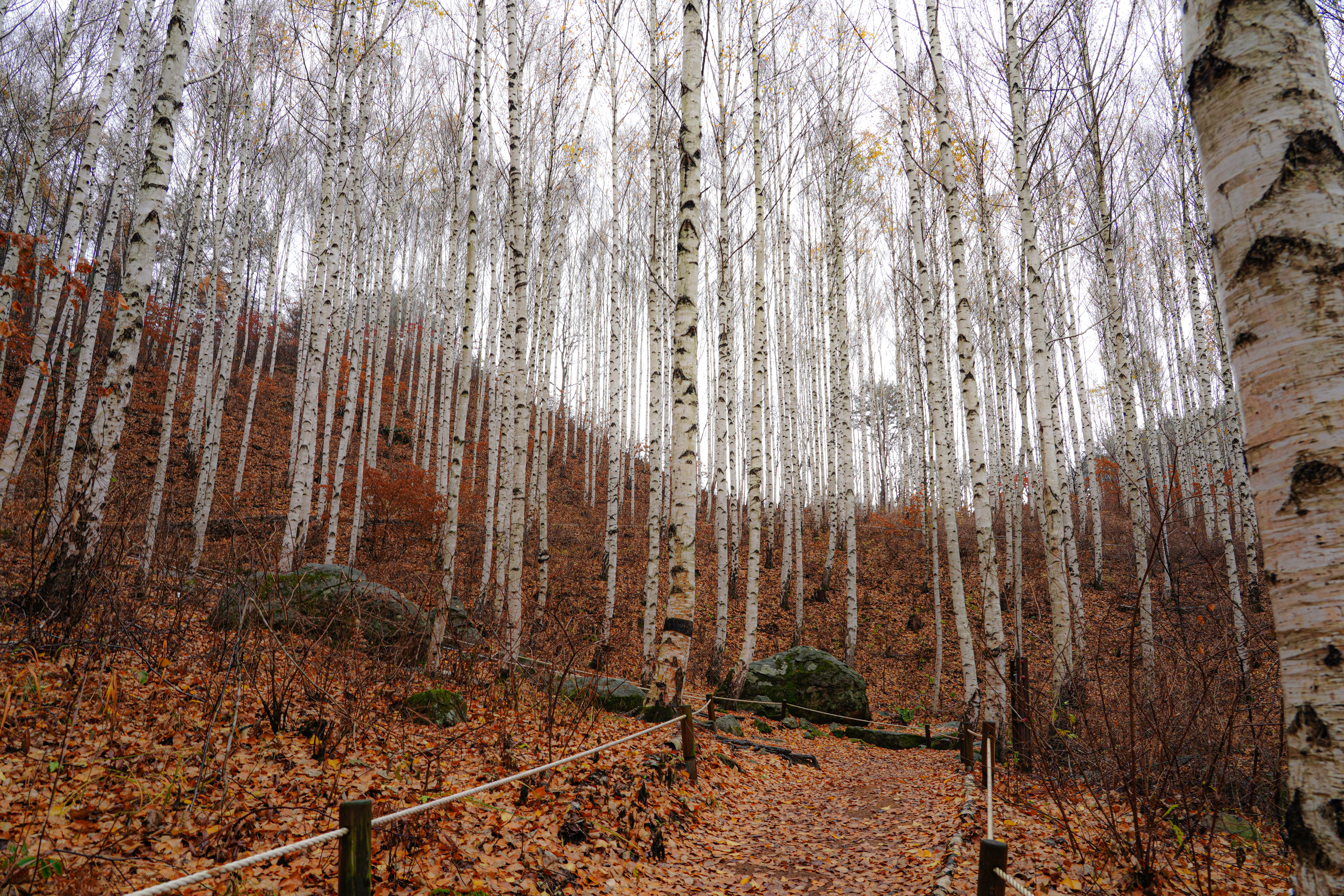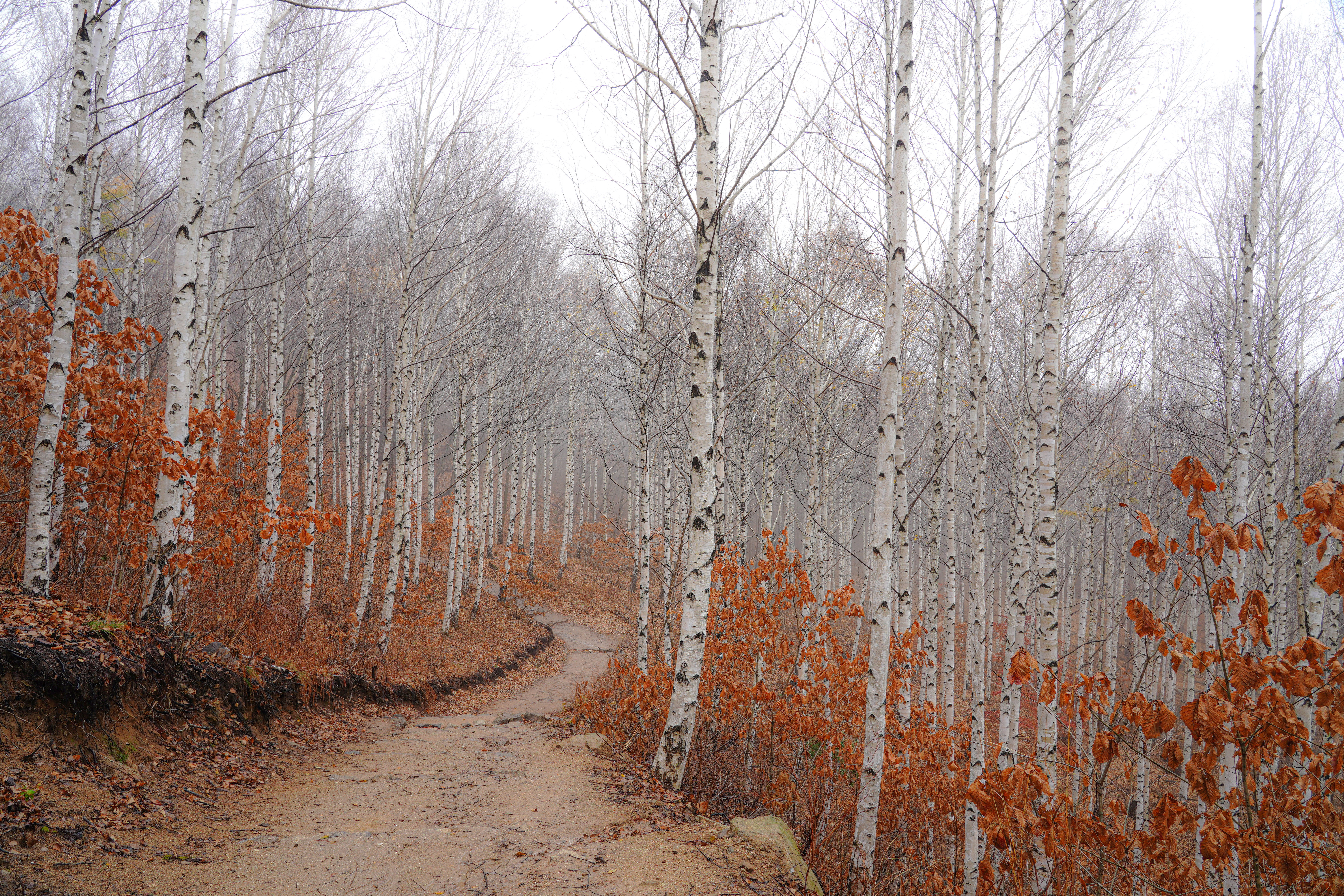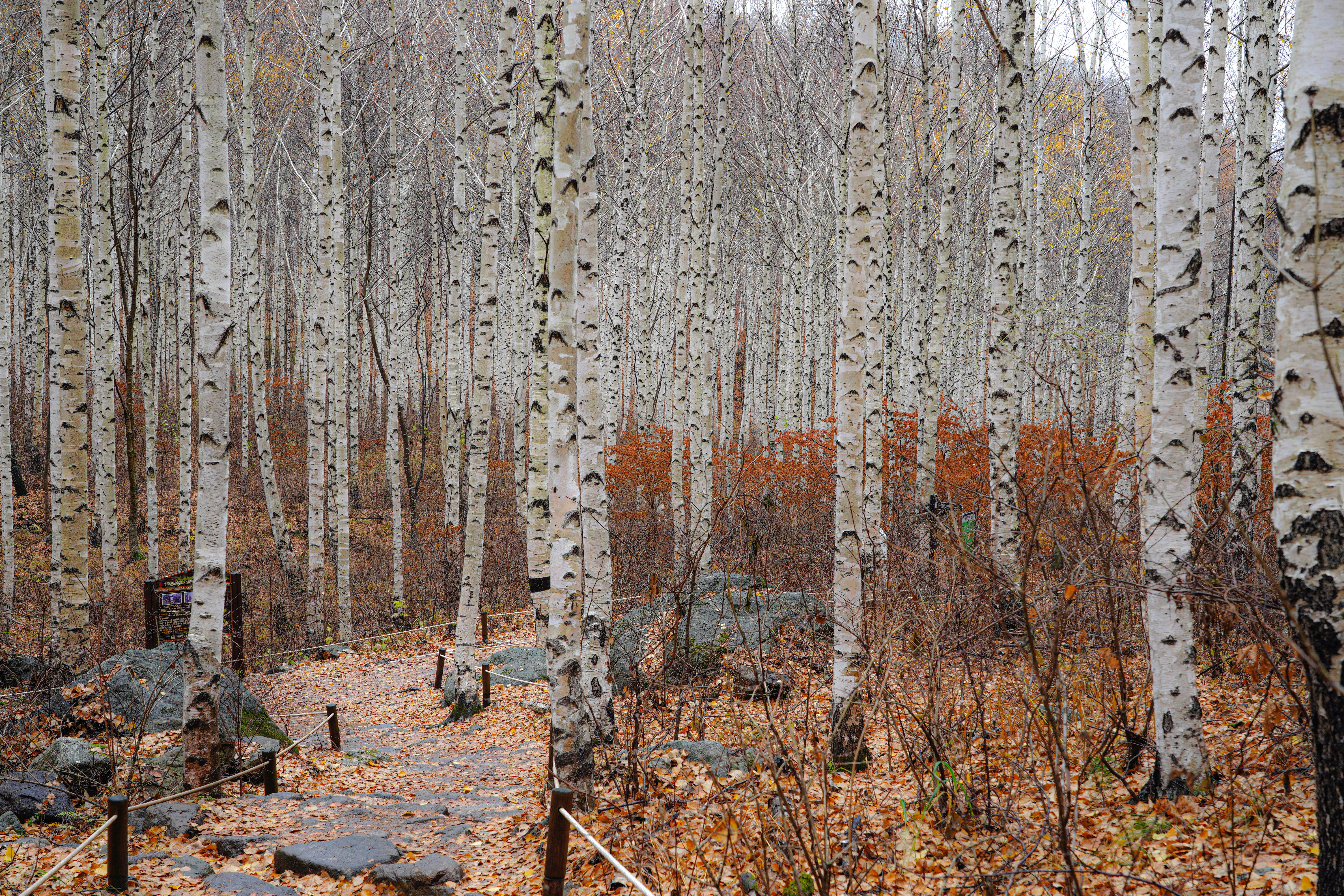 너무 운치 있는 늦가을의 자작나무숲길