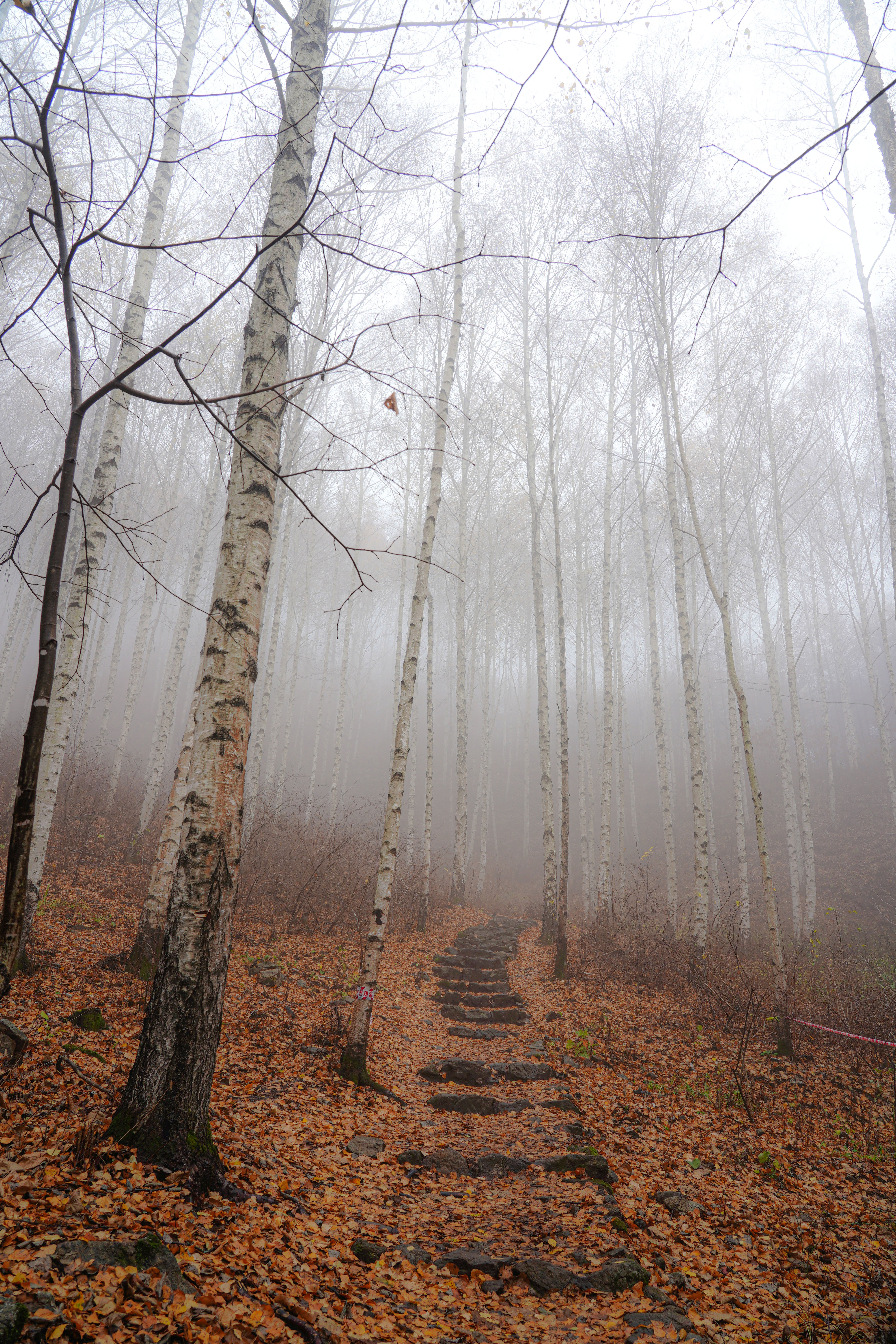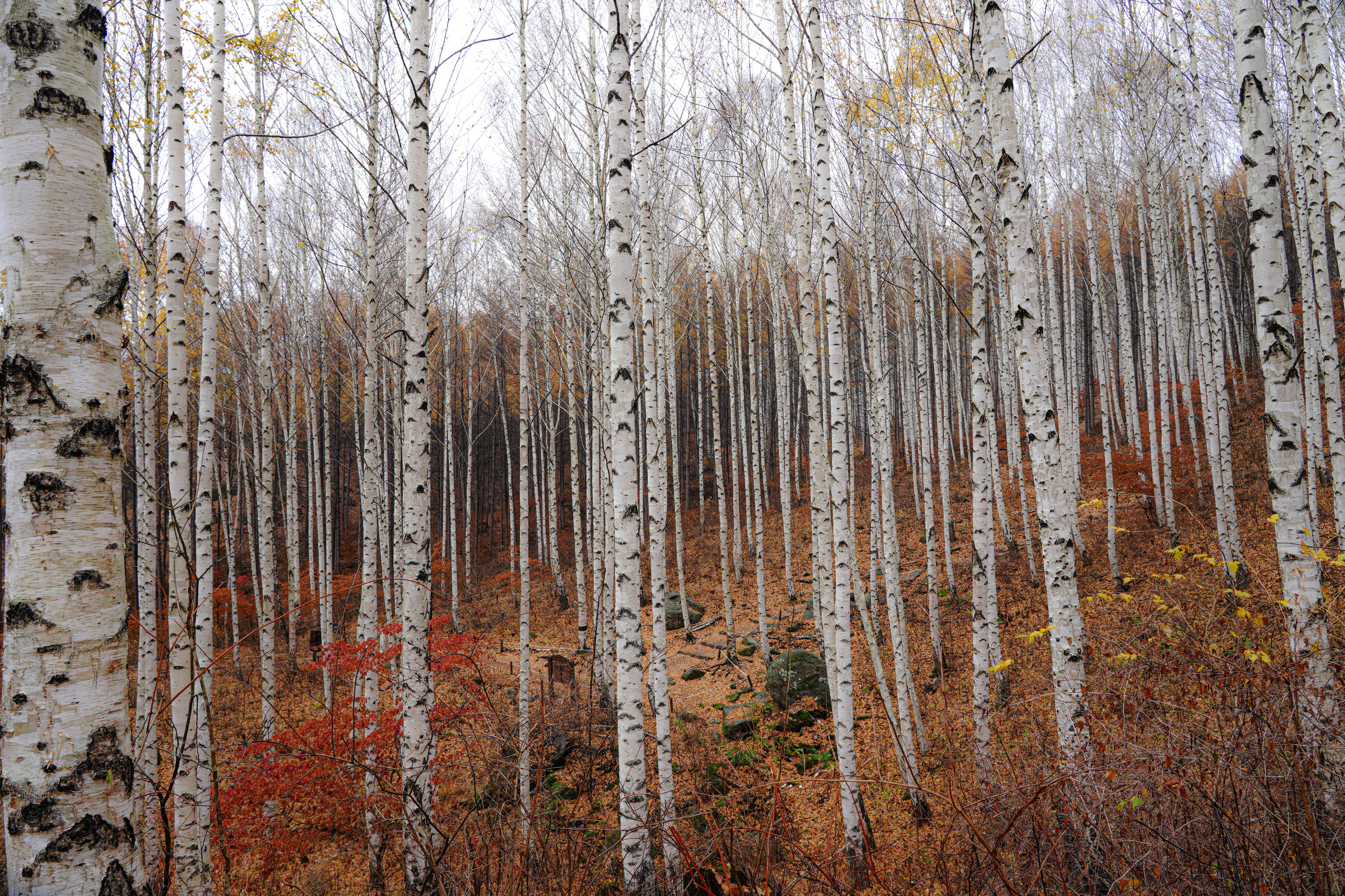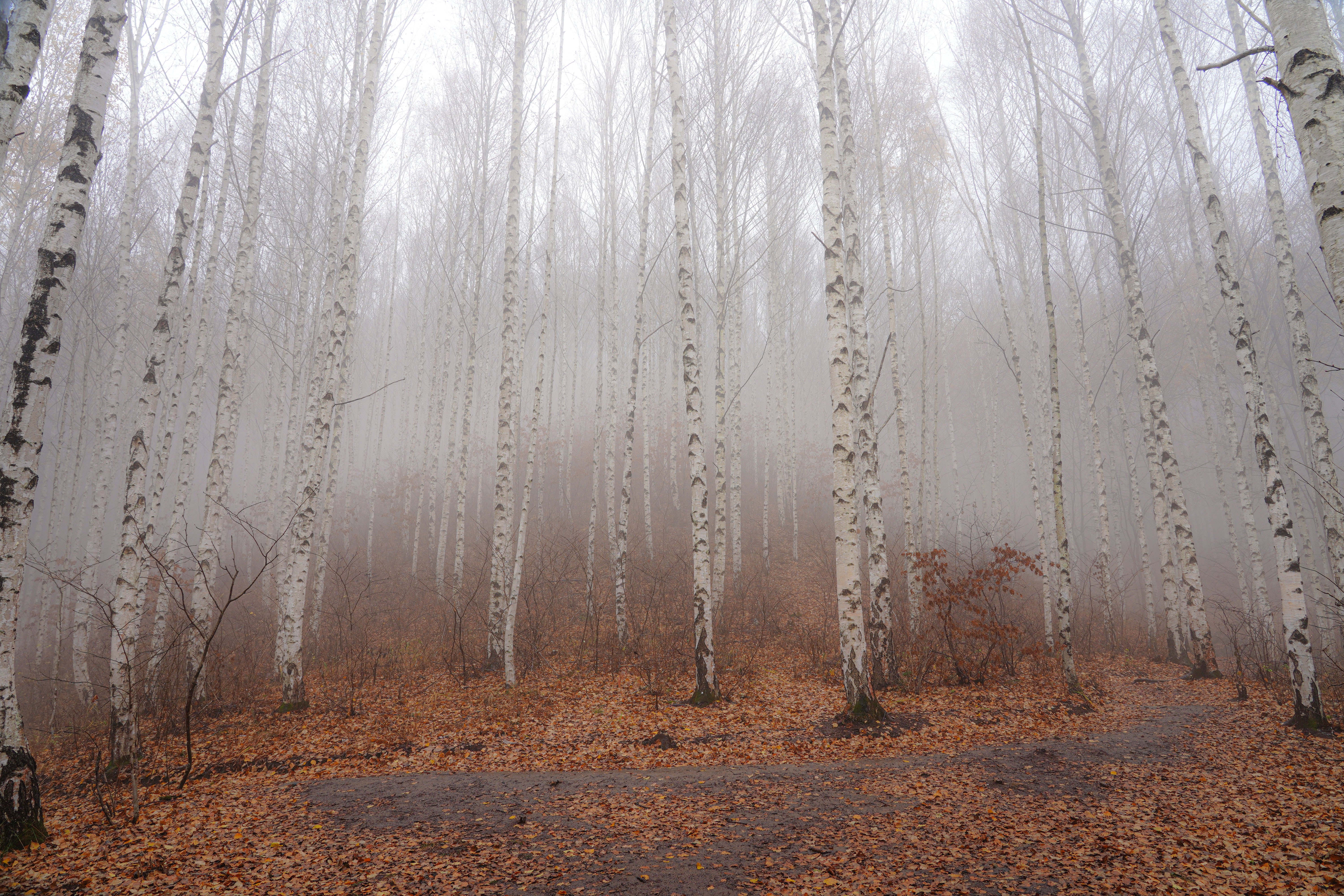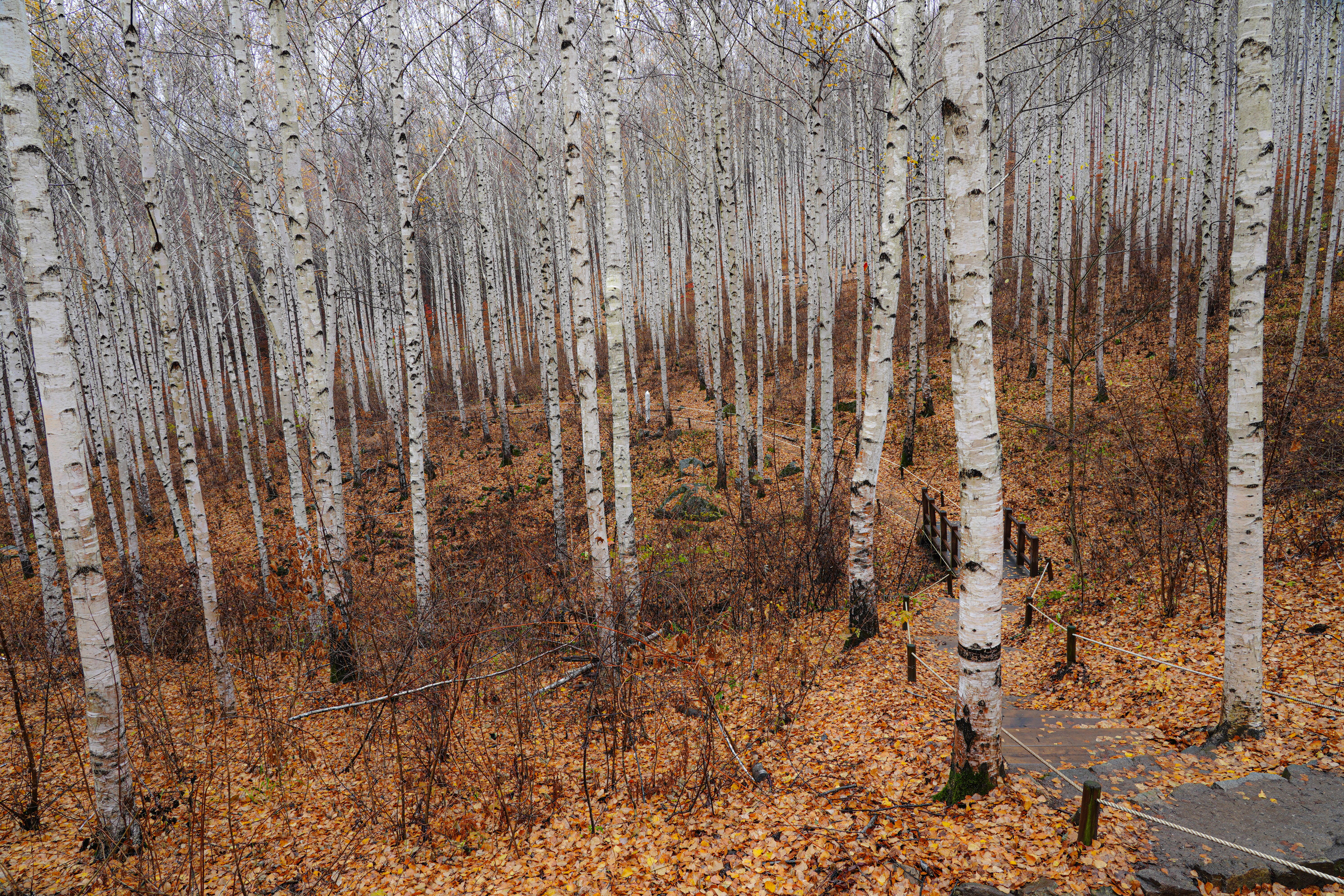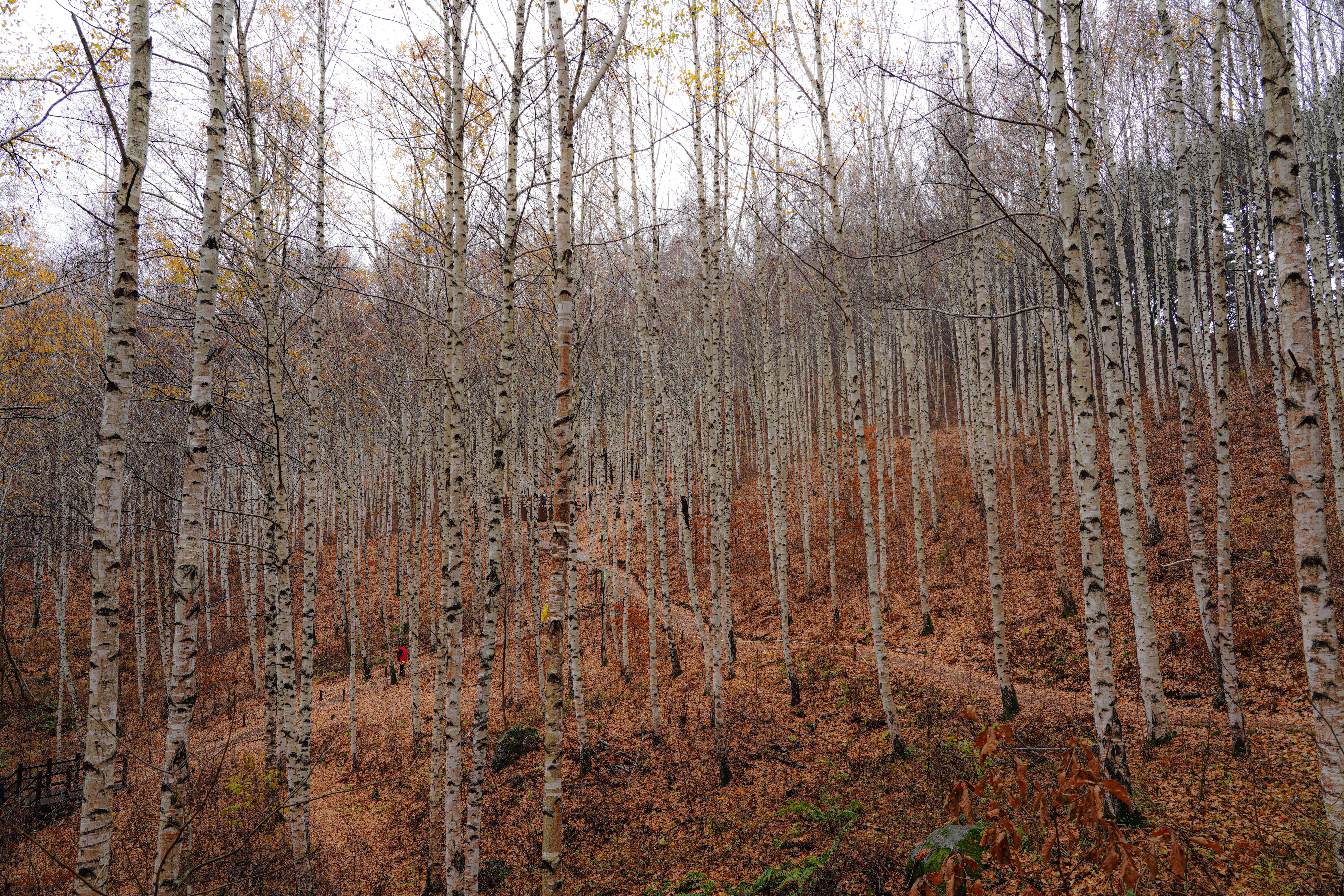 너무 운치 있는 늦가을의 자작나무숲길