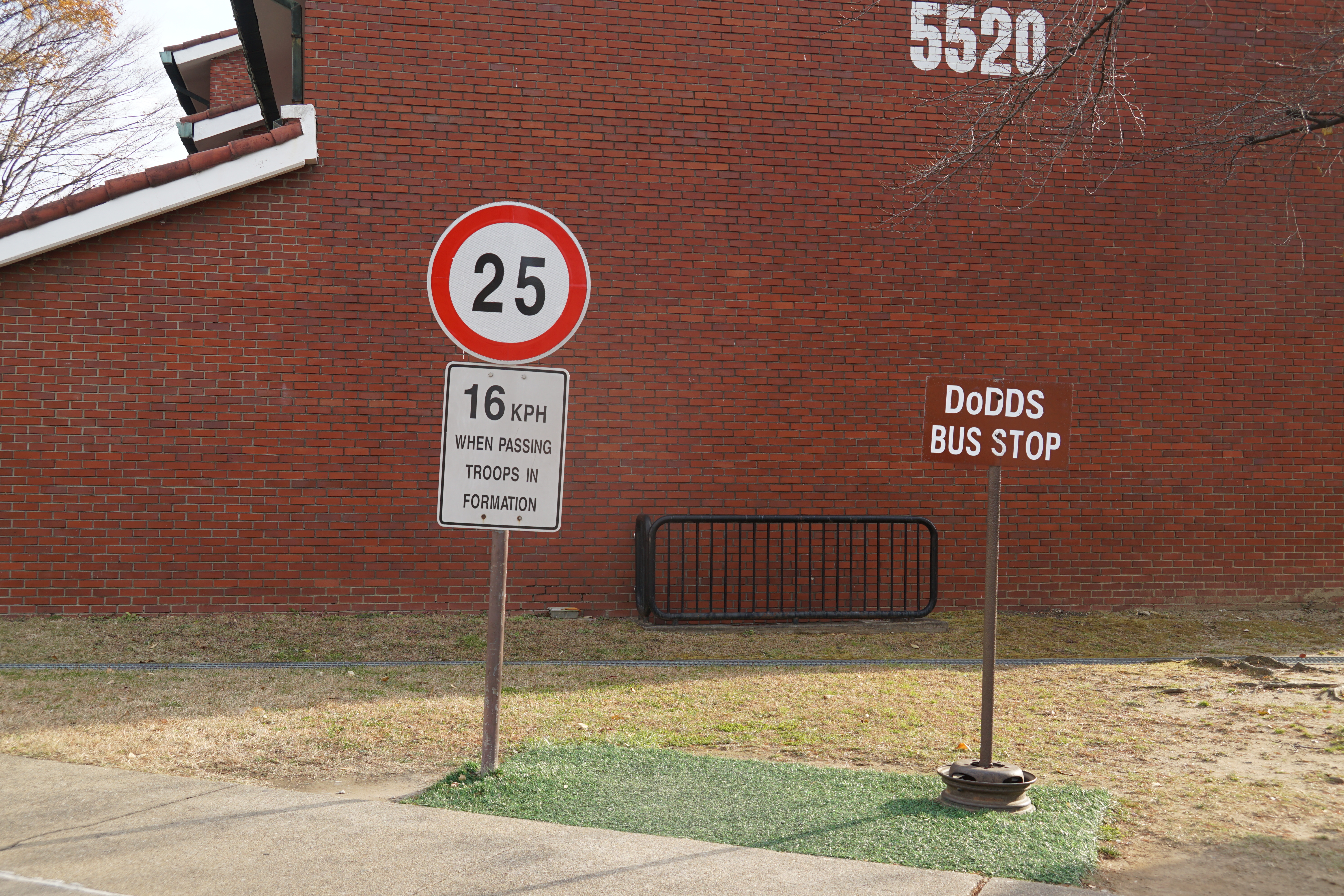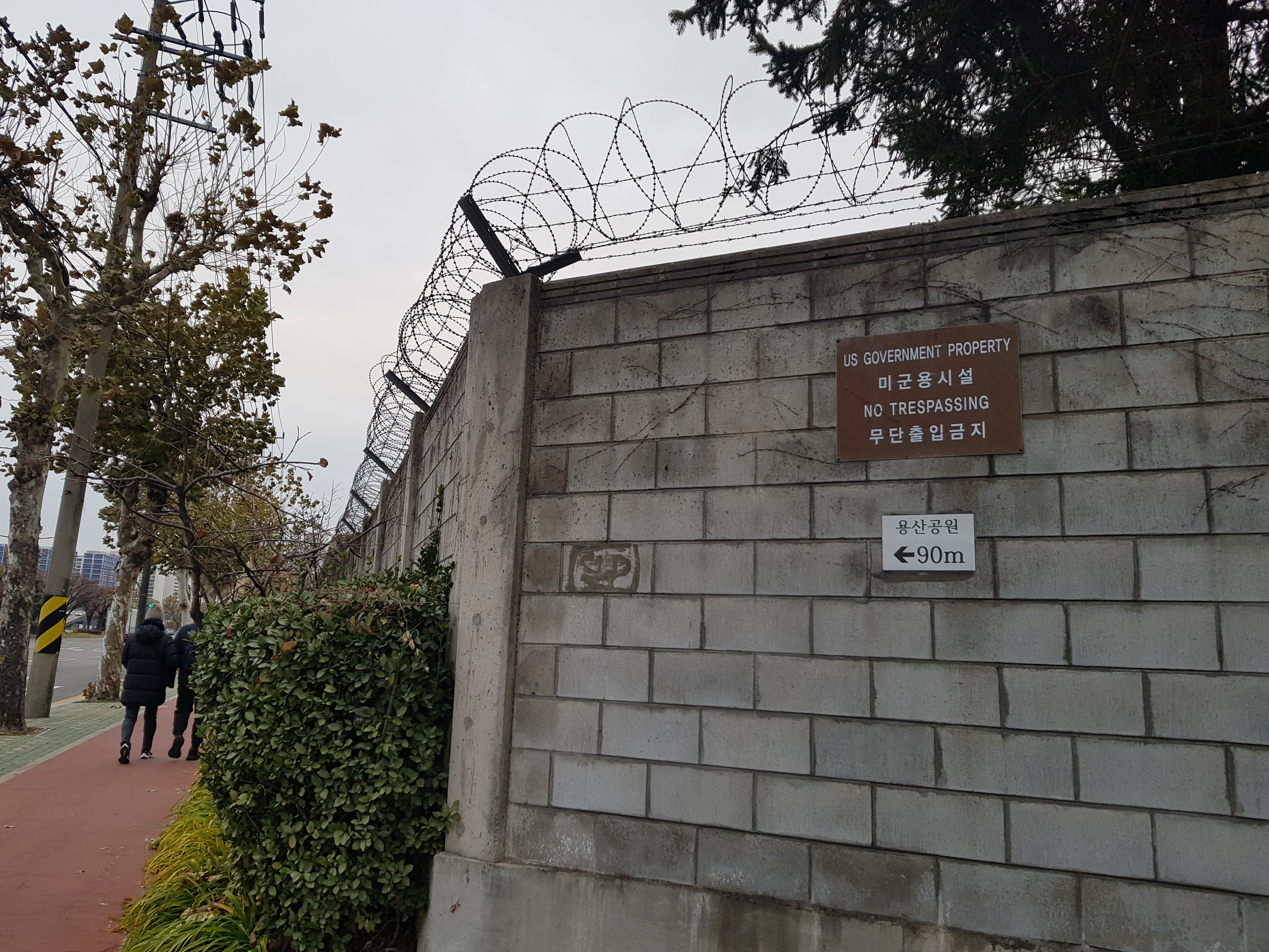 미군기지 담이 보이고 좀 더 가면 정문이 나온다.