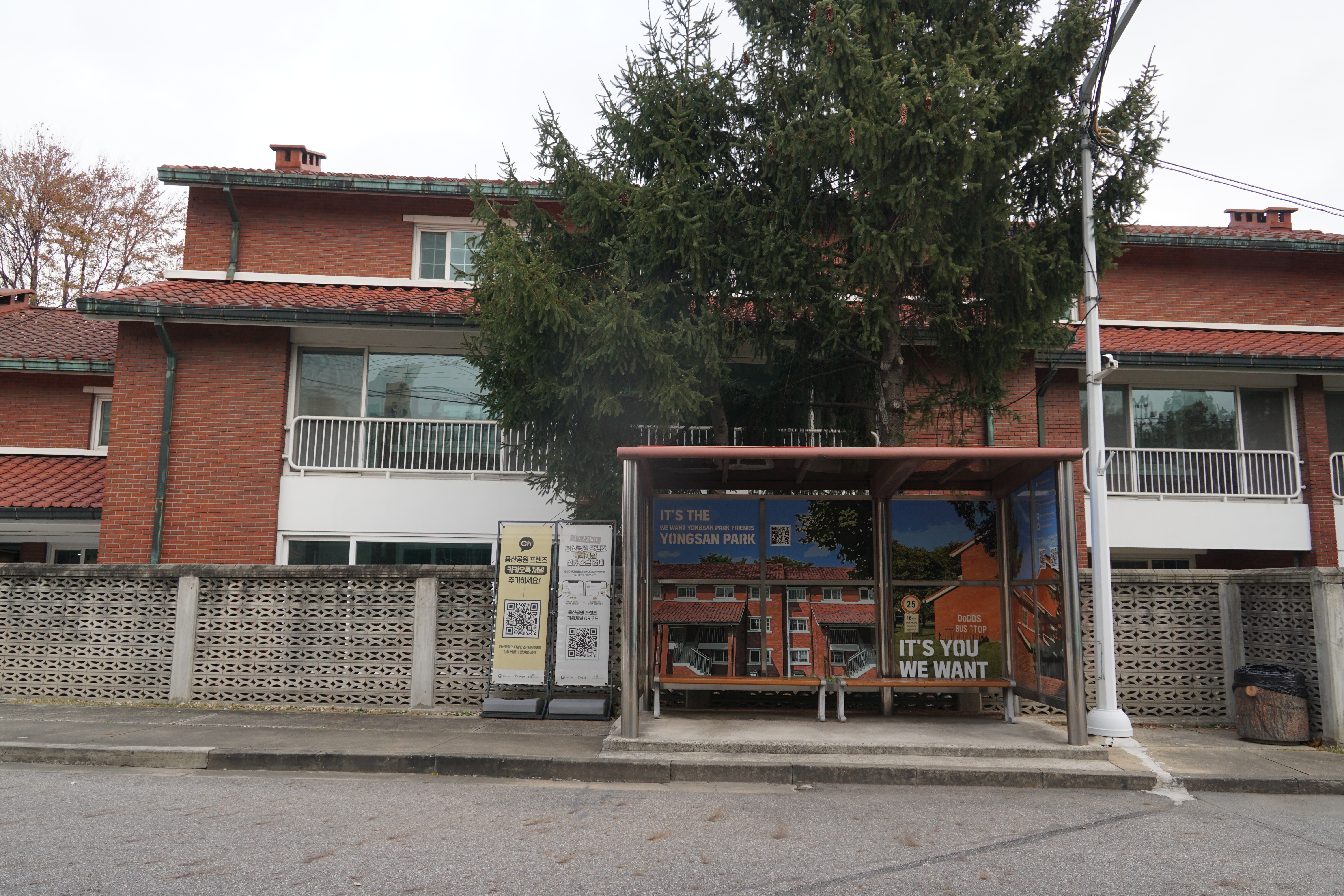 들어가면 바로 보이는 정류장(?)과 용산공원 안내소.