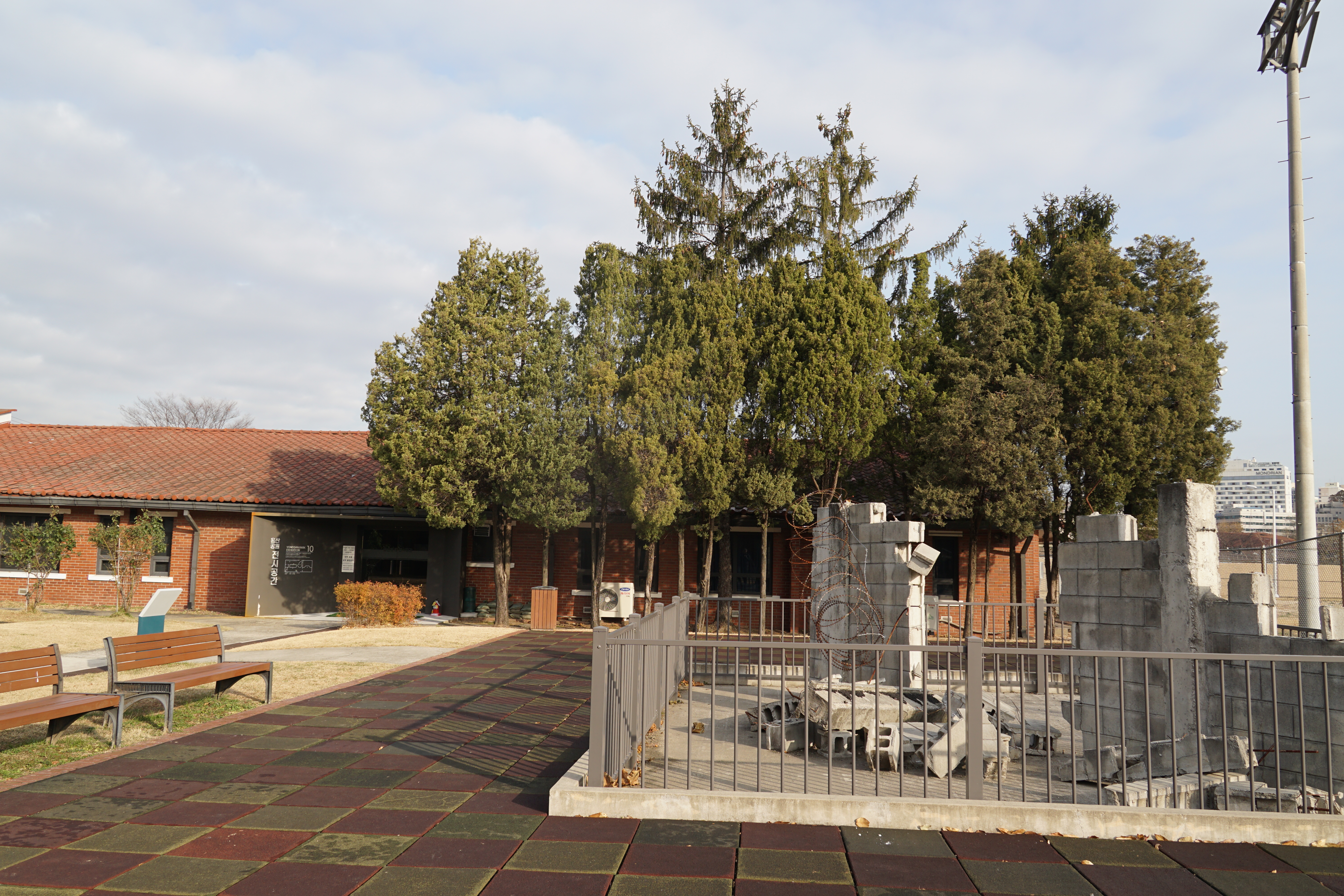 9시부터인데 10분 정도 일찍 도착해서 기다리는 동안 정문 좌우벽에 있는 사진들.