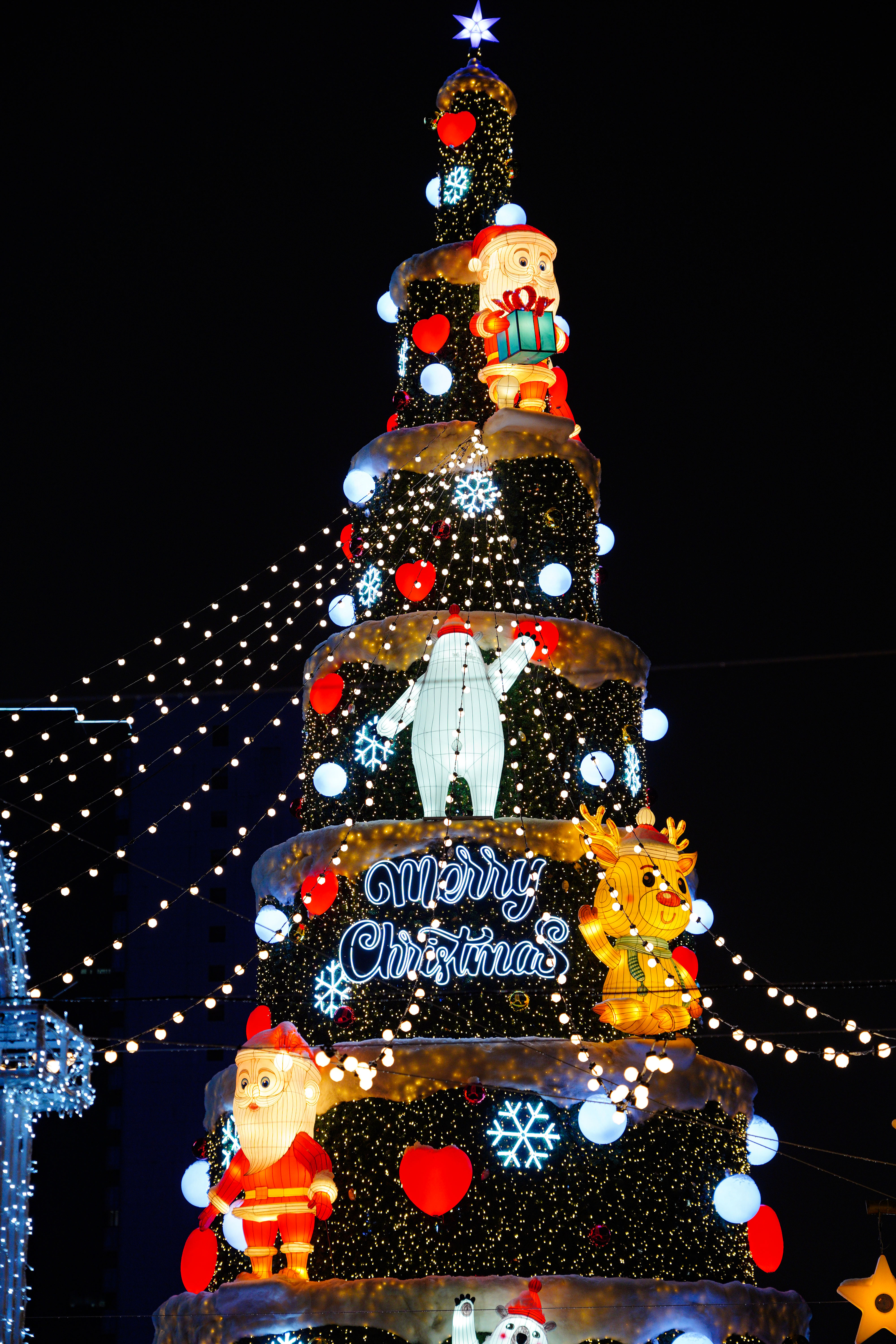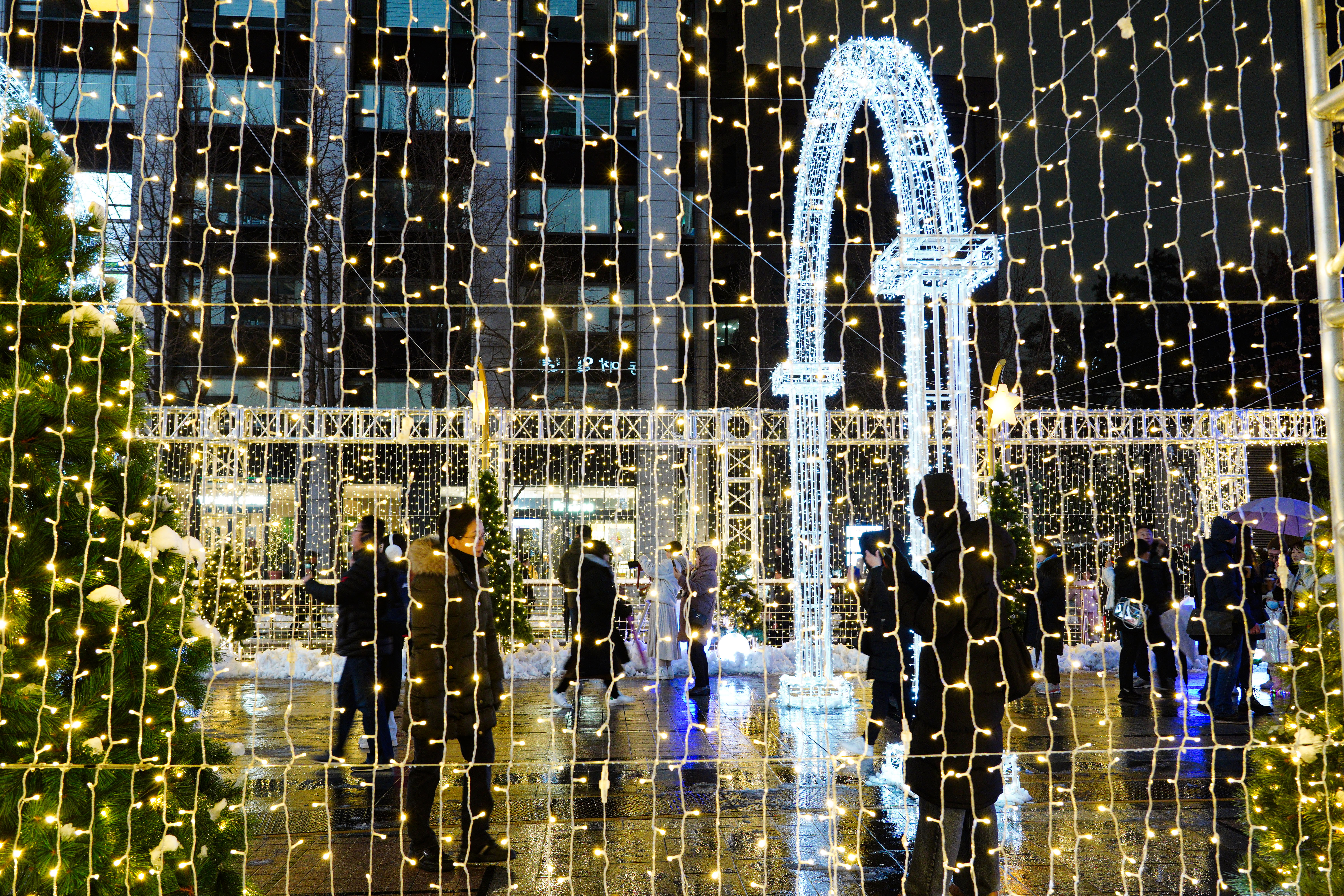 조명이 들어온 모습. 트리는 아직도 조명이 안 들어왔다.