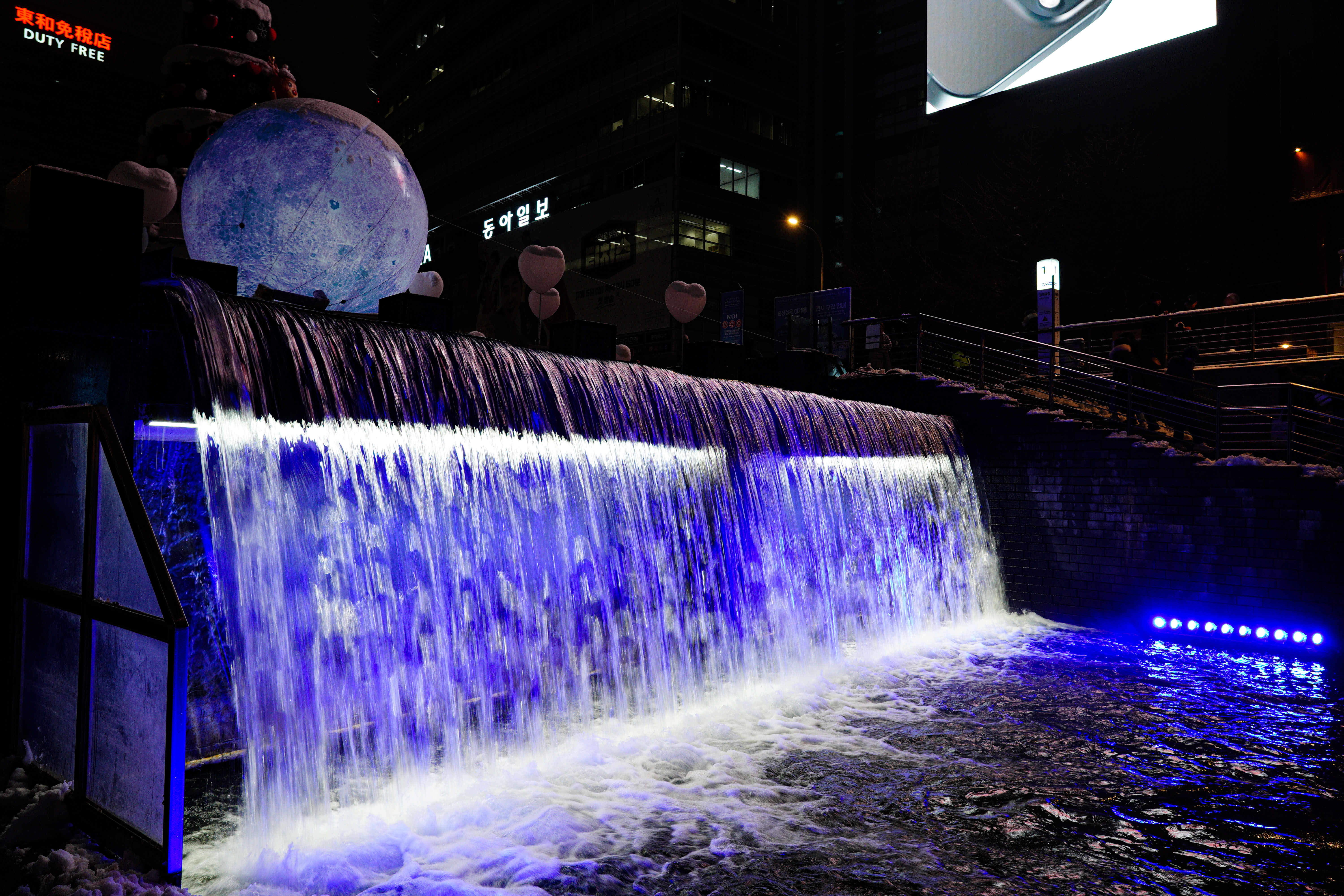 다시 폭포수 쪽으로 오니 폭포 조명이 들어왔있다.