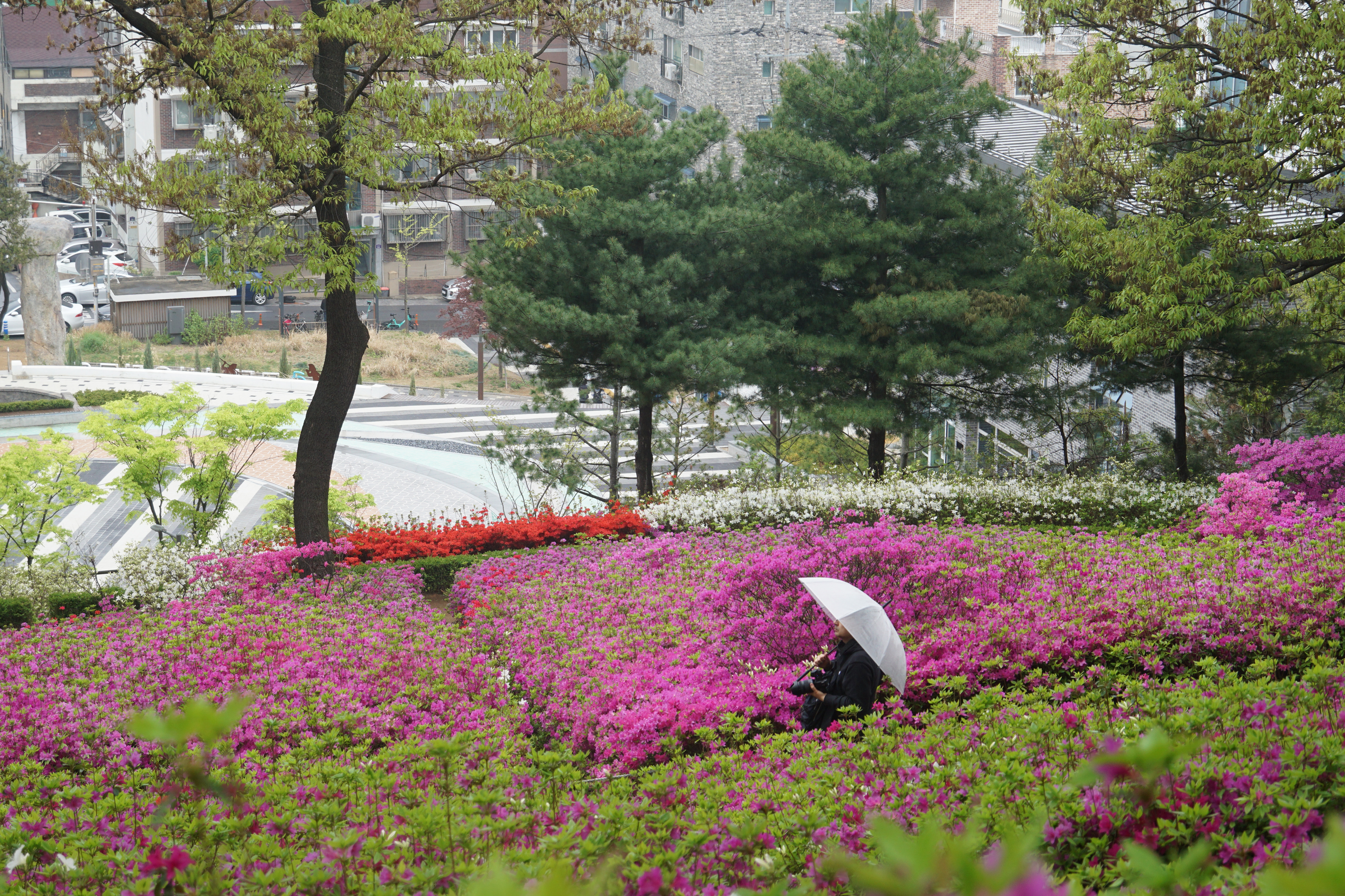 조금씩 내리던 비가 철쭉 찍으러 공원에 도착하니 조금 더 많이 내리기 시작한다.