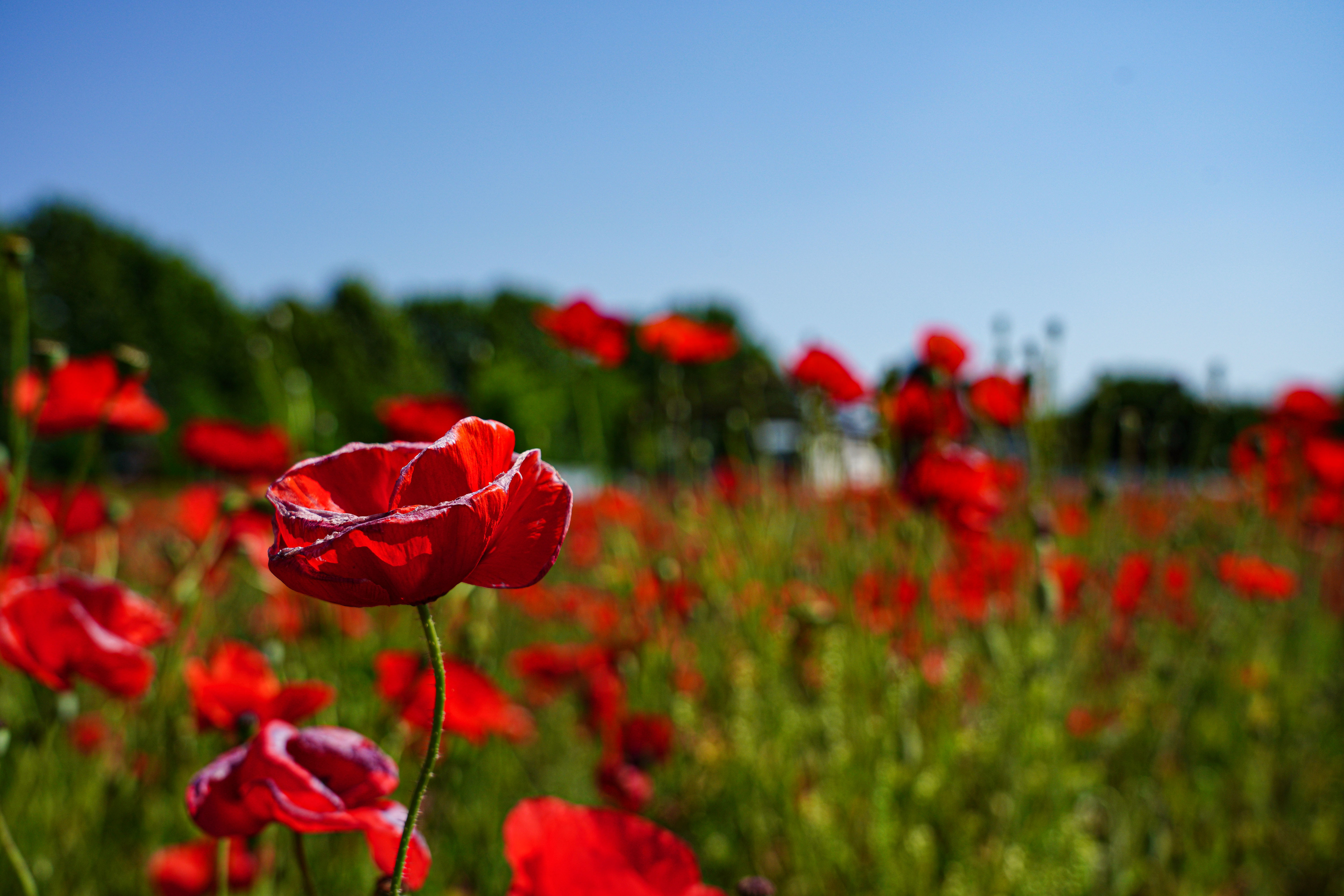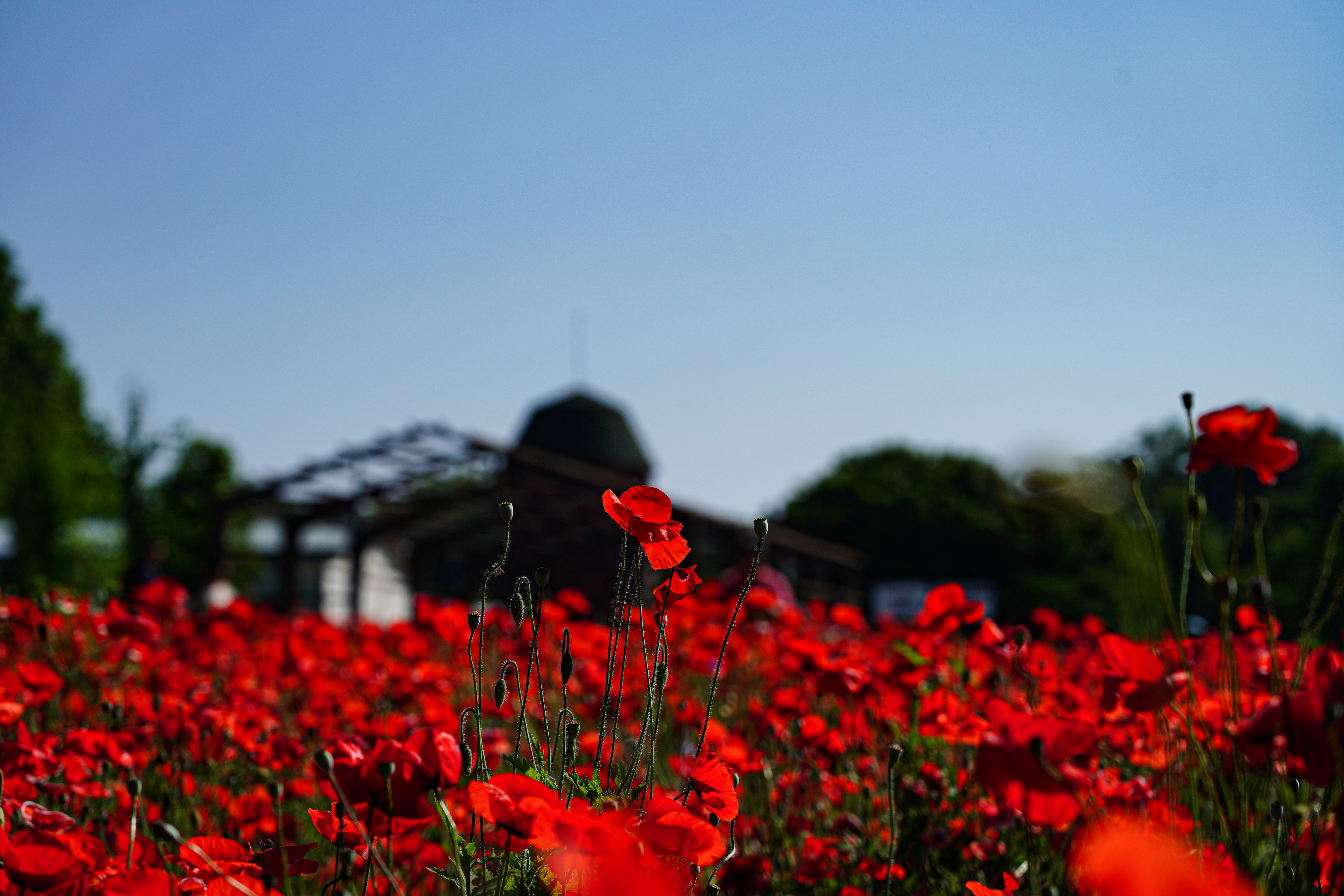 주차후 내리니 저 멀리 빨간 양귀비꽃이 보인다.