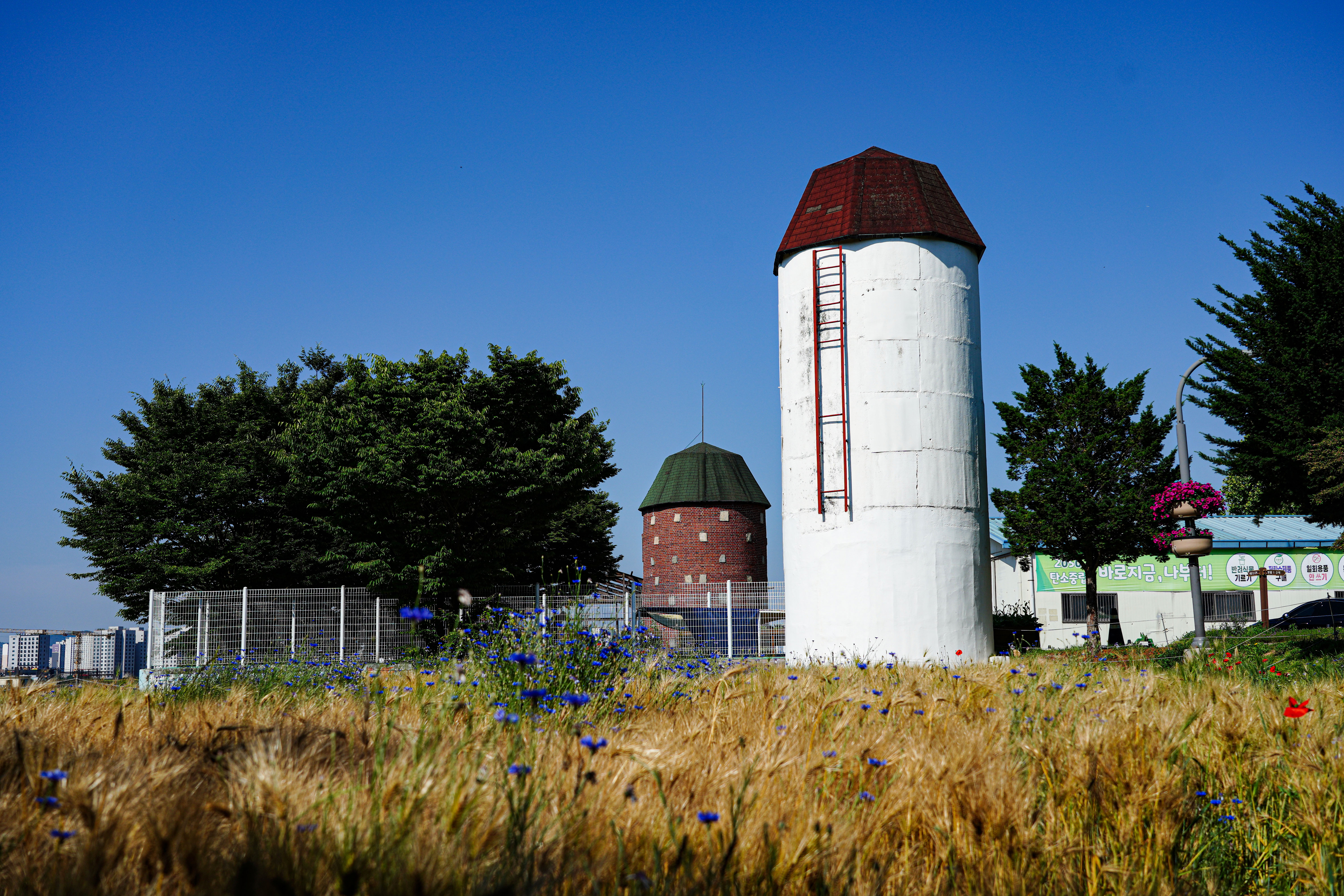 다 익어버린 청보리와 군데군데 양귀비꽃과 수레국화들.