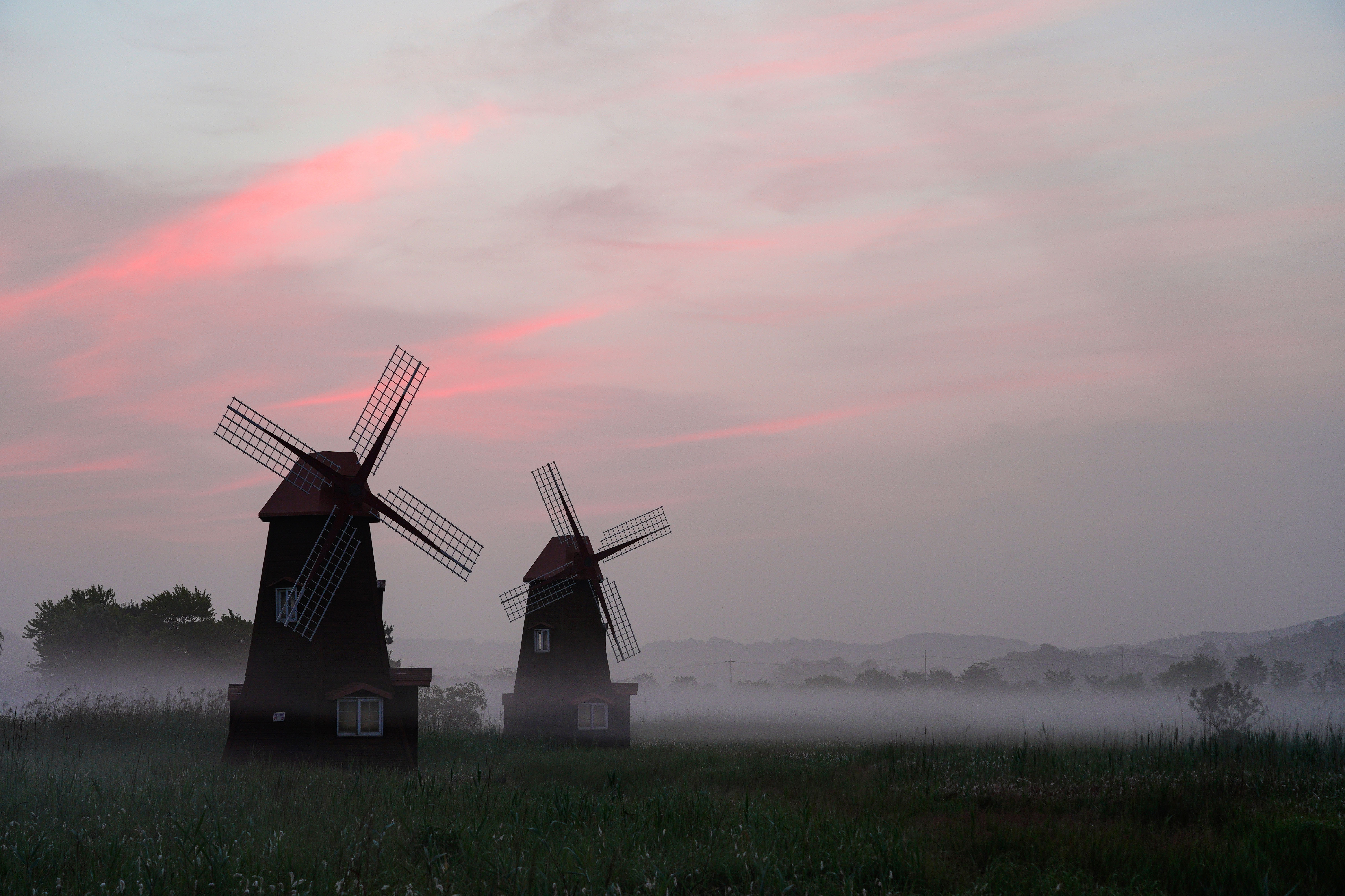하늘의 붉은색이 약해지기는 했지만 삘기꽃도 피어있고 물안개와 함께 멋진 풍경을 보여주고 있다.