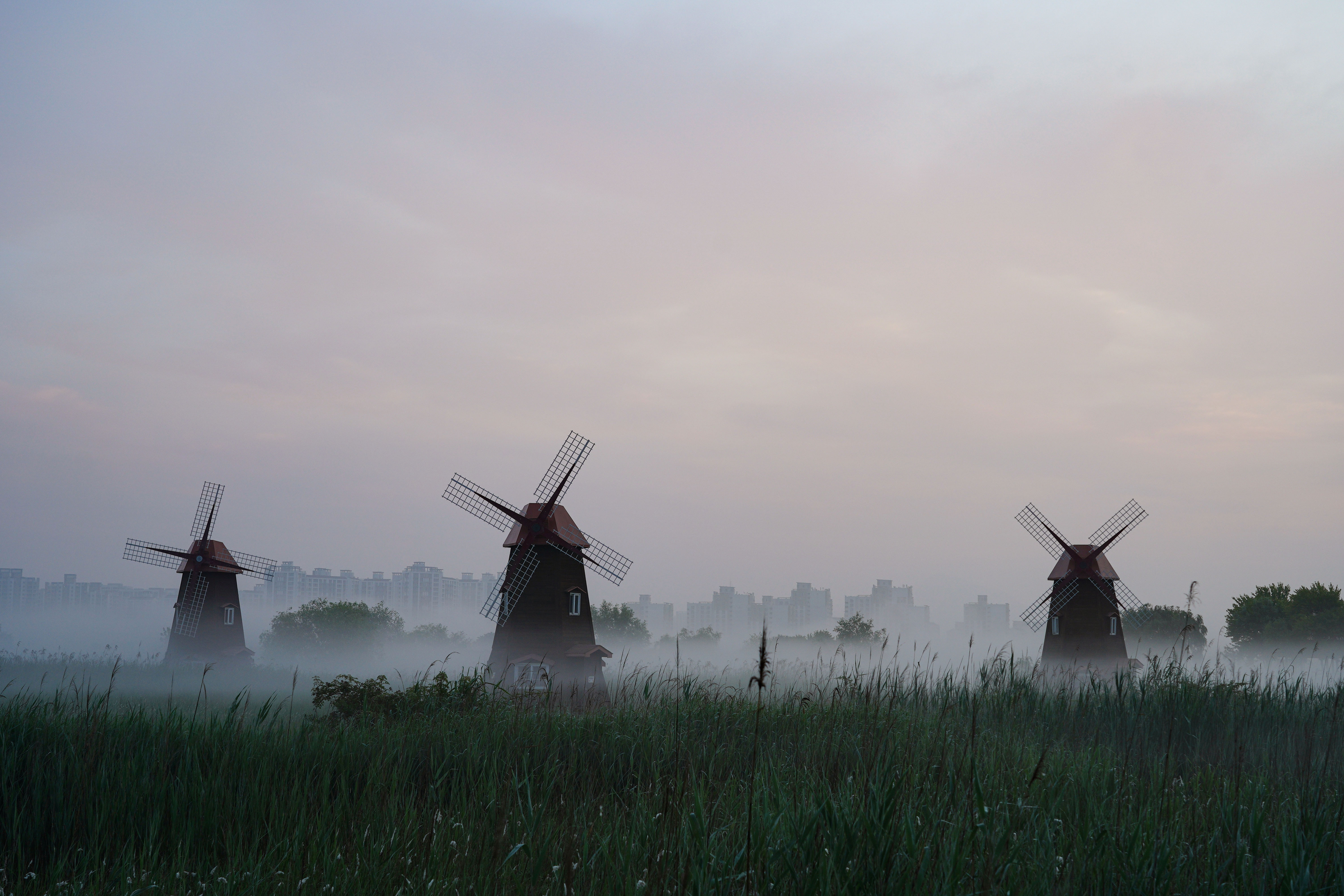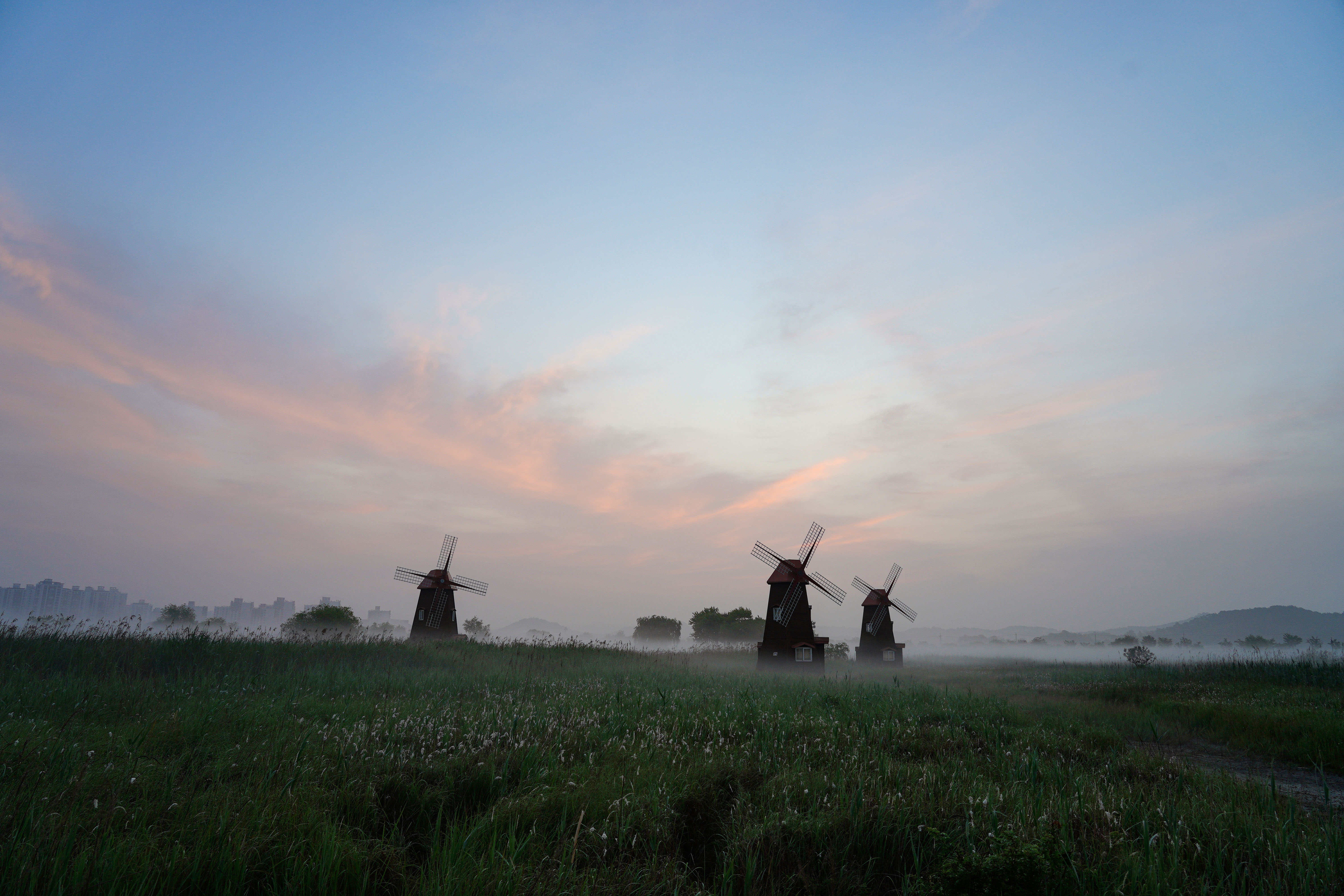 어제 잠깐 비가 와서 혹시 하는 마음으로 소래습지생태공원 일출과 삘기꽃을 찍으러 갔다.