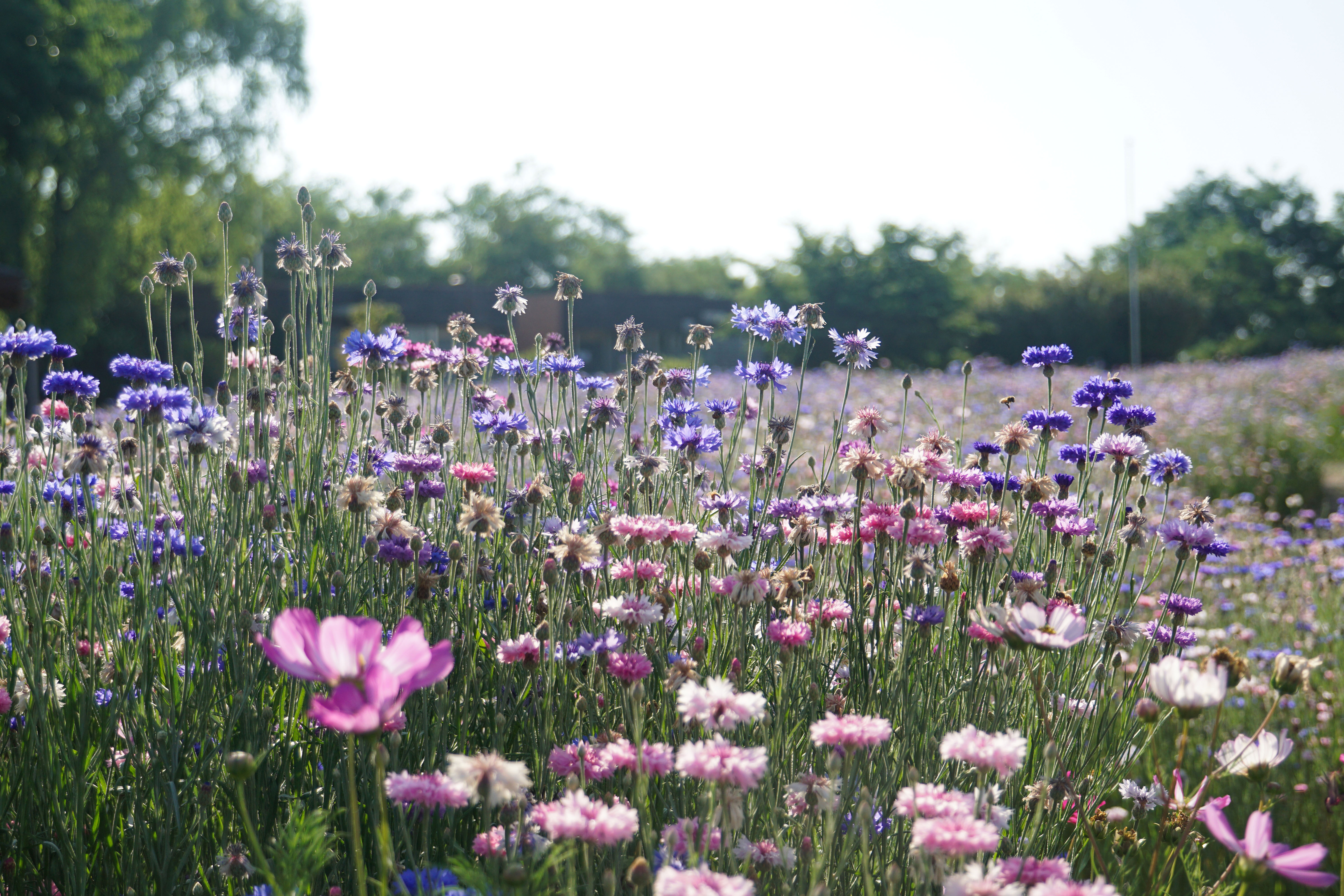 지금까지 보라색수레국화를 많이 보았는데 여기는 여러 가지 색의 수레국화들이 있다.