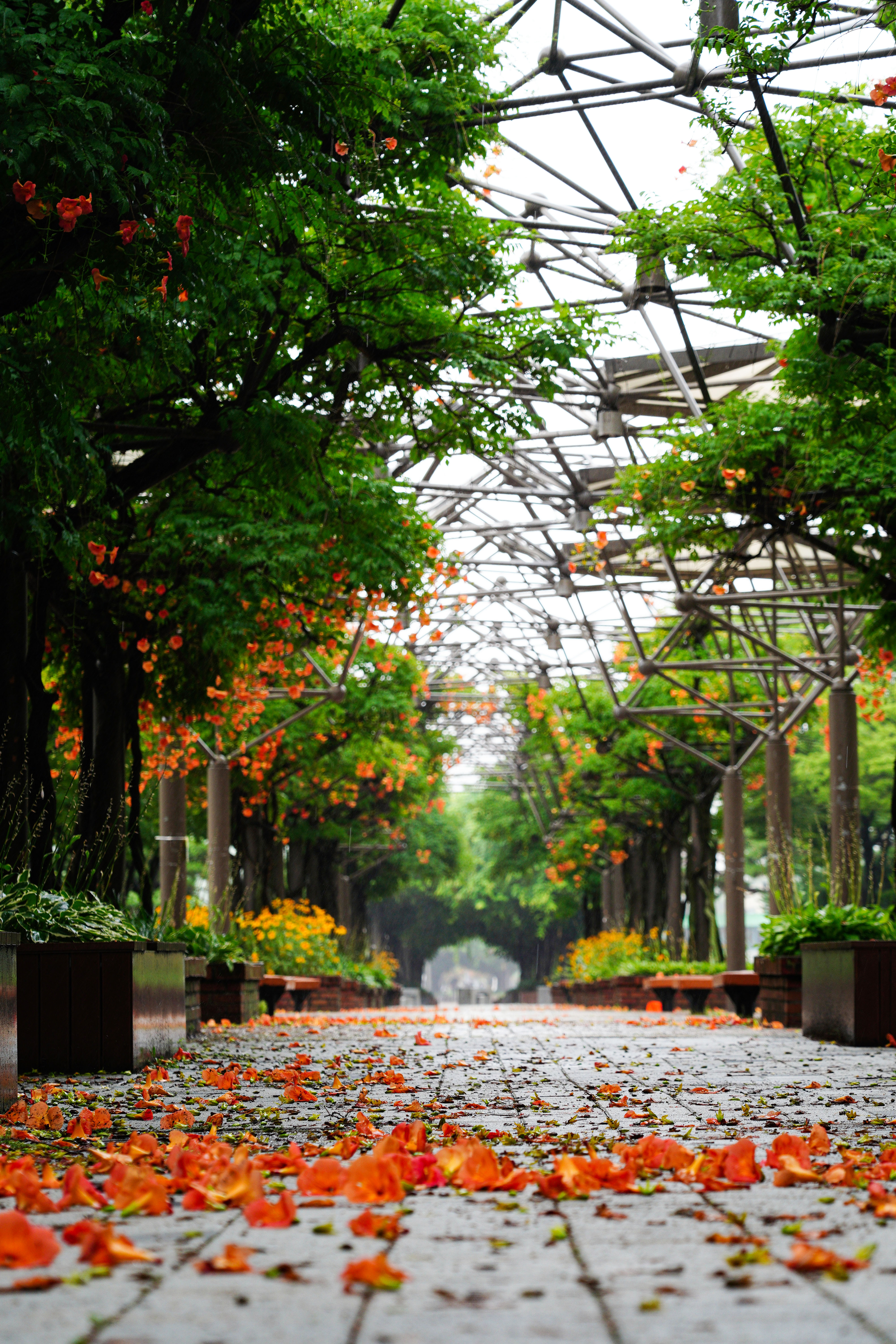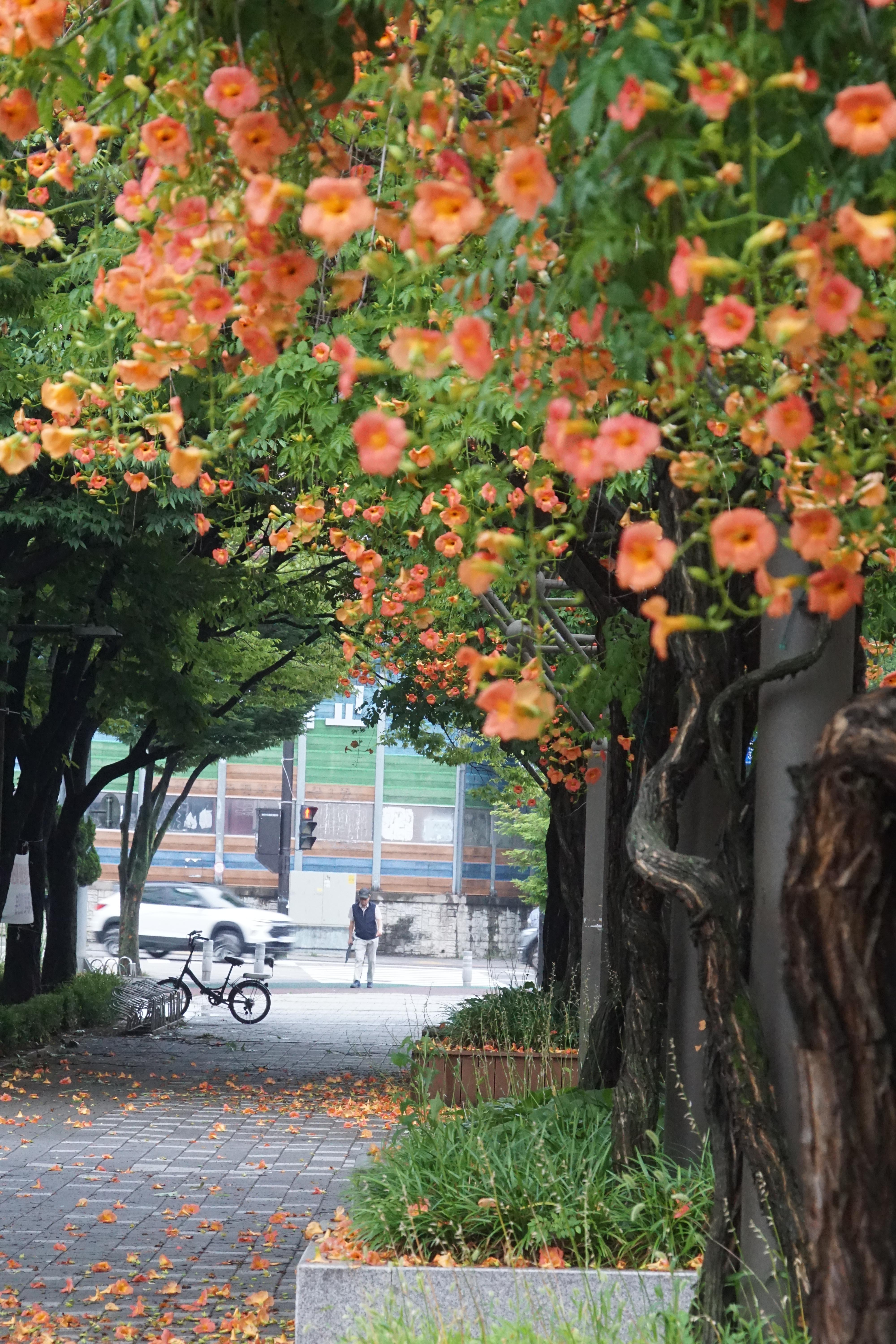 밤새 비가 와서 많이 떨어져 있는 상태이다.