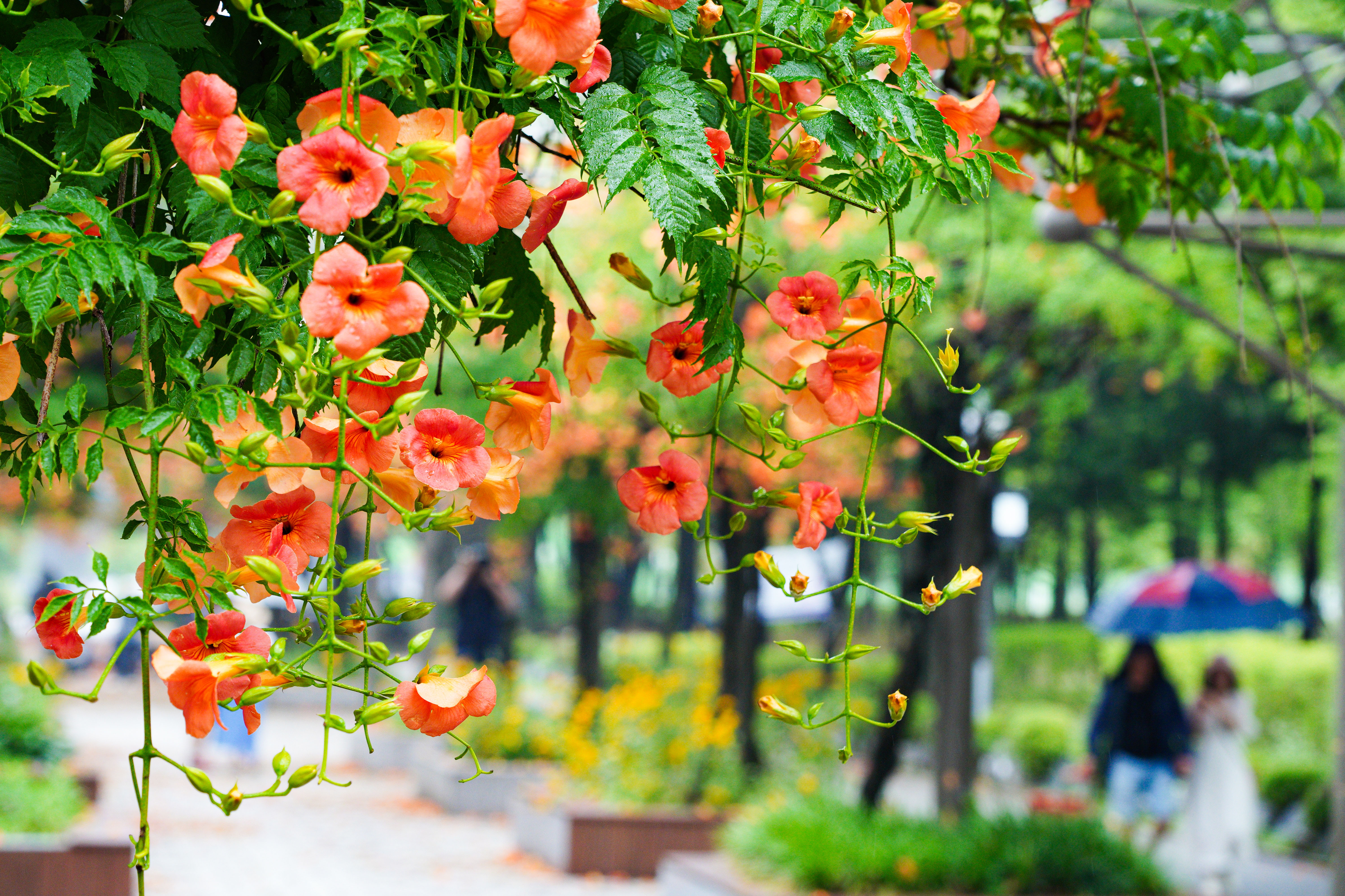 비가 오락가락하는 날씨에도 많은 사람들이 나와있다.