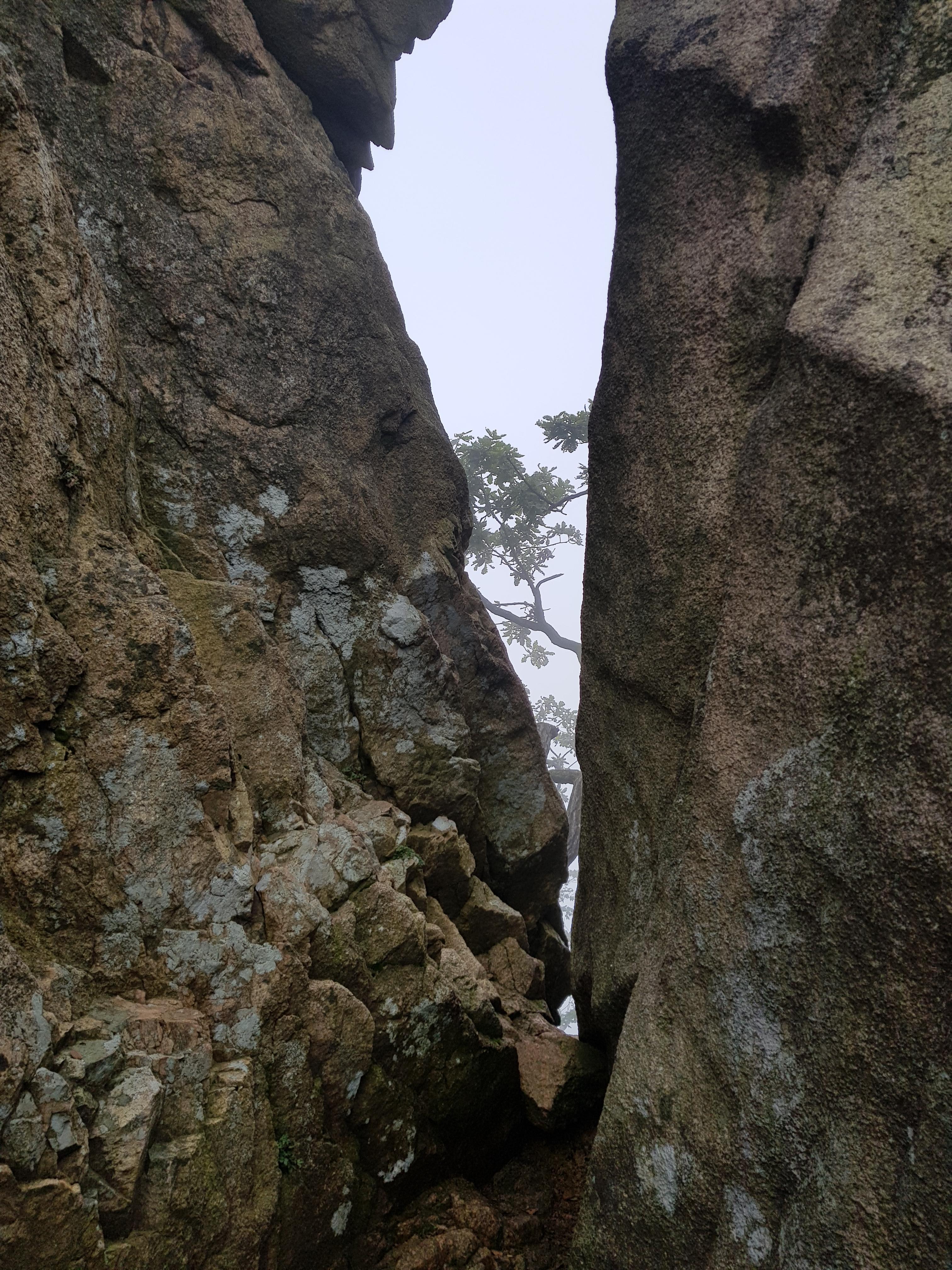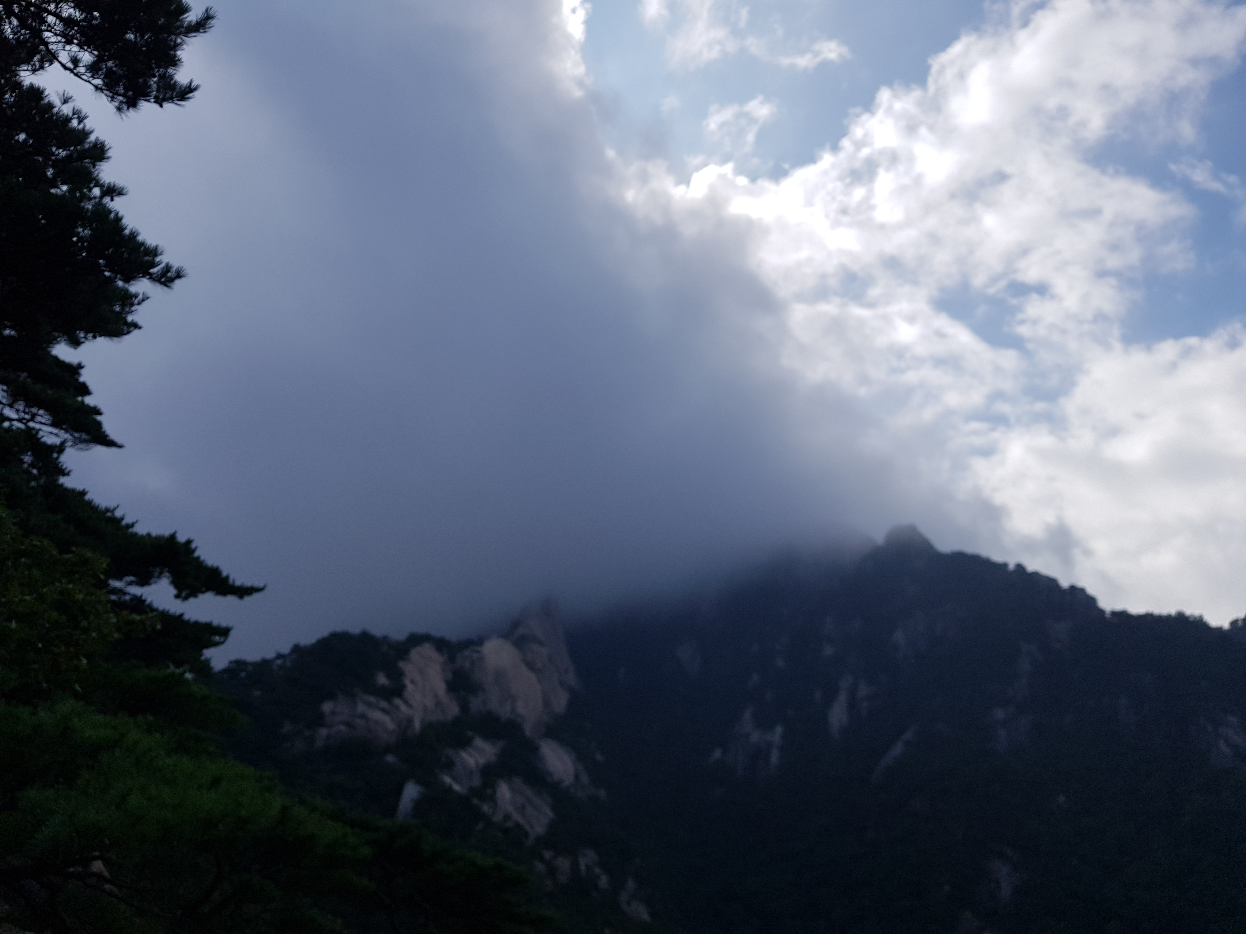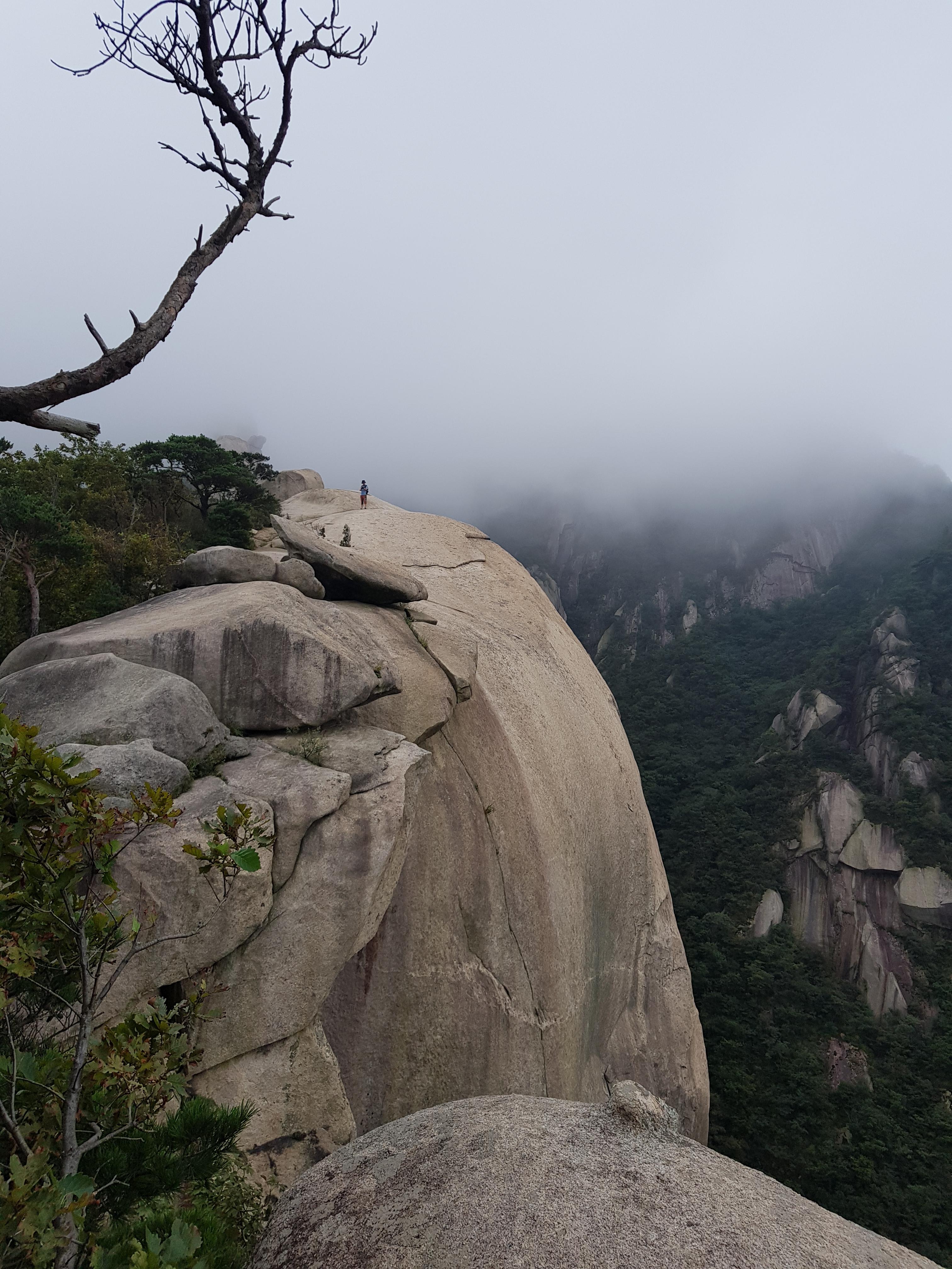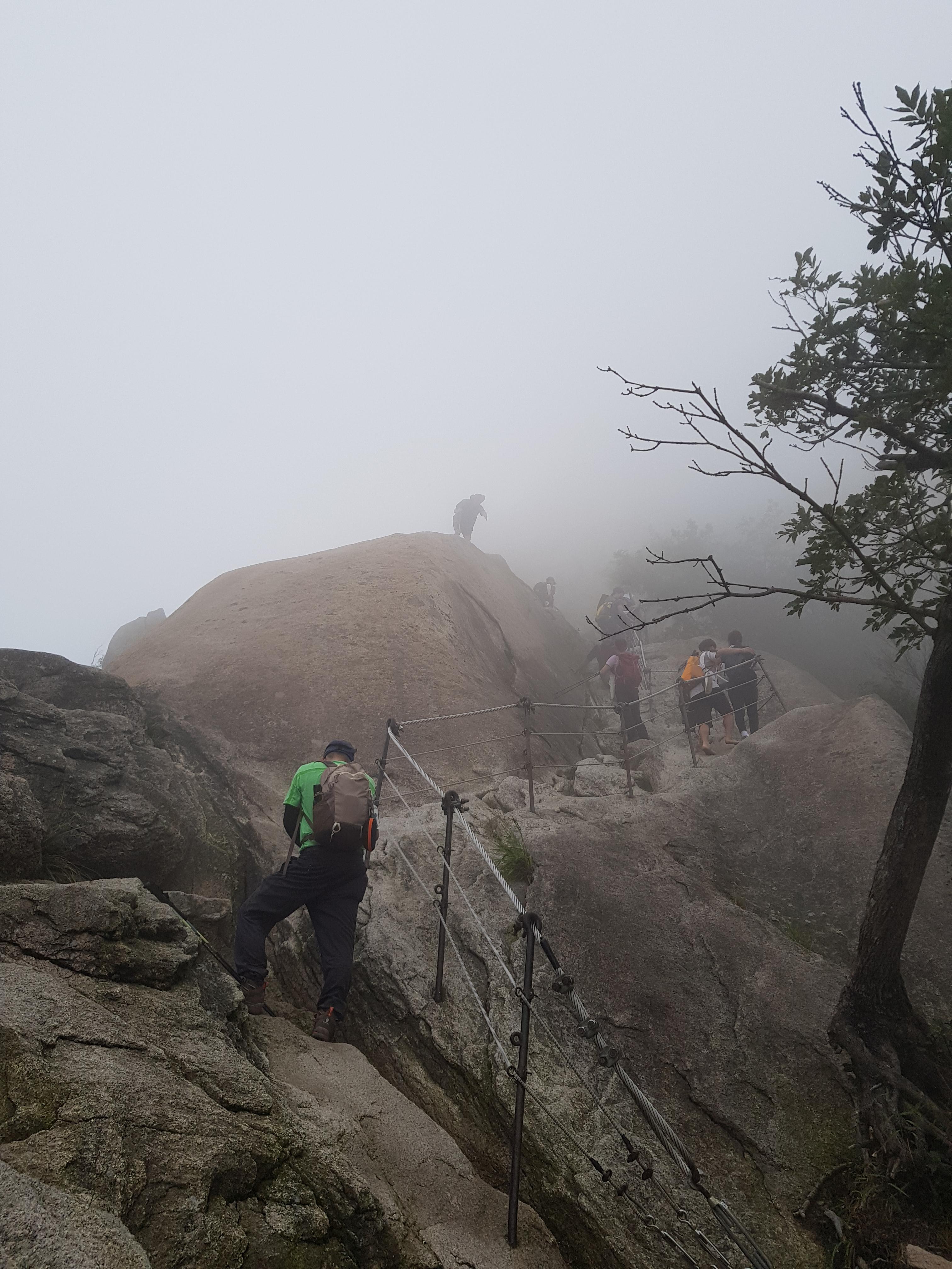 숨은 벽이 보이기 시작하는데 구름에 가려 정상은 안 보인다.