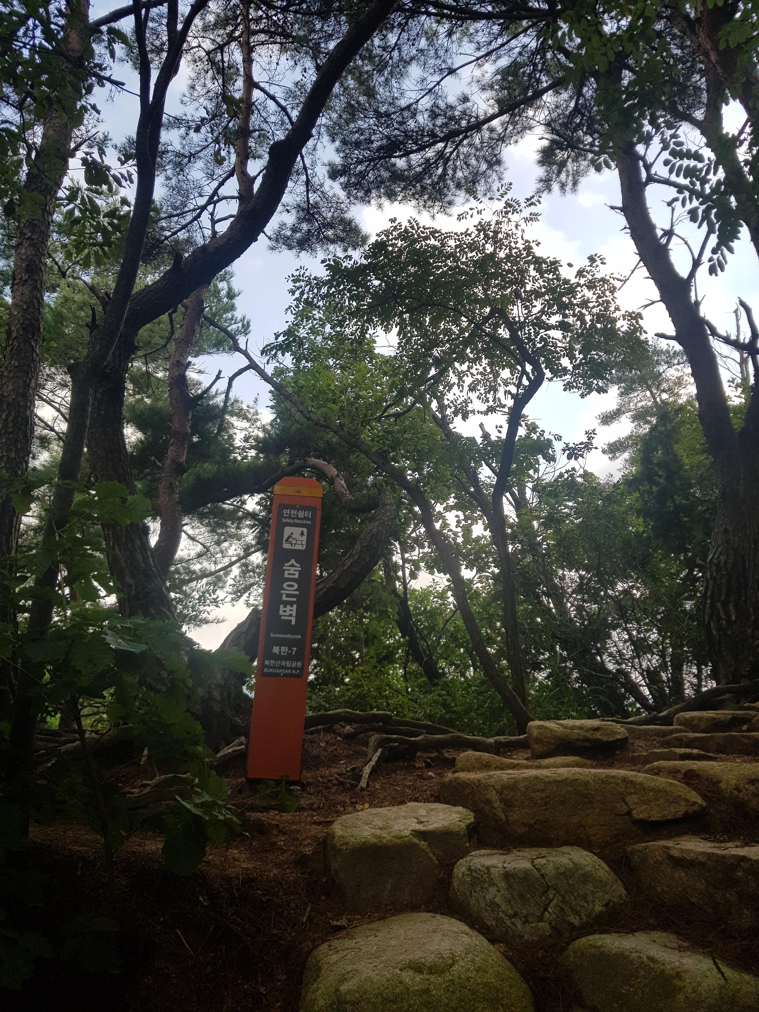 백운대 방향으로 계속 오르다 보면 보이는 숨은 벽 이정표.