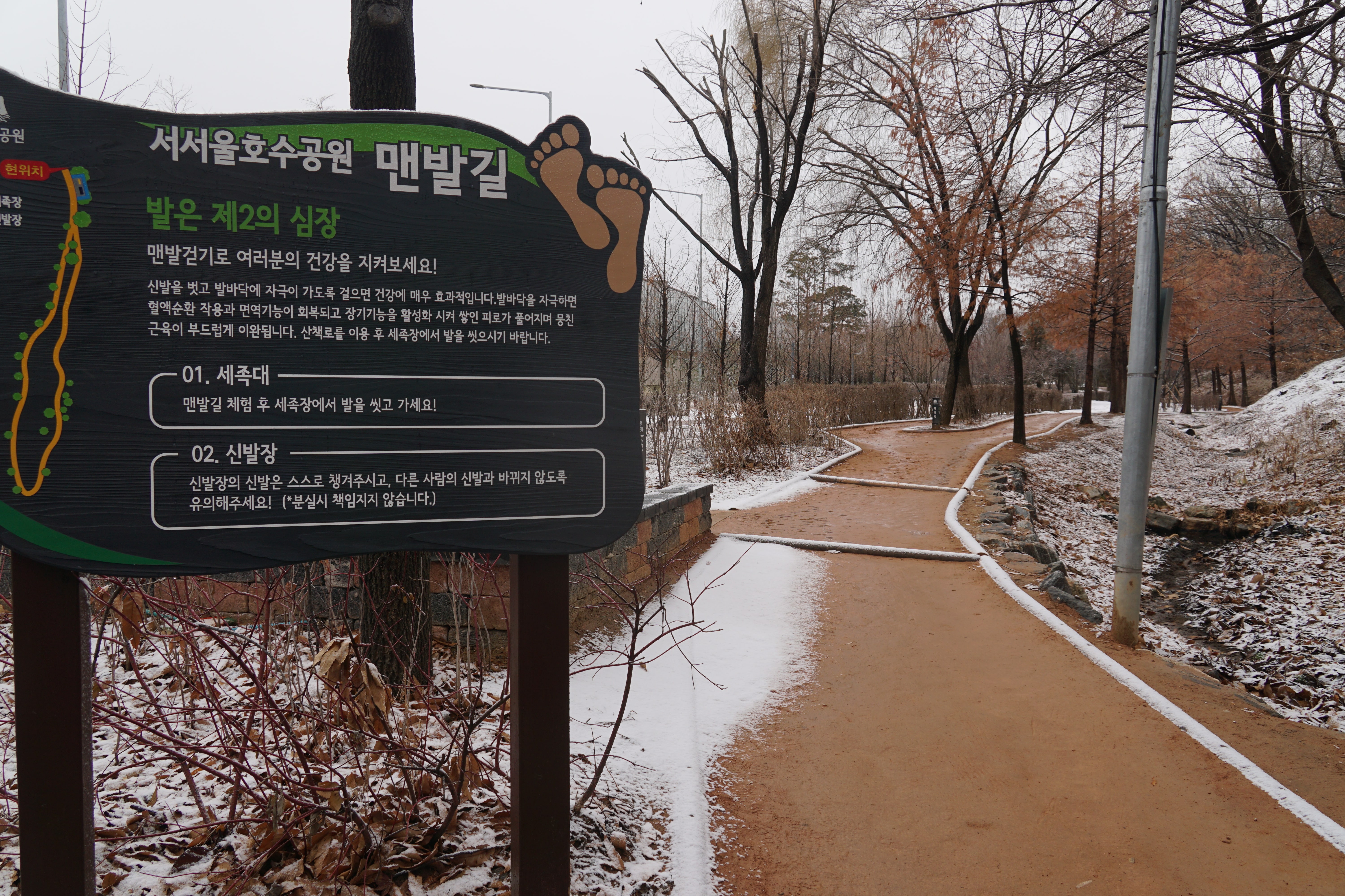 서서울 호수공원에 맨발길이 생겼다.