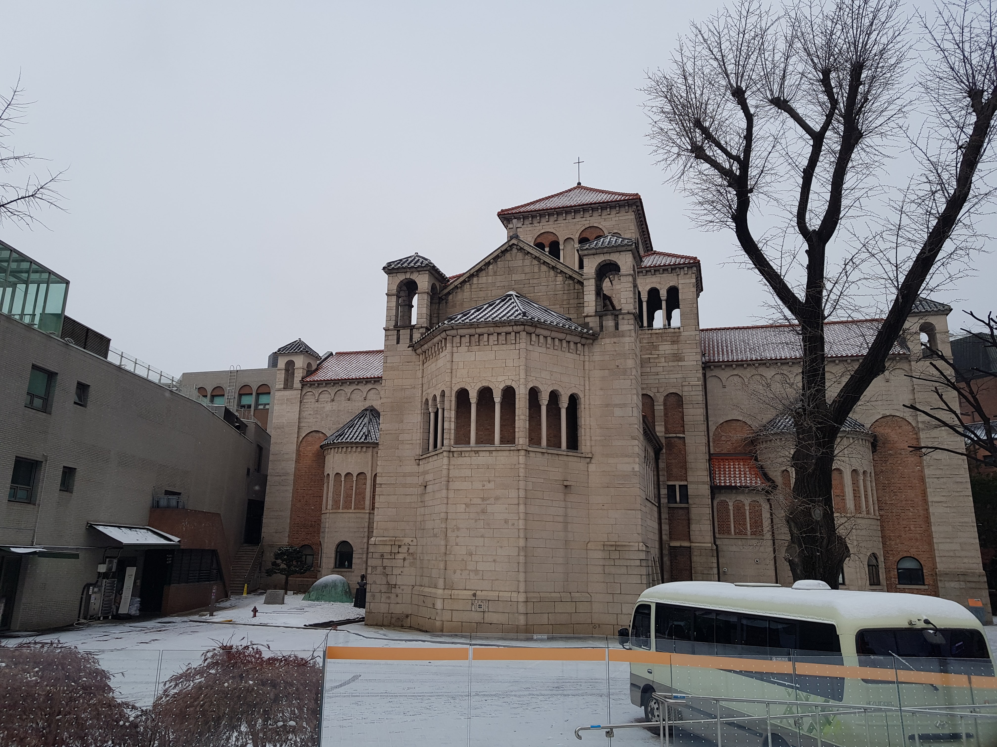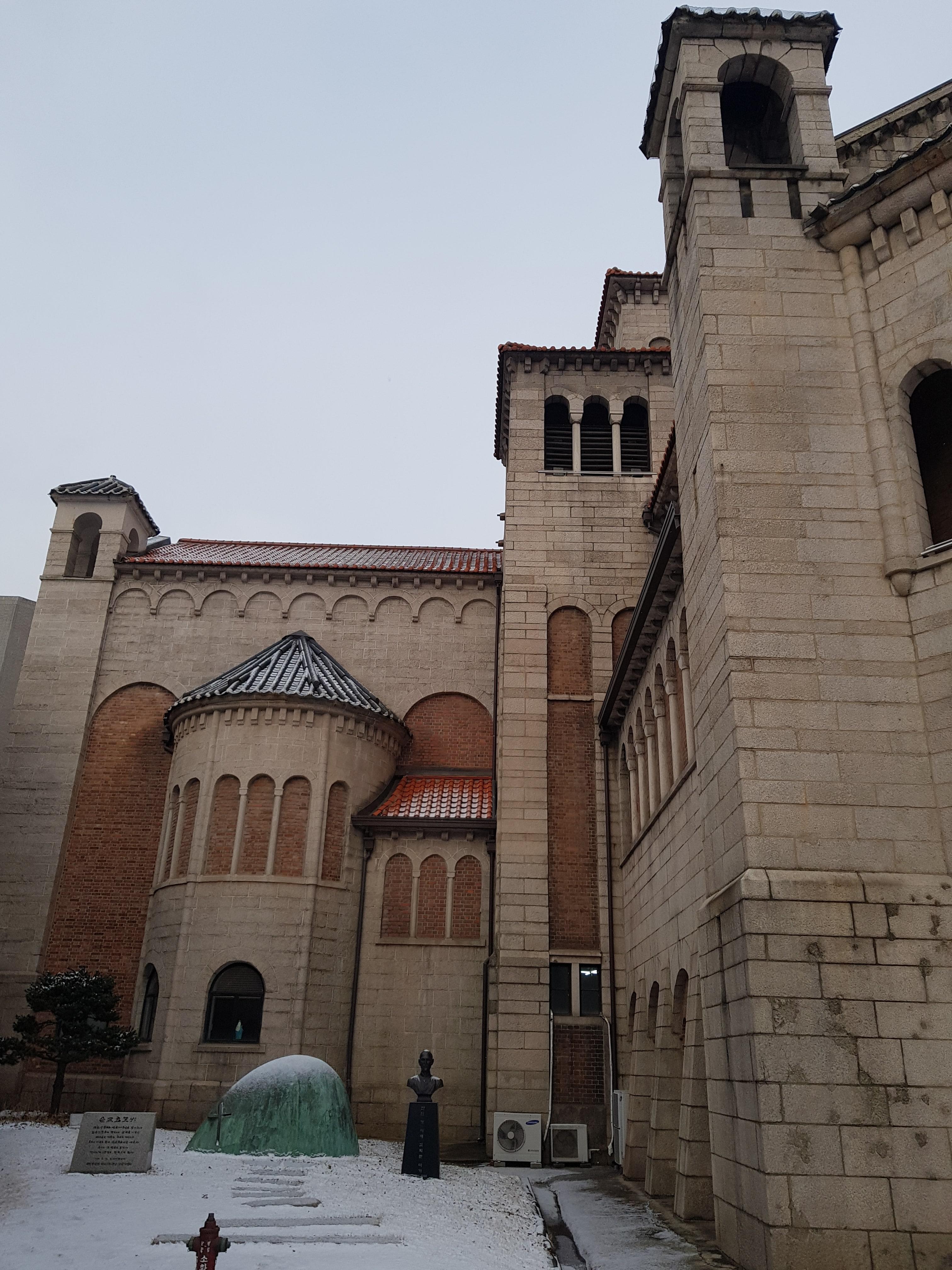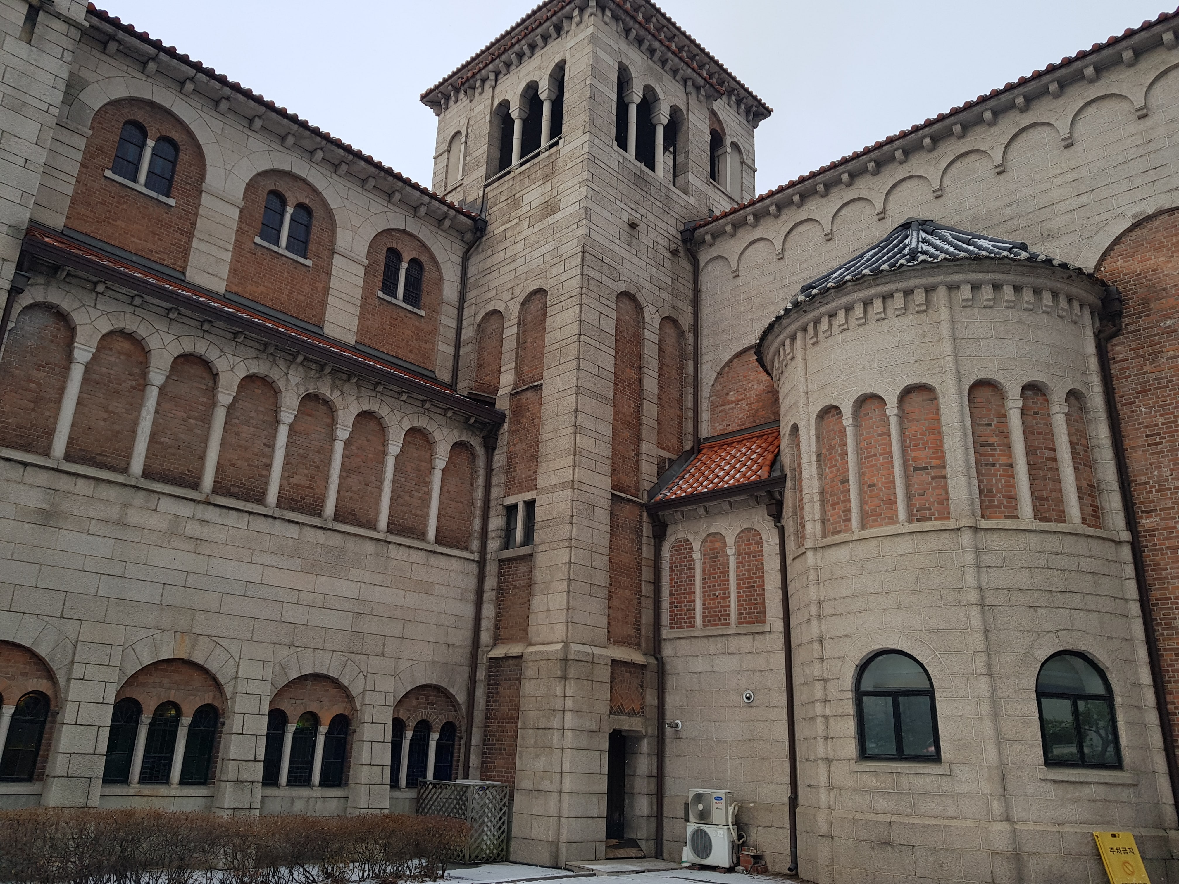 로마네스크 건축양식의 이국적인 성당의 모습.