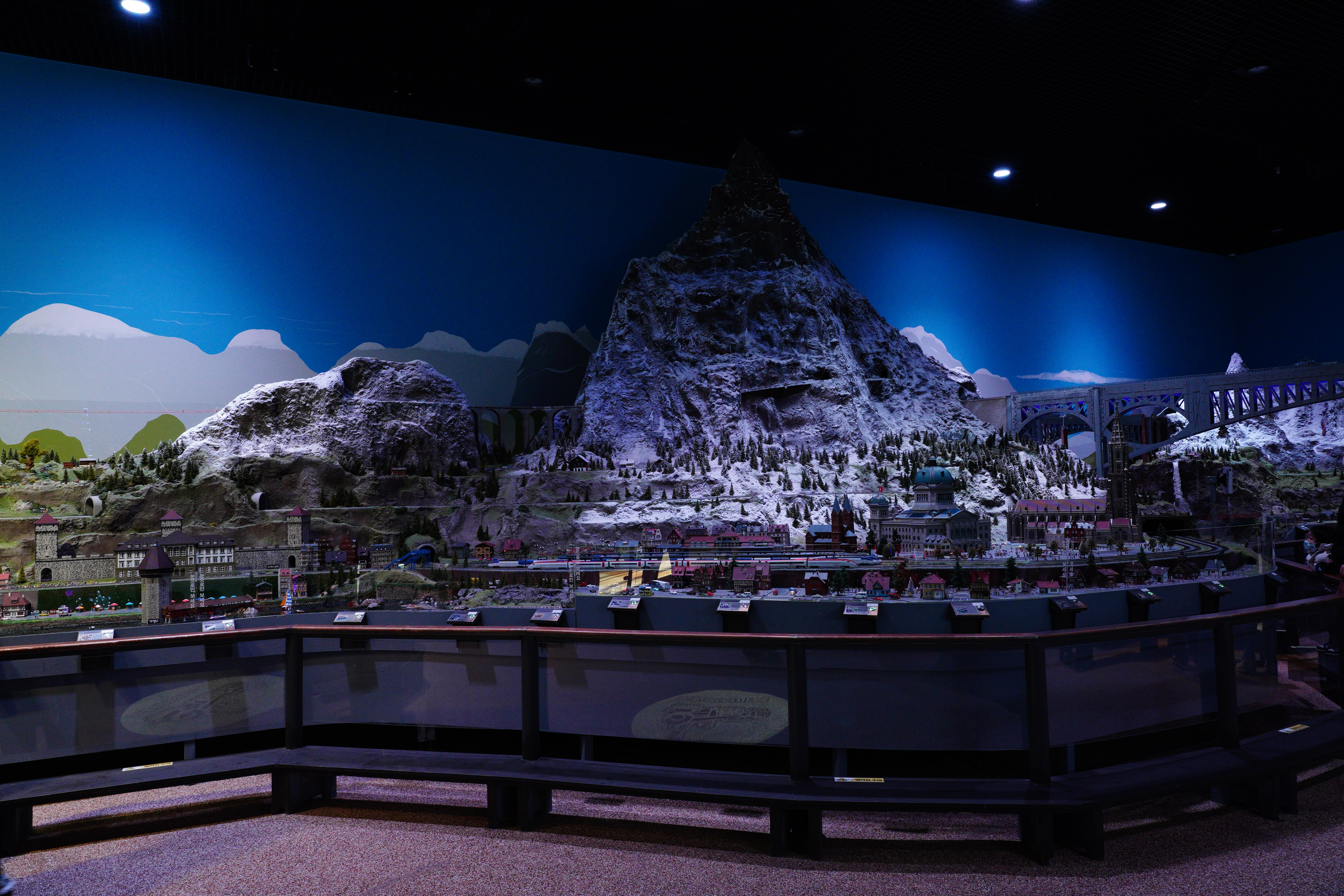 - 디오라마: 낮과 밤이 바뀌는 조명과 효과음을 통해 스위스의 풍경을 경험할 수 있다.