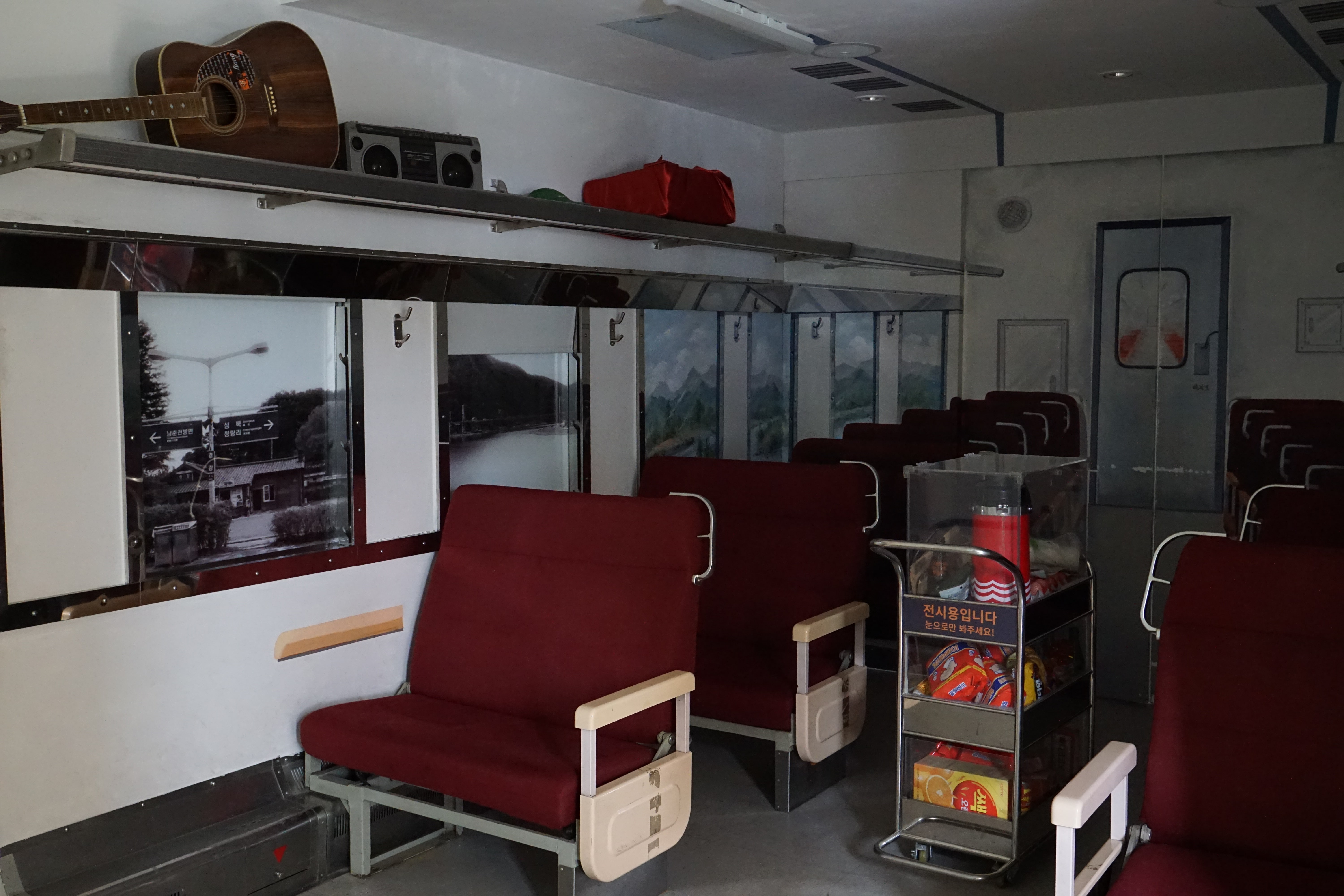 전시되어 있는 기차와 내부의 모습.
