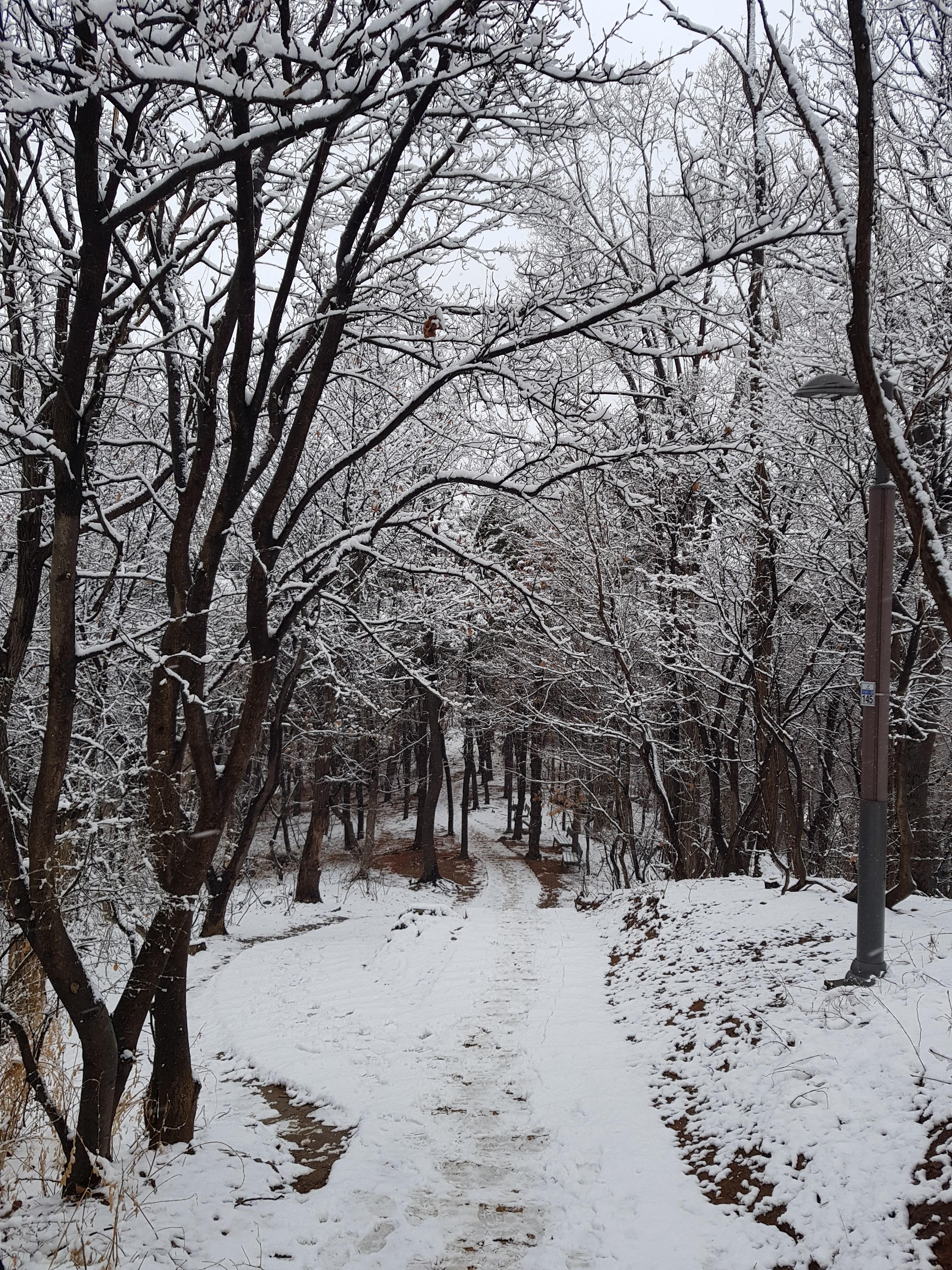 봄의 눈내린길을 걸어본다.