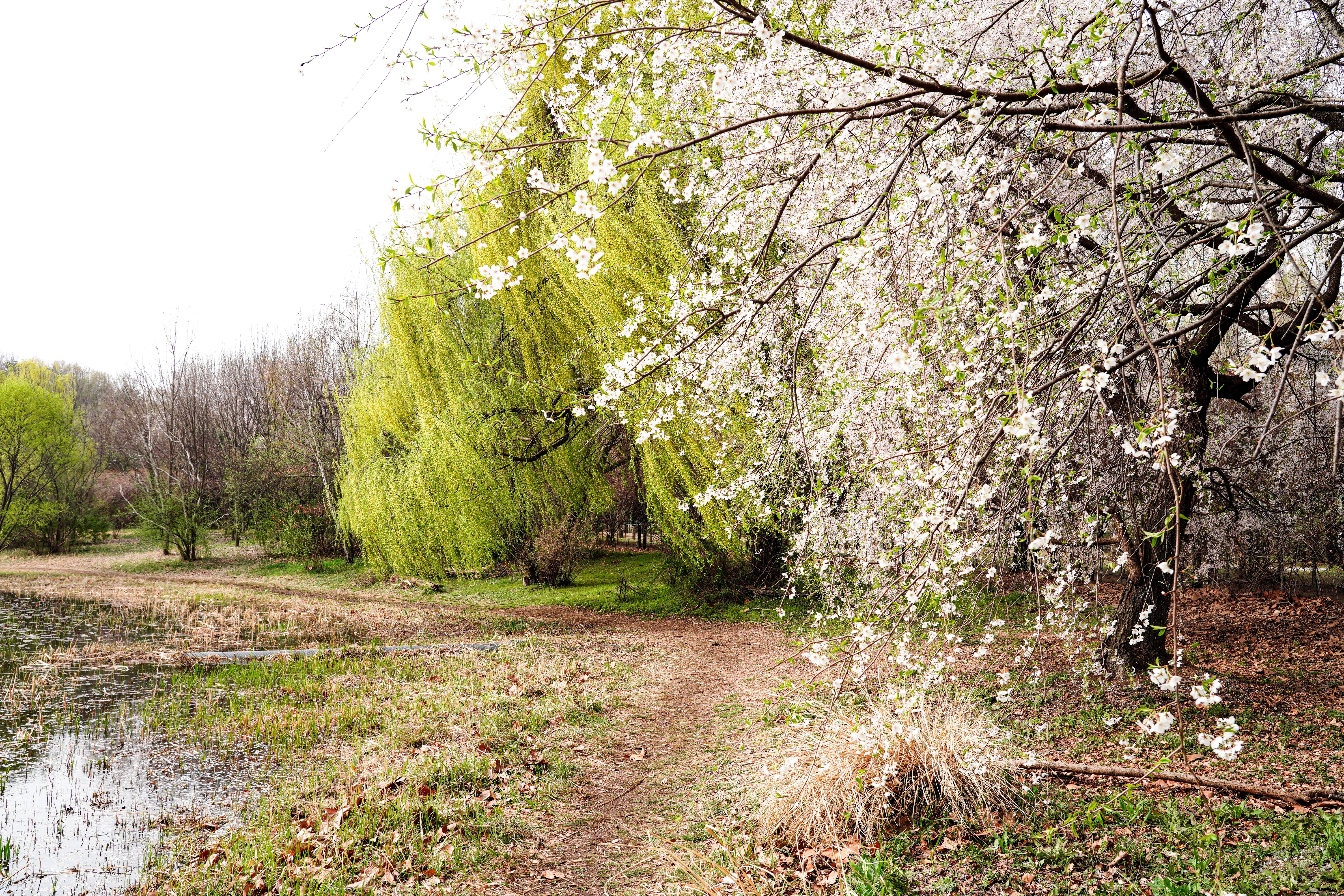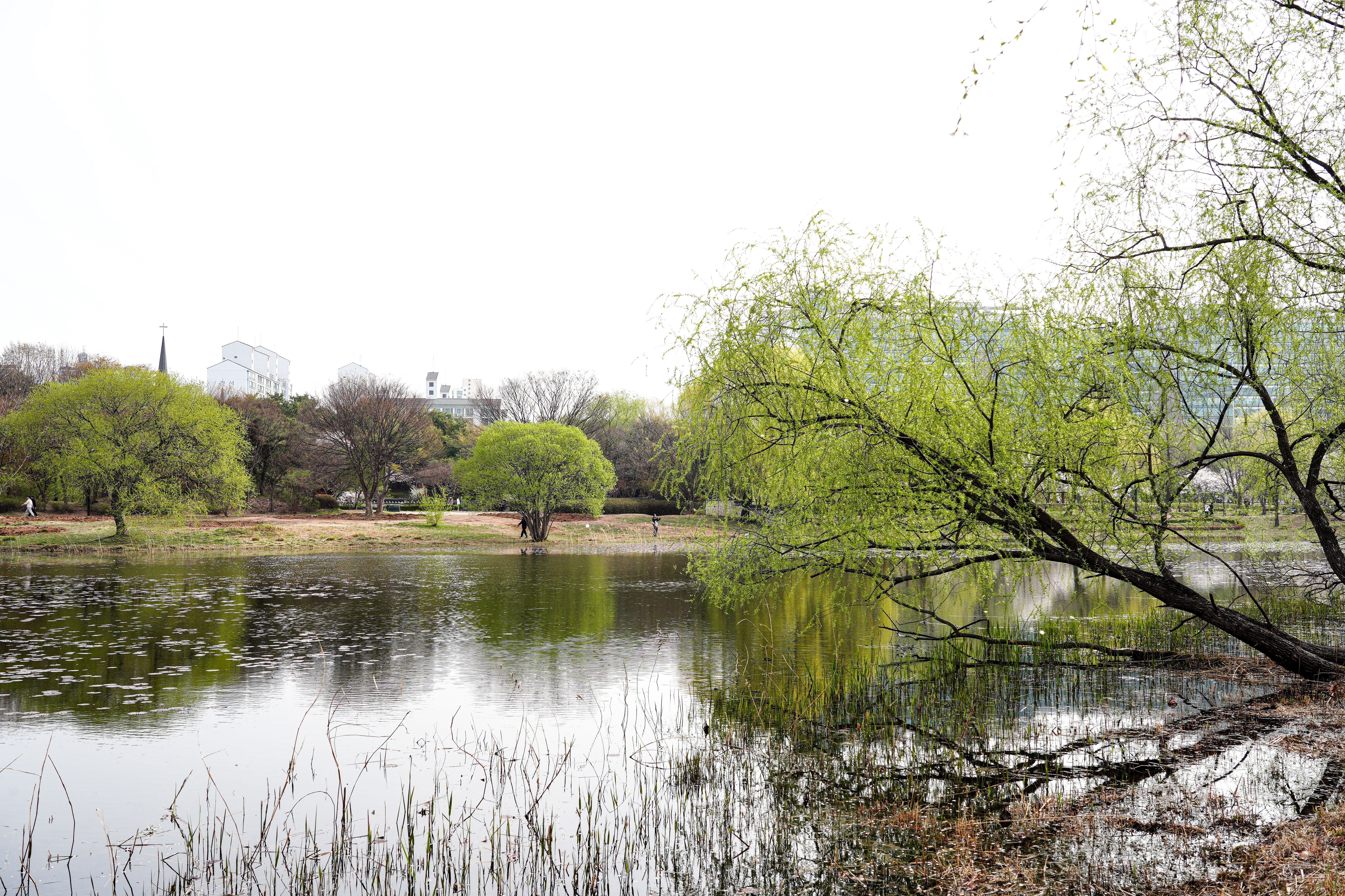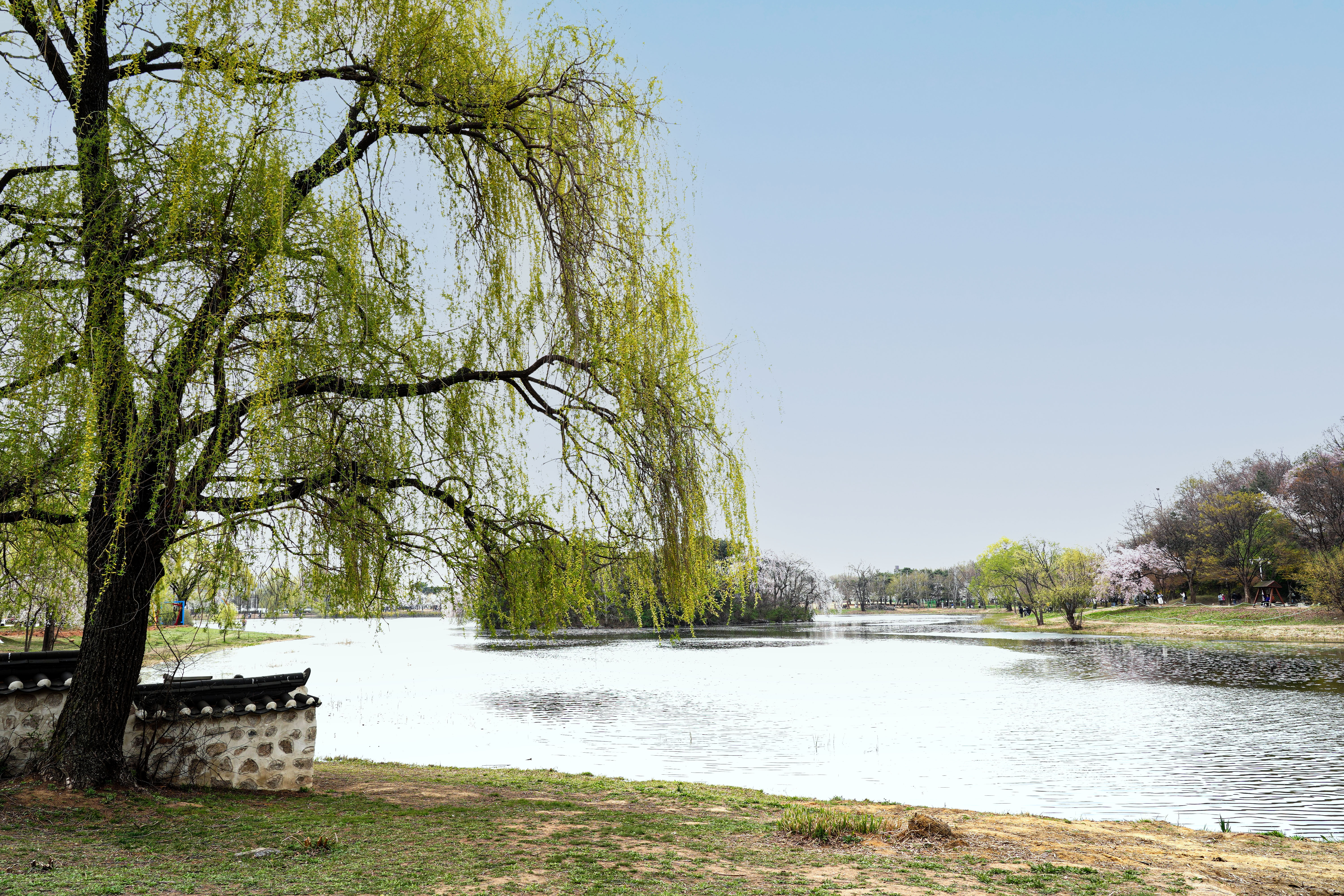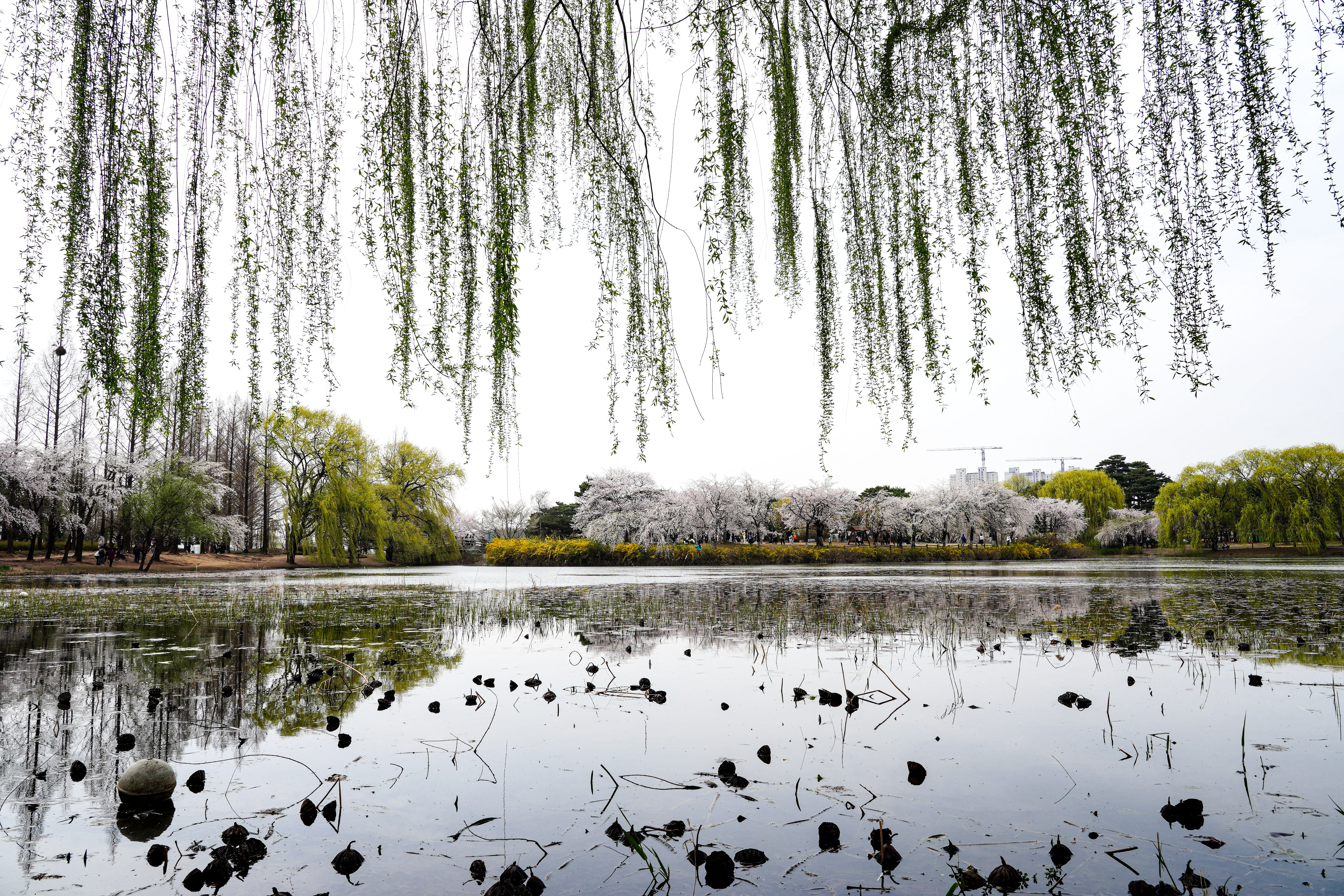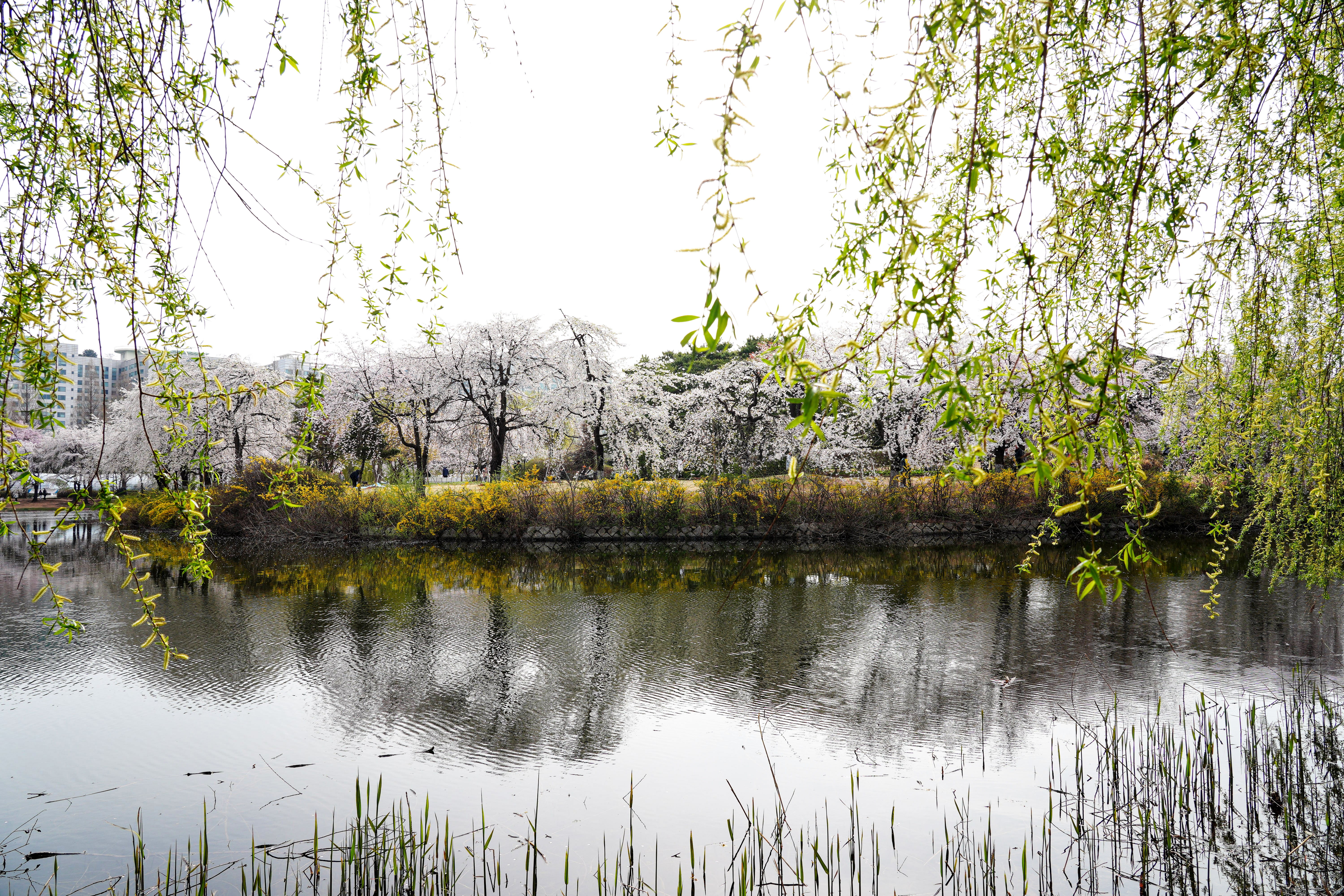 이제 막 초록잎이 나오는 수양버들도 수양벚꽃과 함께 너무 예쁘다.