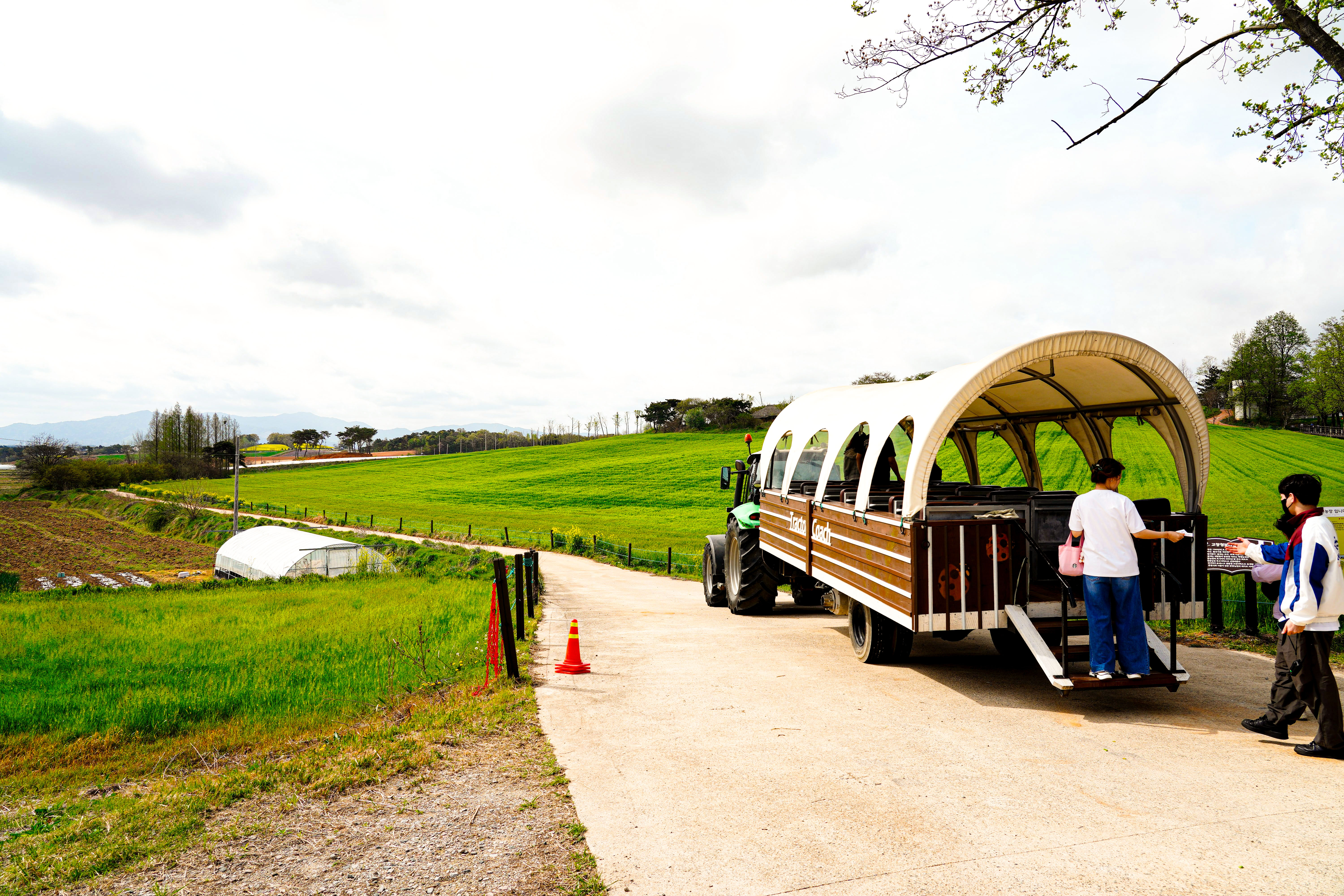 트랙터 체험 관람길은 트랙터 타고 가야한다.