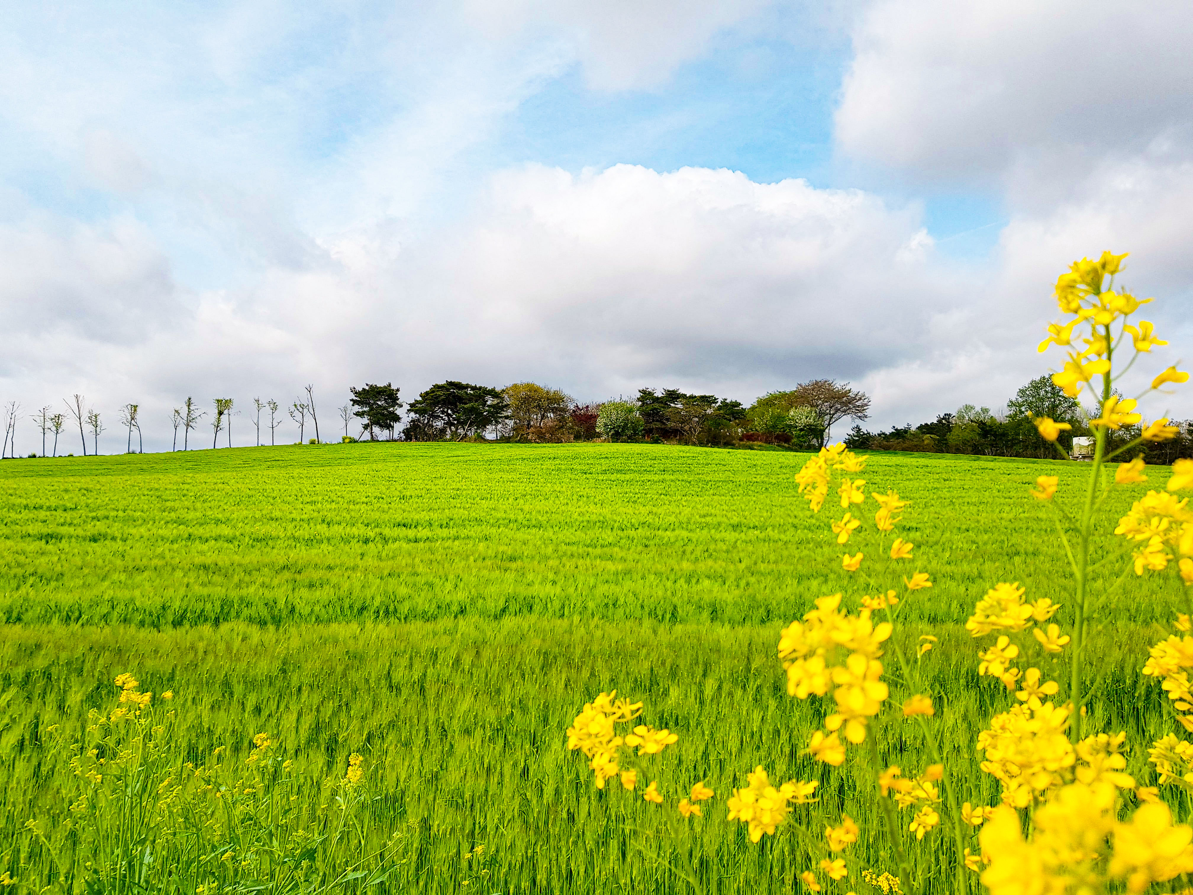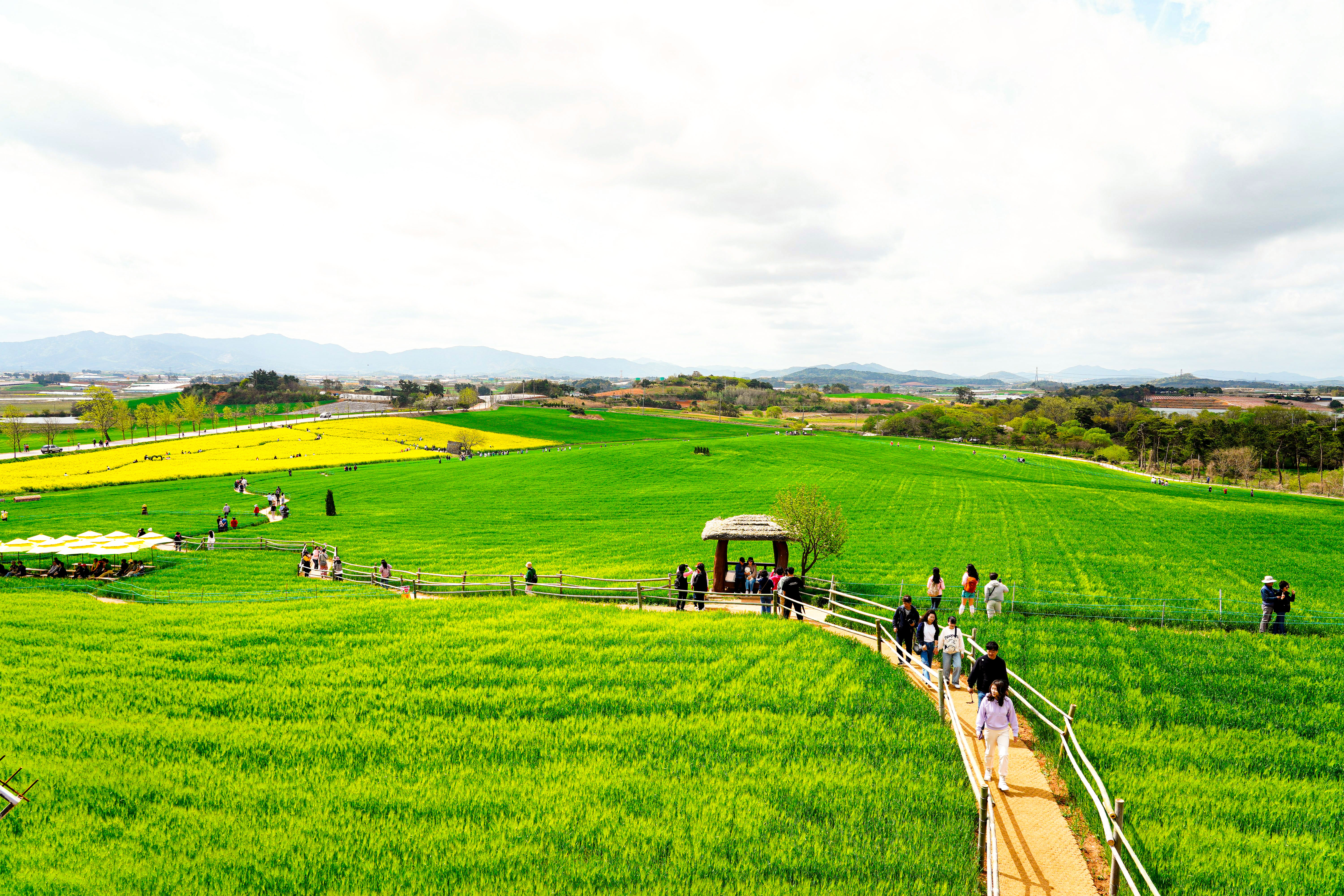 따뜻한 봄햇살과 바람에 흔들리는 청보리와 유채꽃, 자연의 힐링여행지로 고창 학원농장 청보리밭을 추천한다.