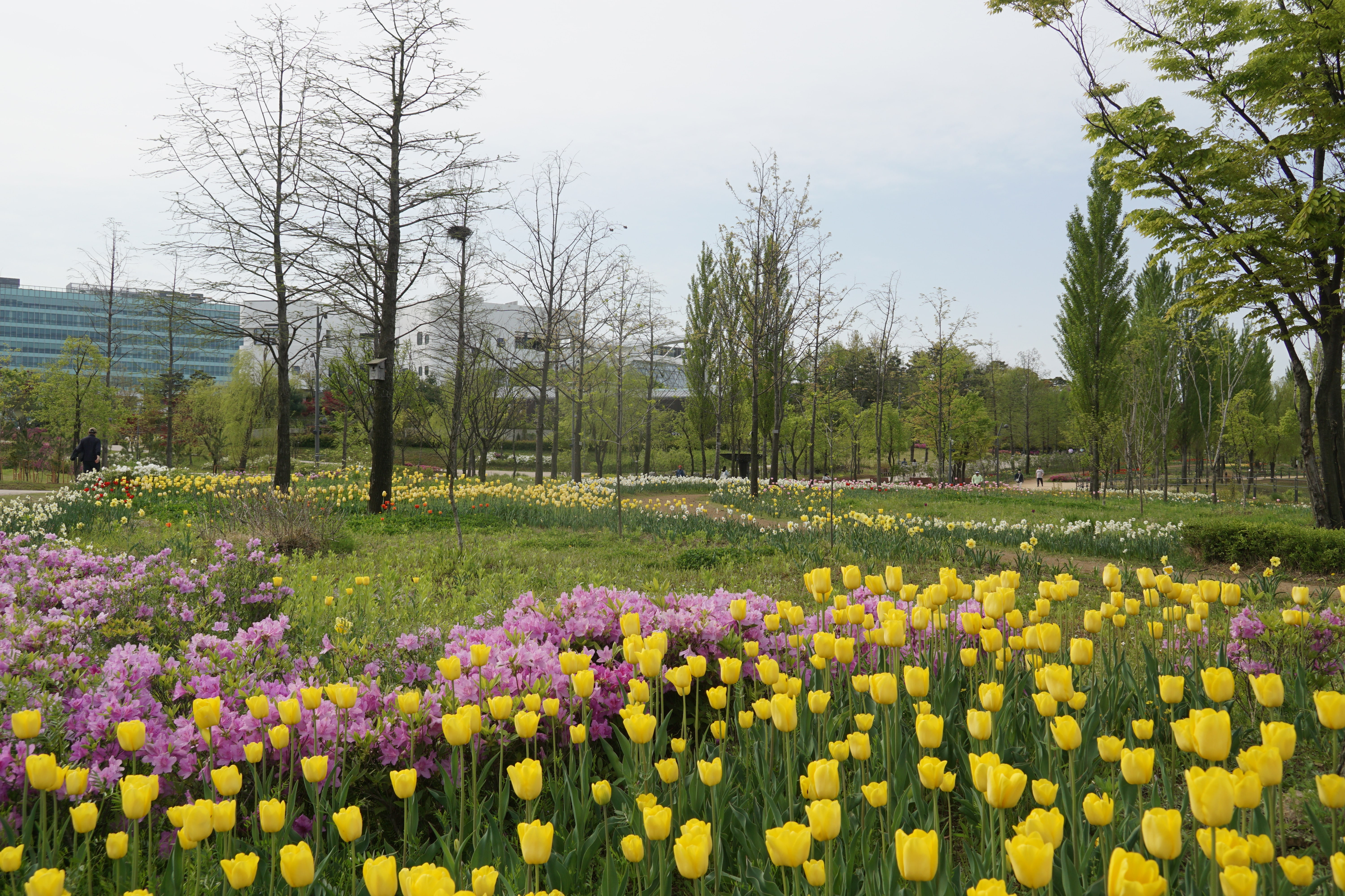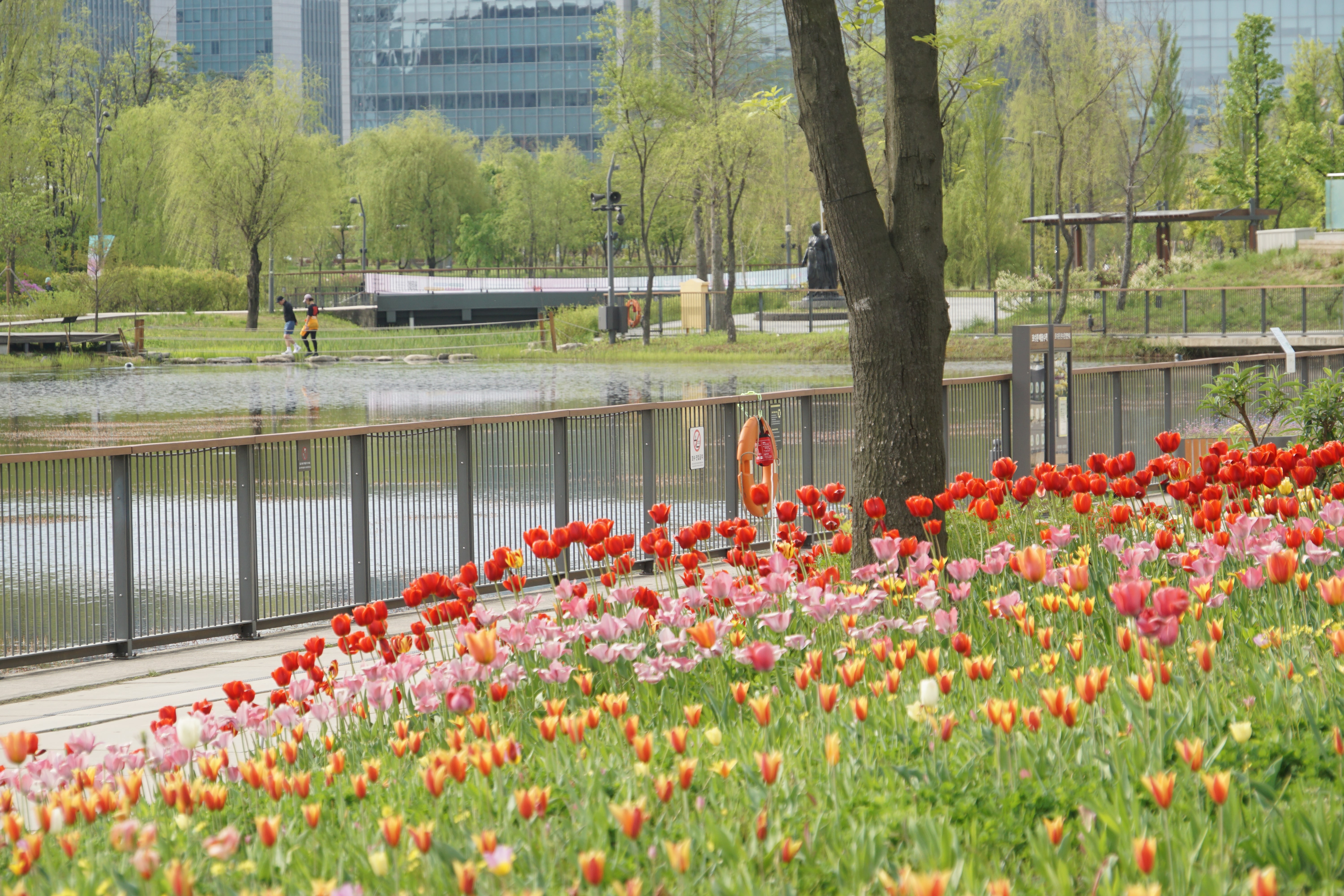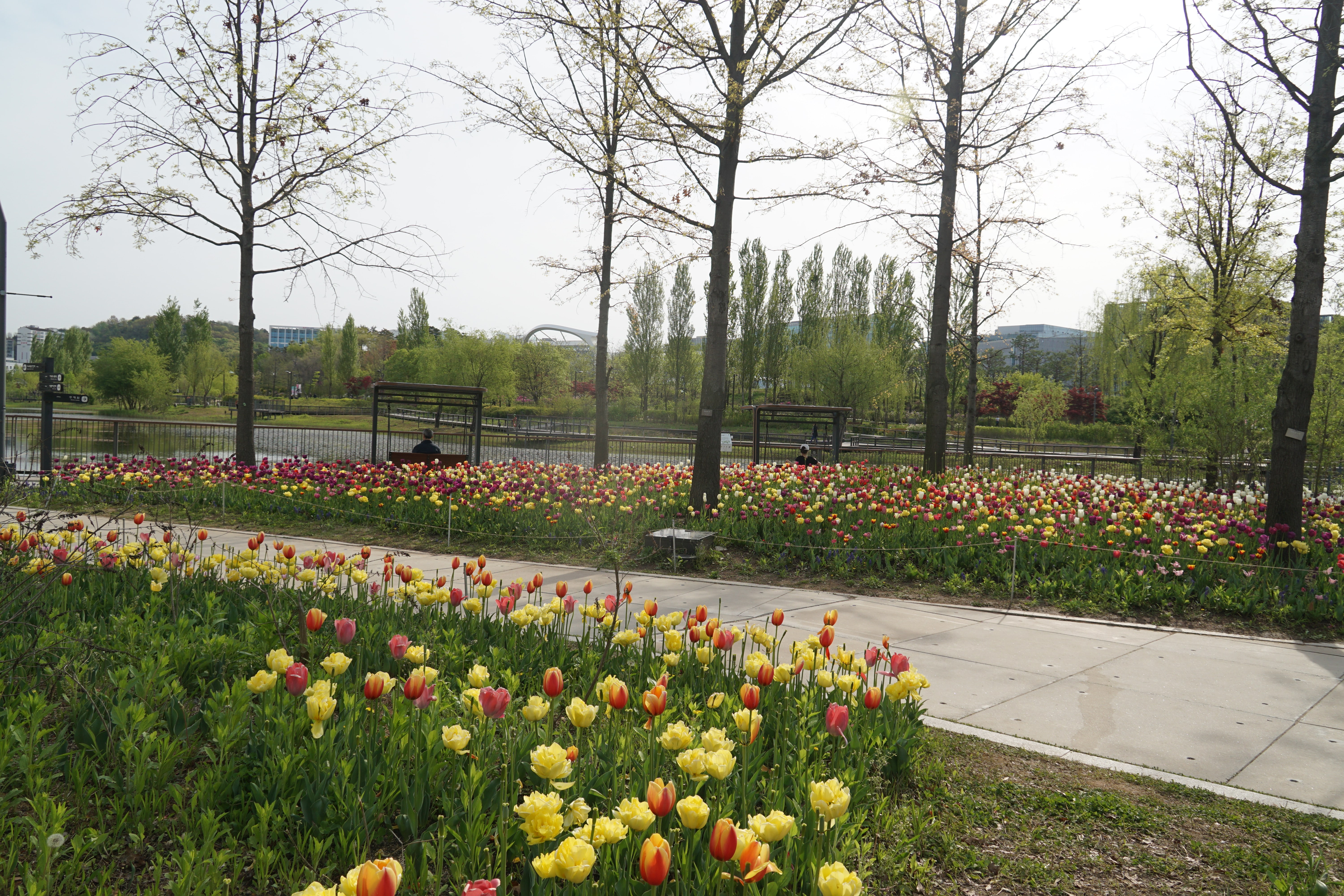 호수 주변 산책길에 튤립이 가득 피어있었다.