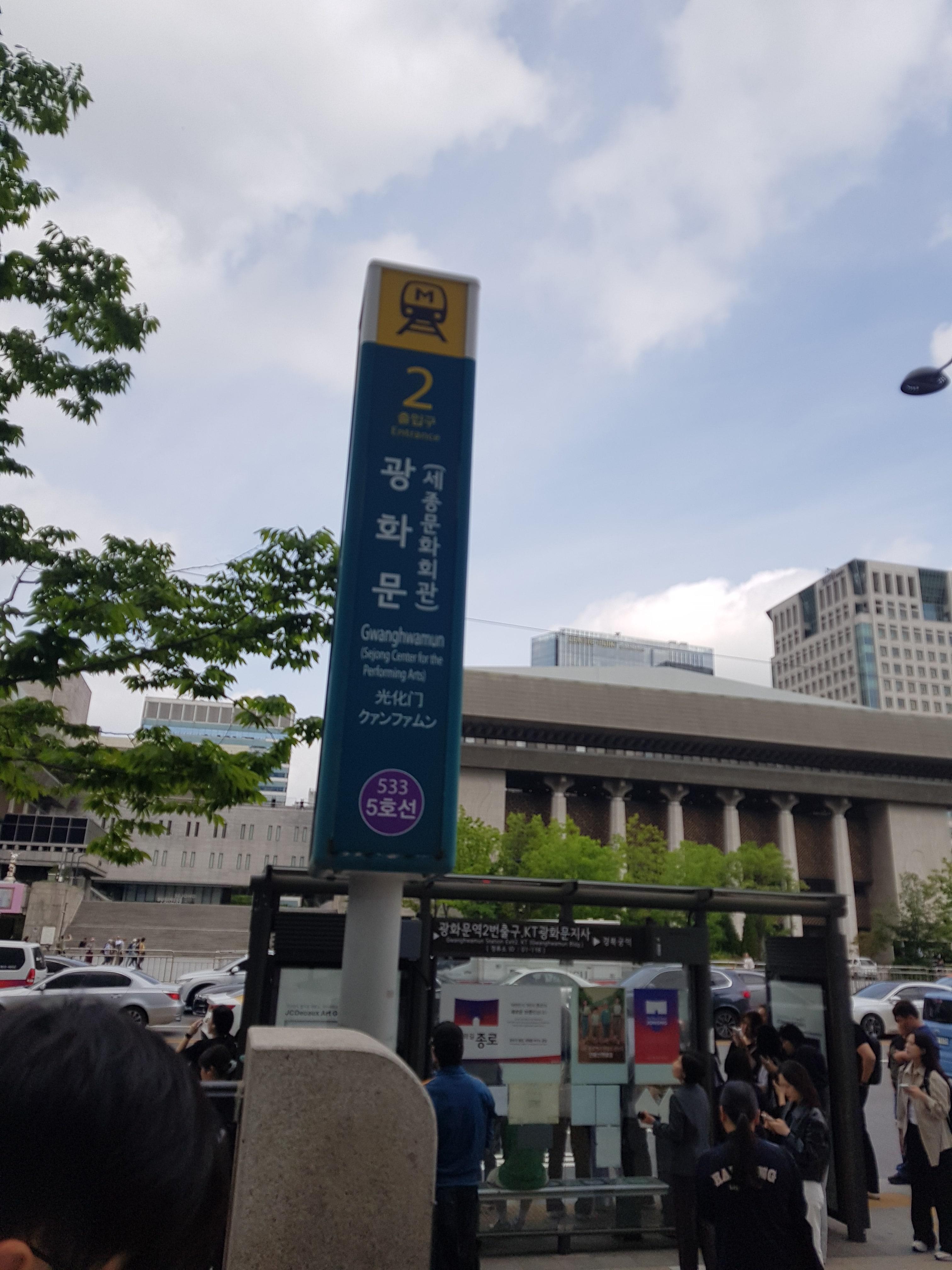 5호선 광화문역 2번출구로 나와서 7212 버스 기다리는 중.
