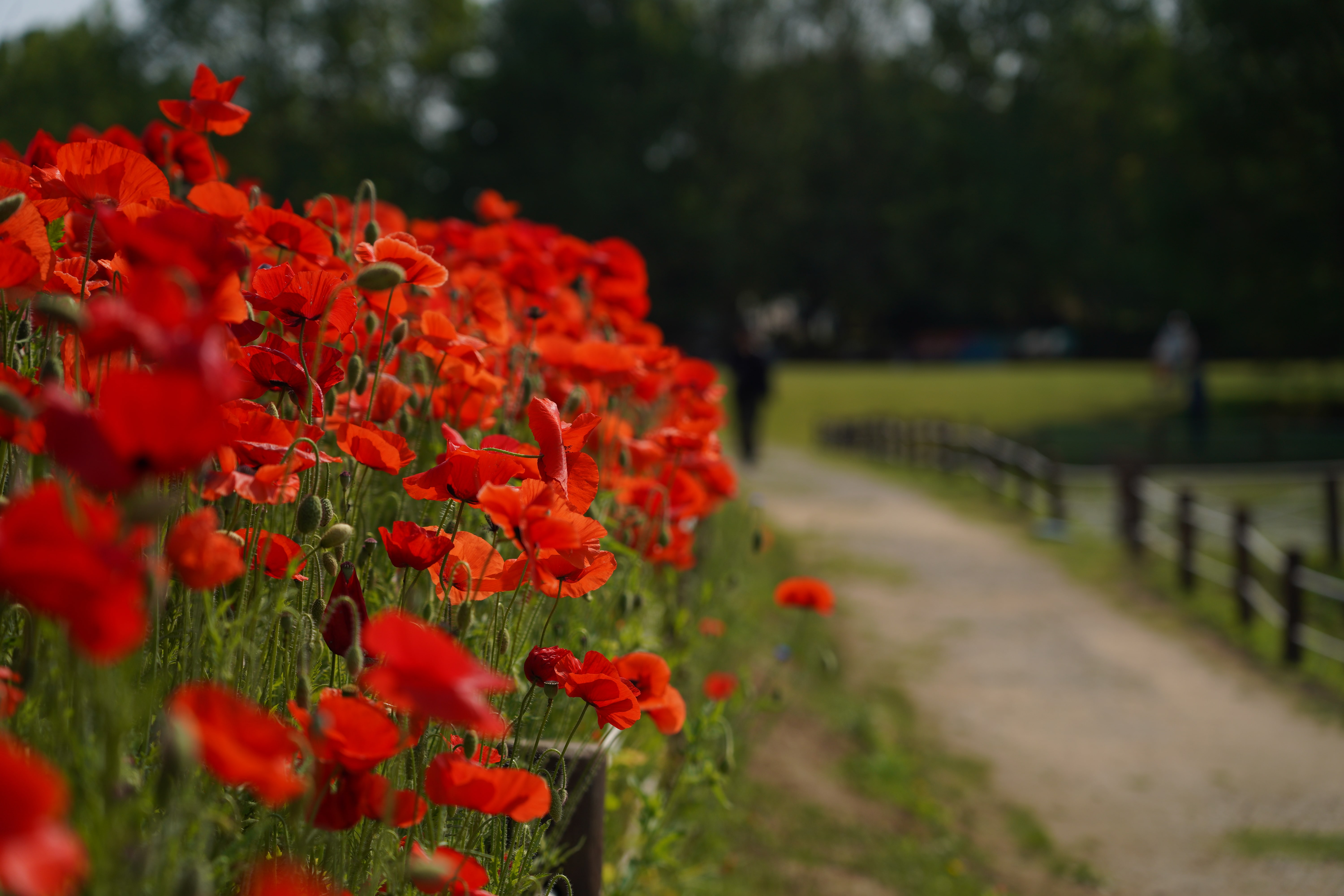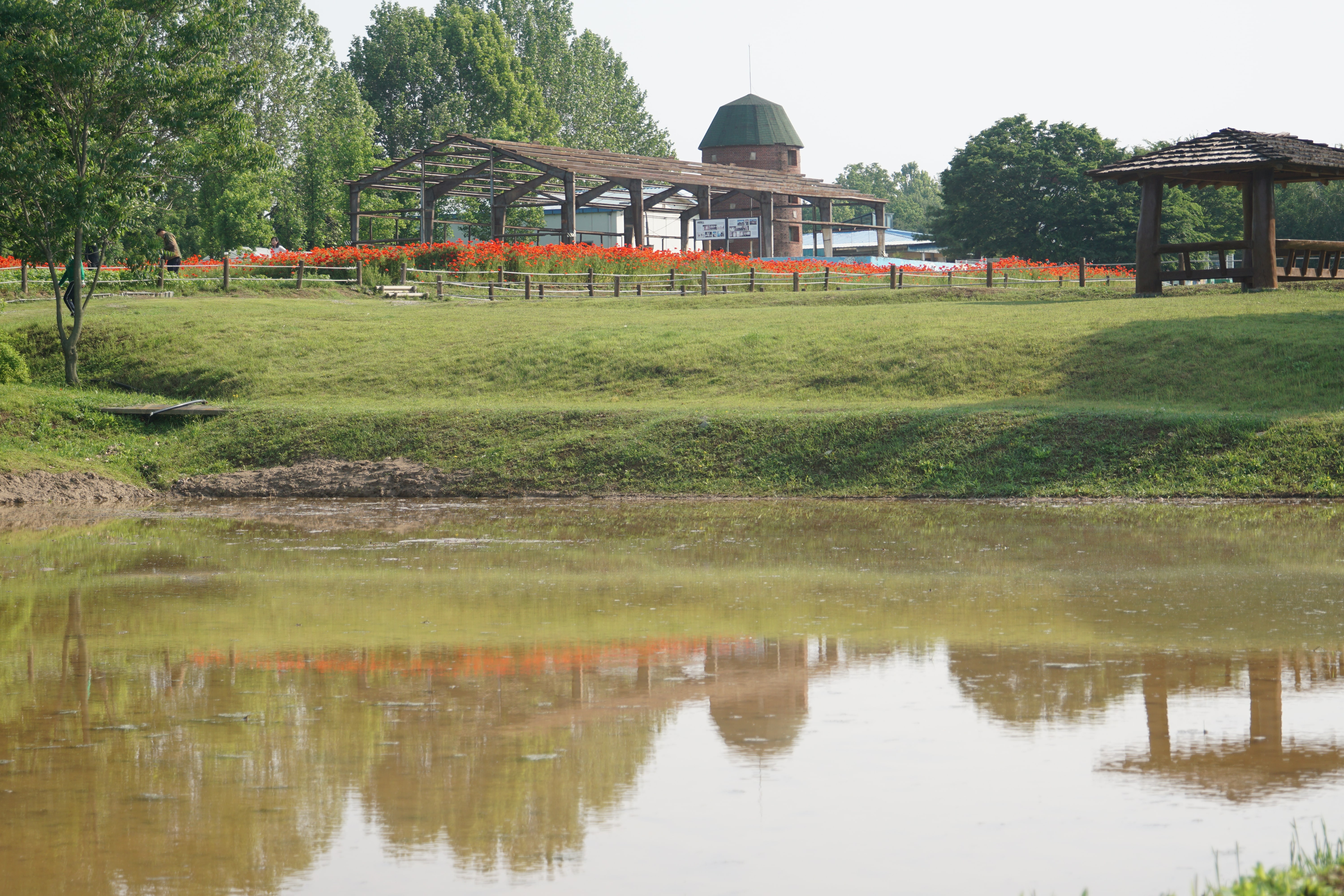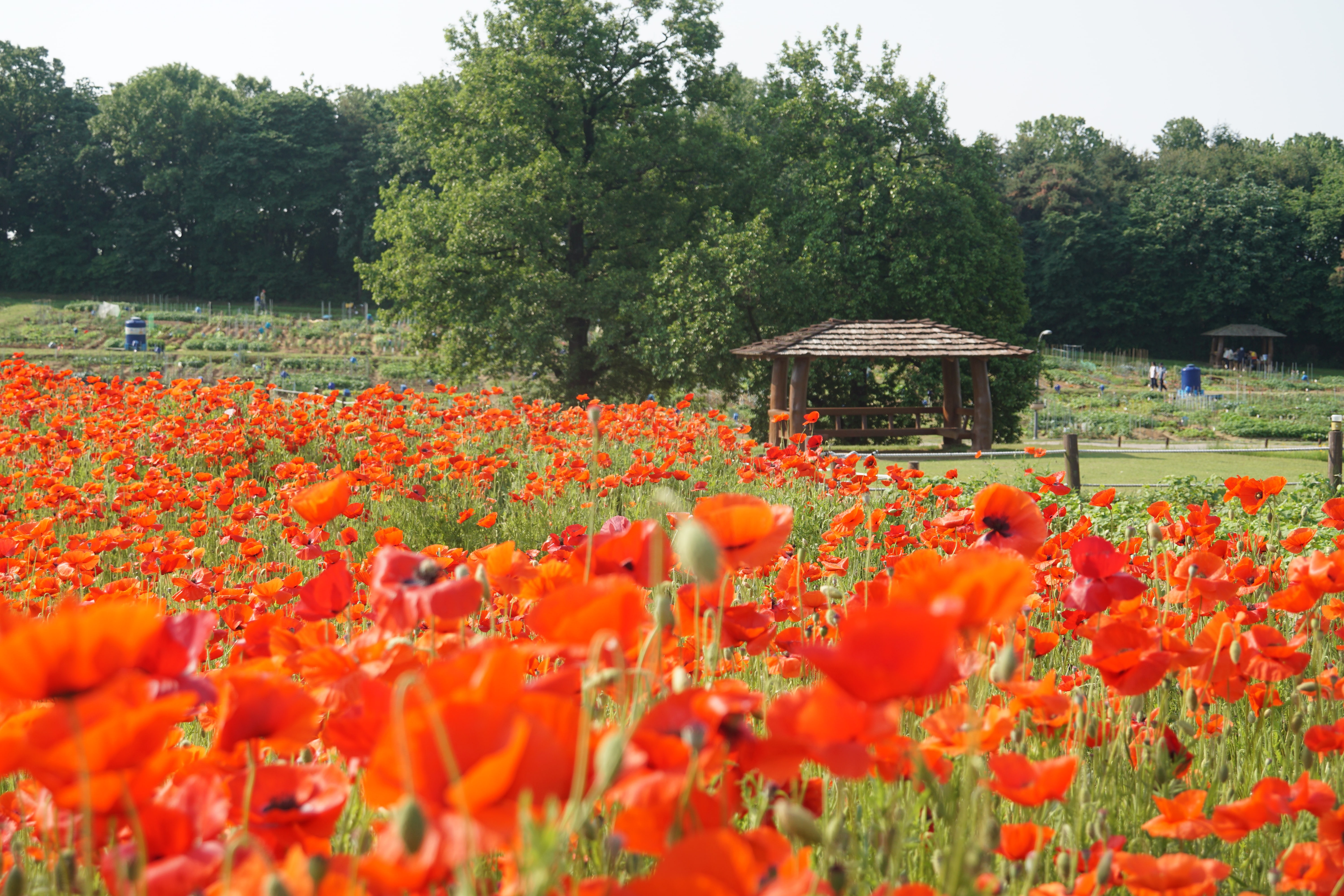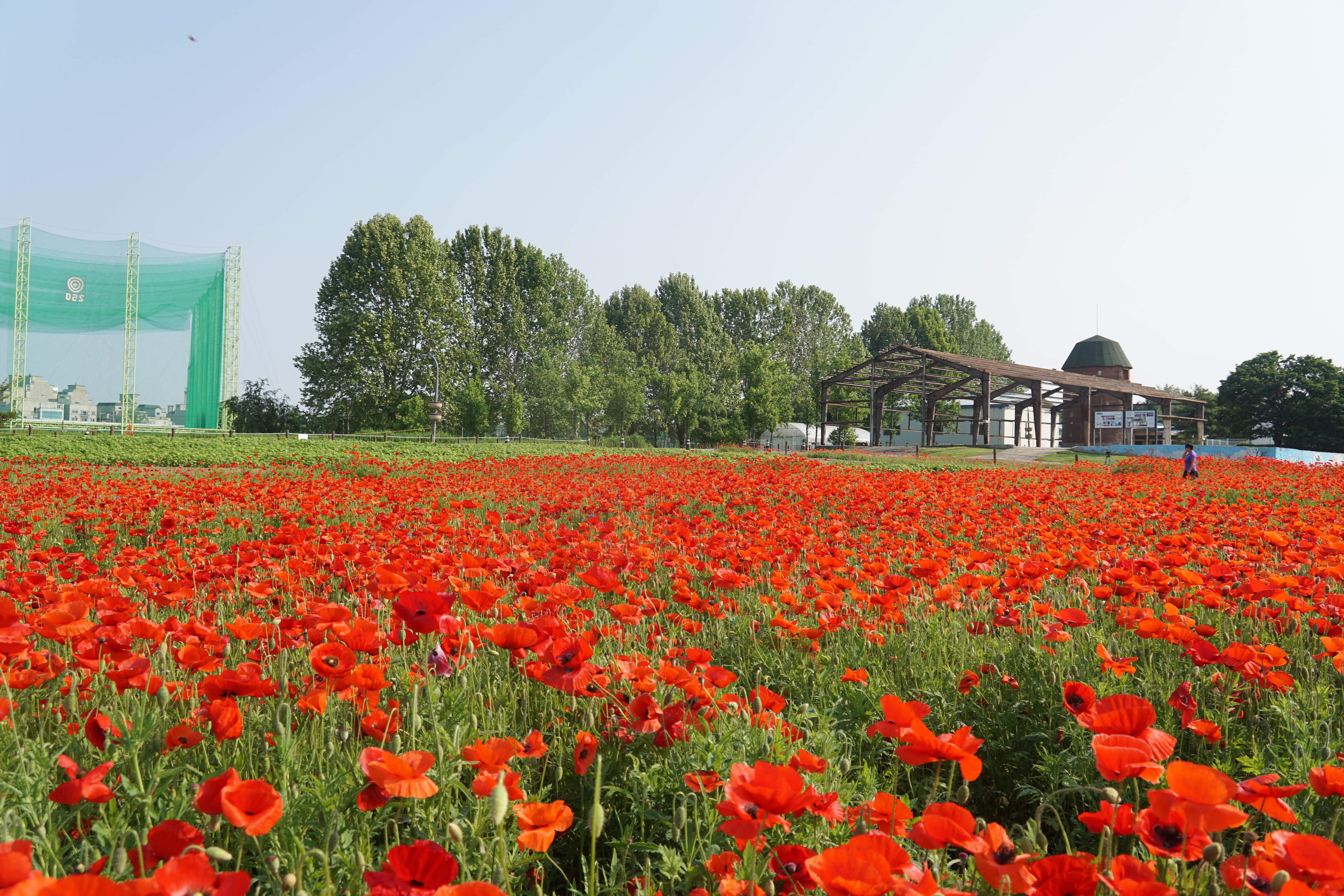 저 멀리 붉게 물든 양귀비꽃이 매혹적인 풍경을 보이고 있다.