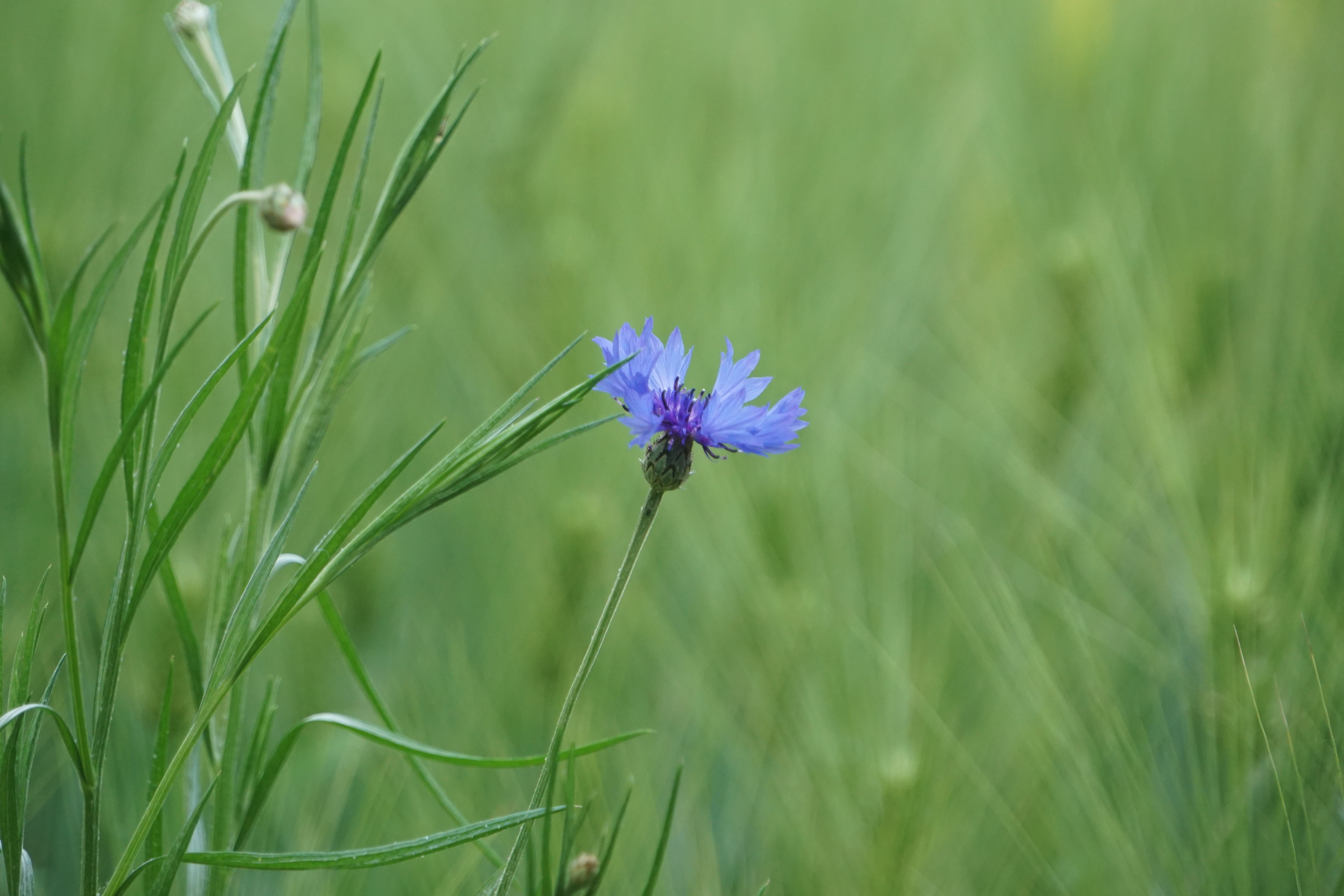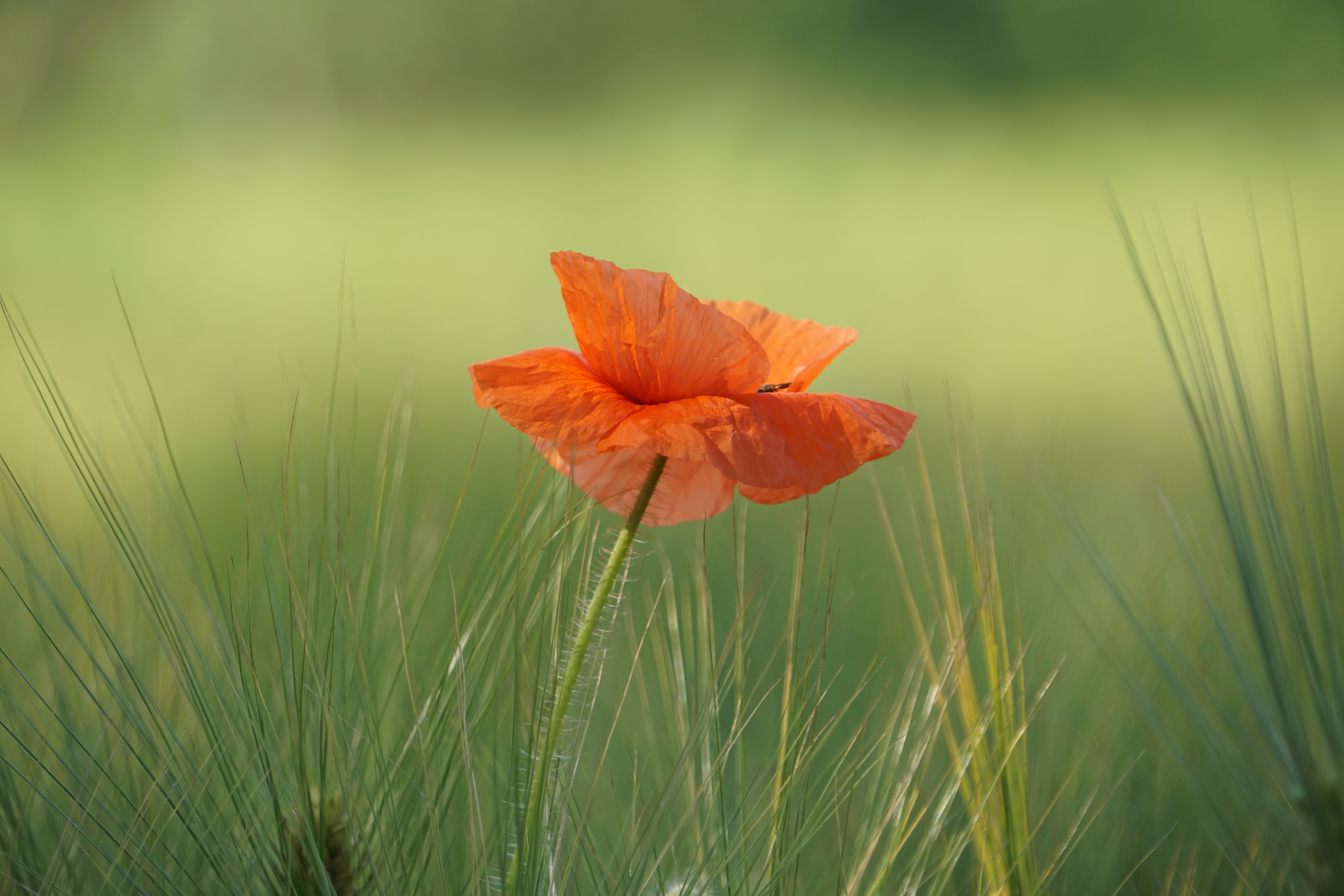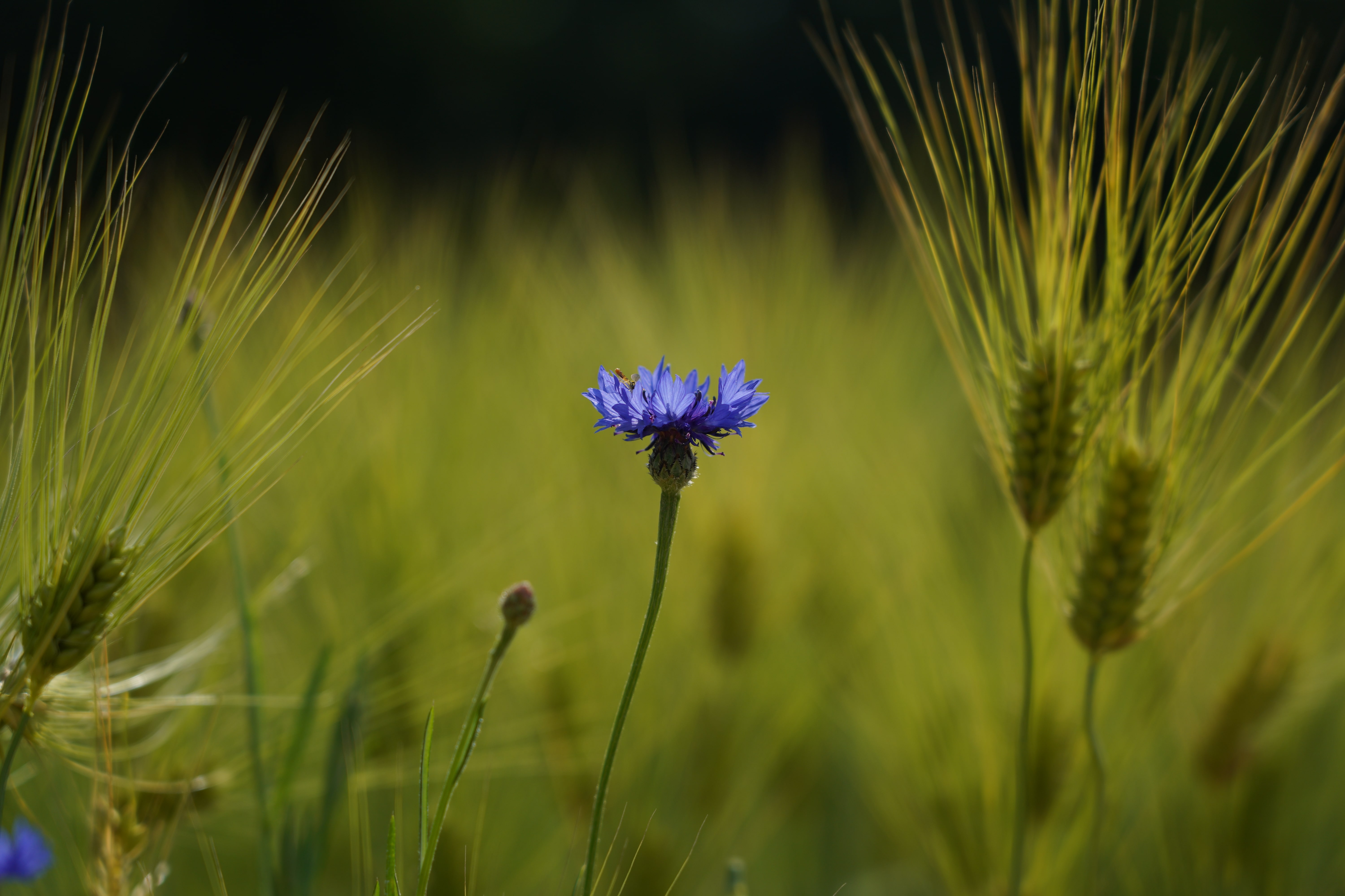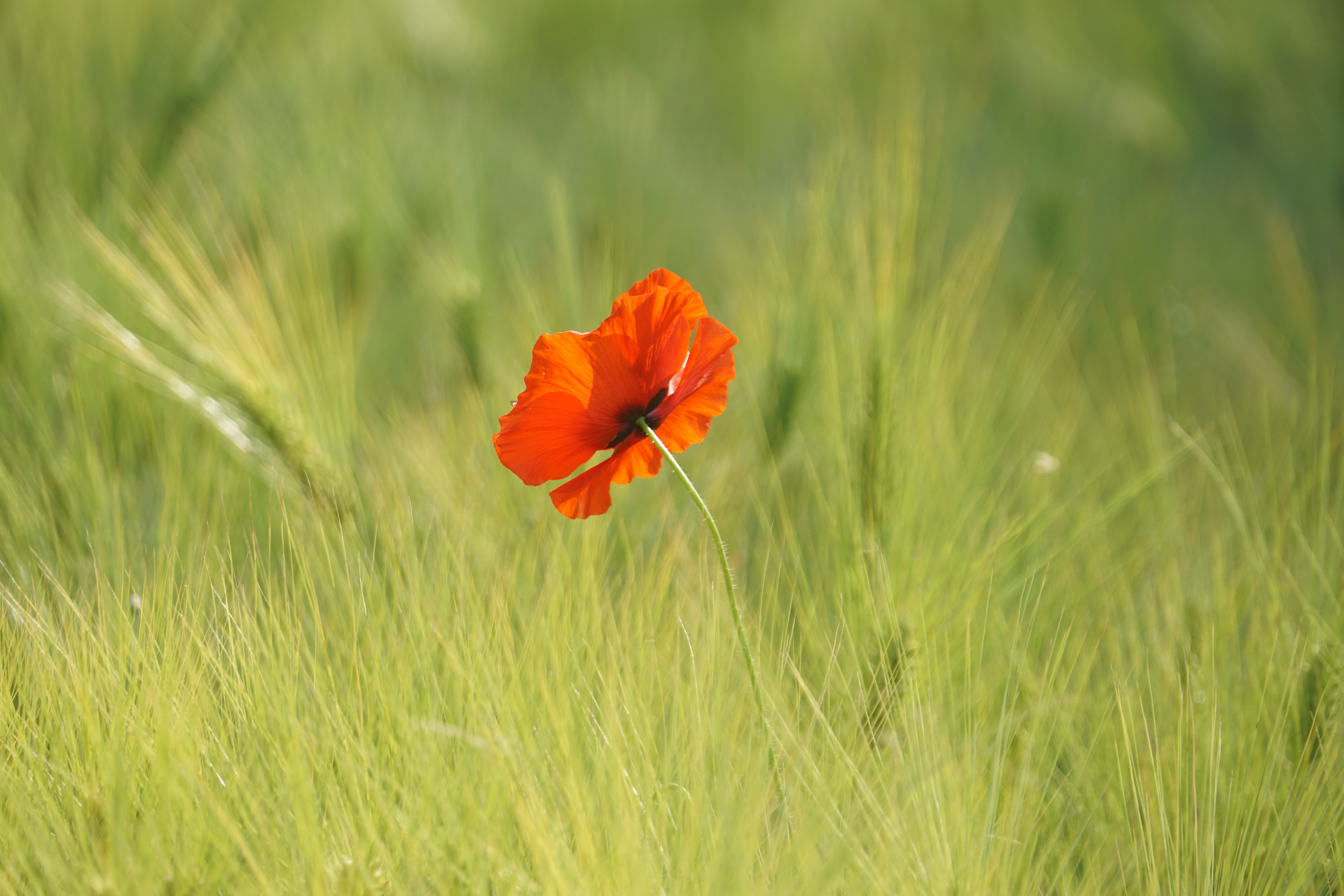 청보리 심어진 곳에는 수레국화와 양귀비꽃이 한두 개씩 피어있다.