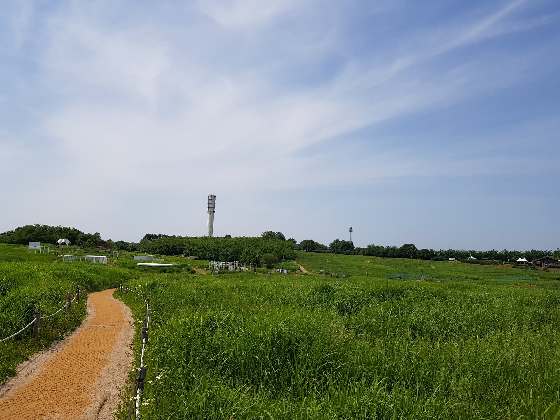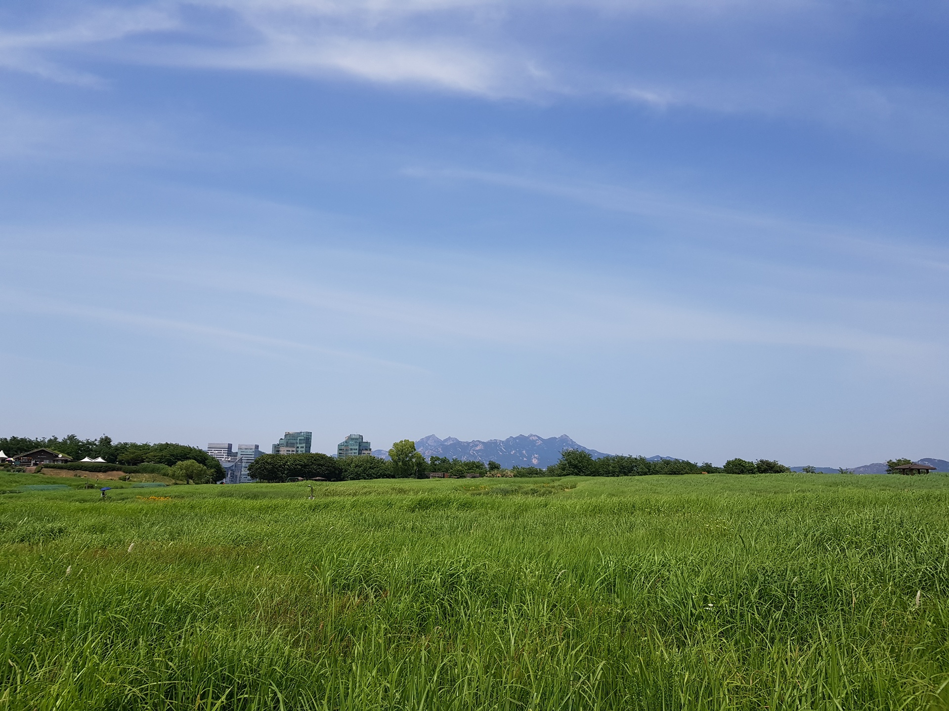 초록초록한 억새가 가득한 하늘공원의 모습이다.