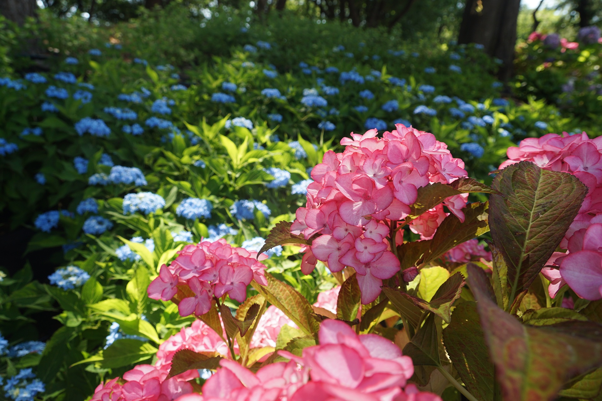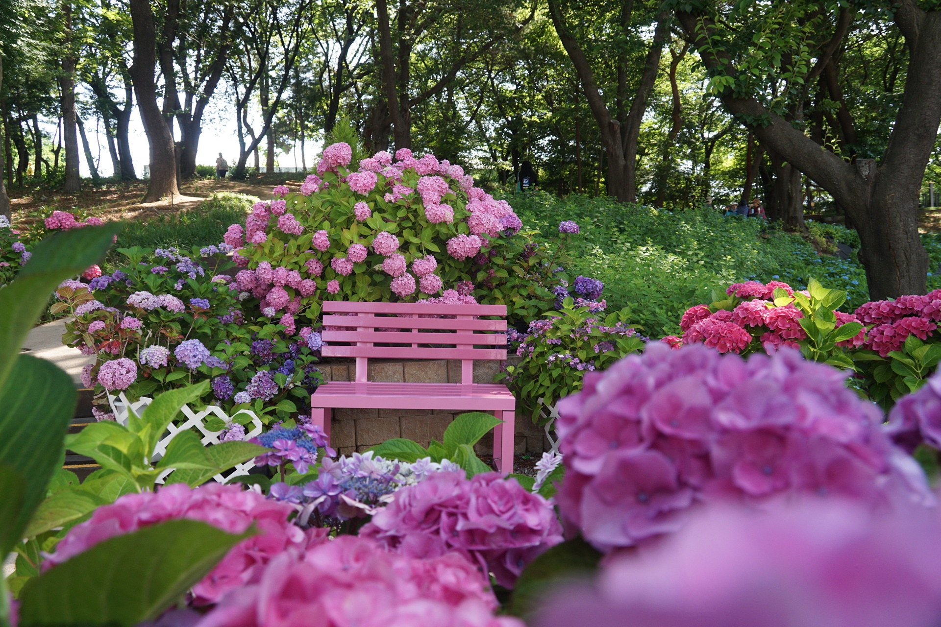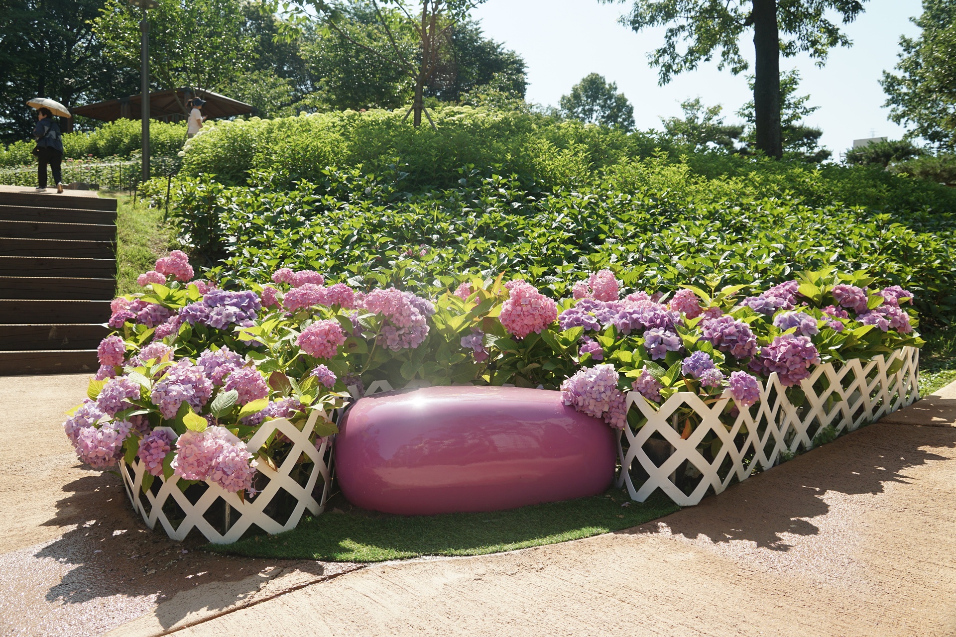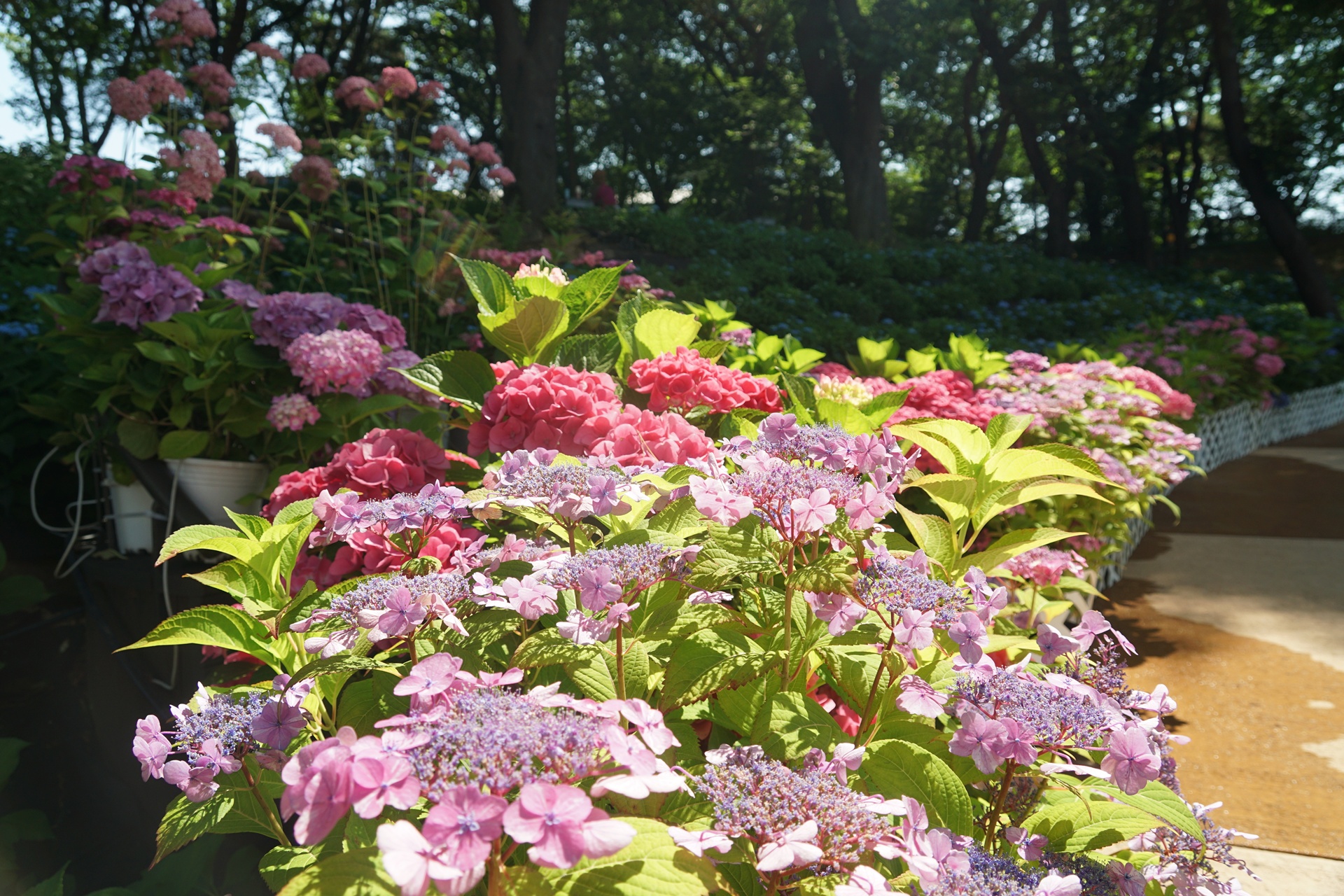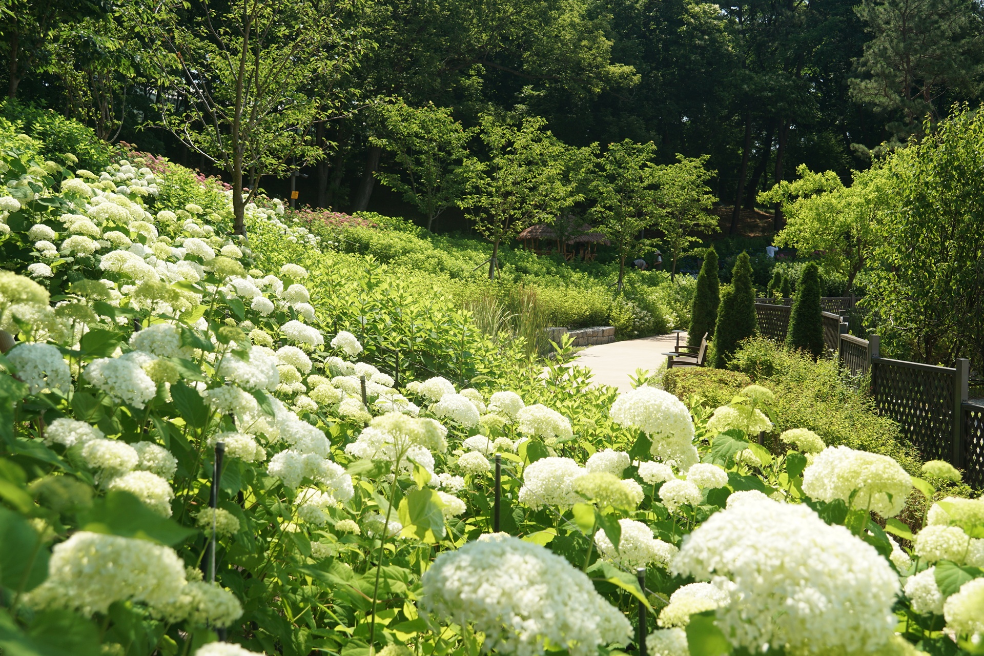 다양한 수국 품종과 자연 경관을 즐길 수 있는 장소이다.