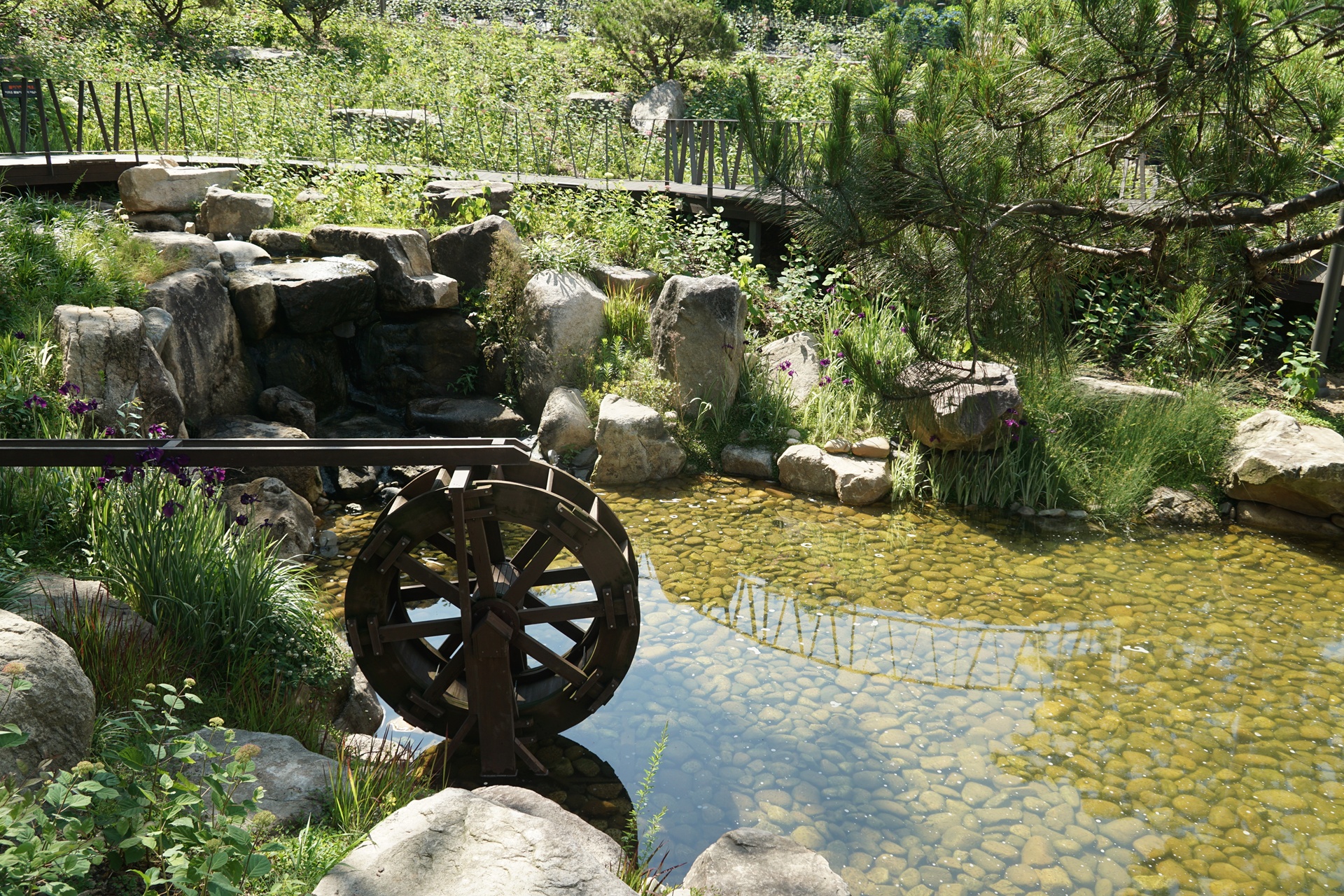 240㎡ 규모의 계류와 폭포, 생태 연못이 조성되어 있어 자연의 정취를 더한다.