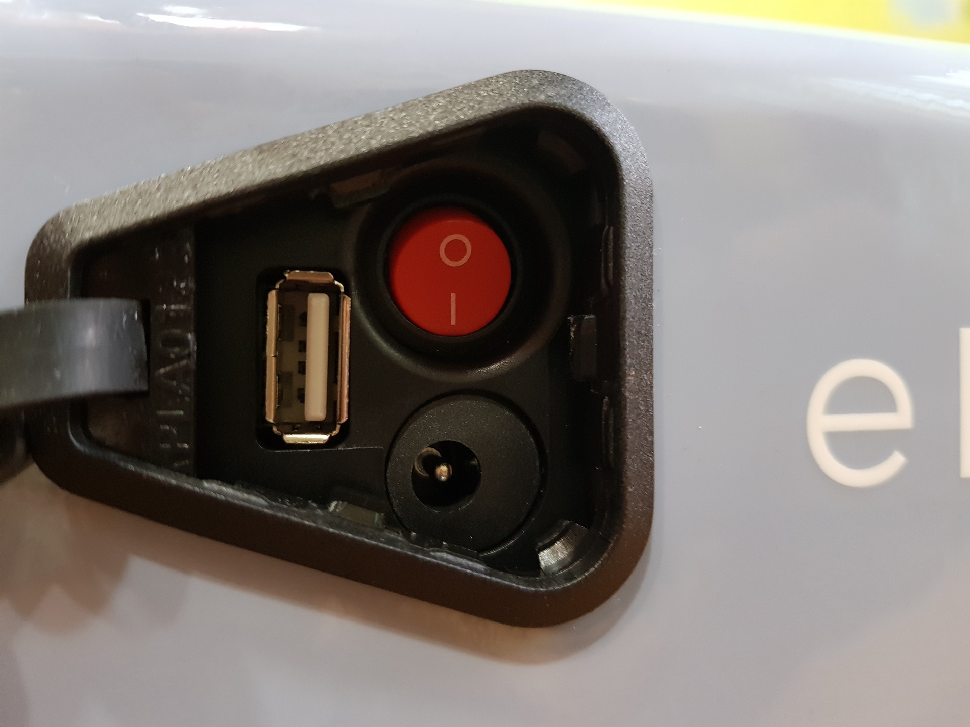기본배터리는 프레임내장형이다...스위치와 USB단자, 충전구가 보인다.