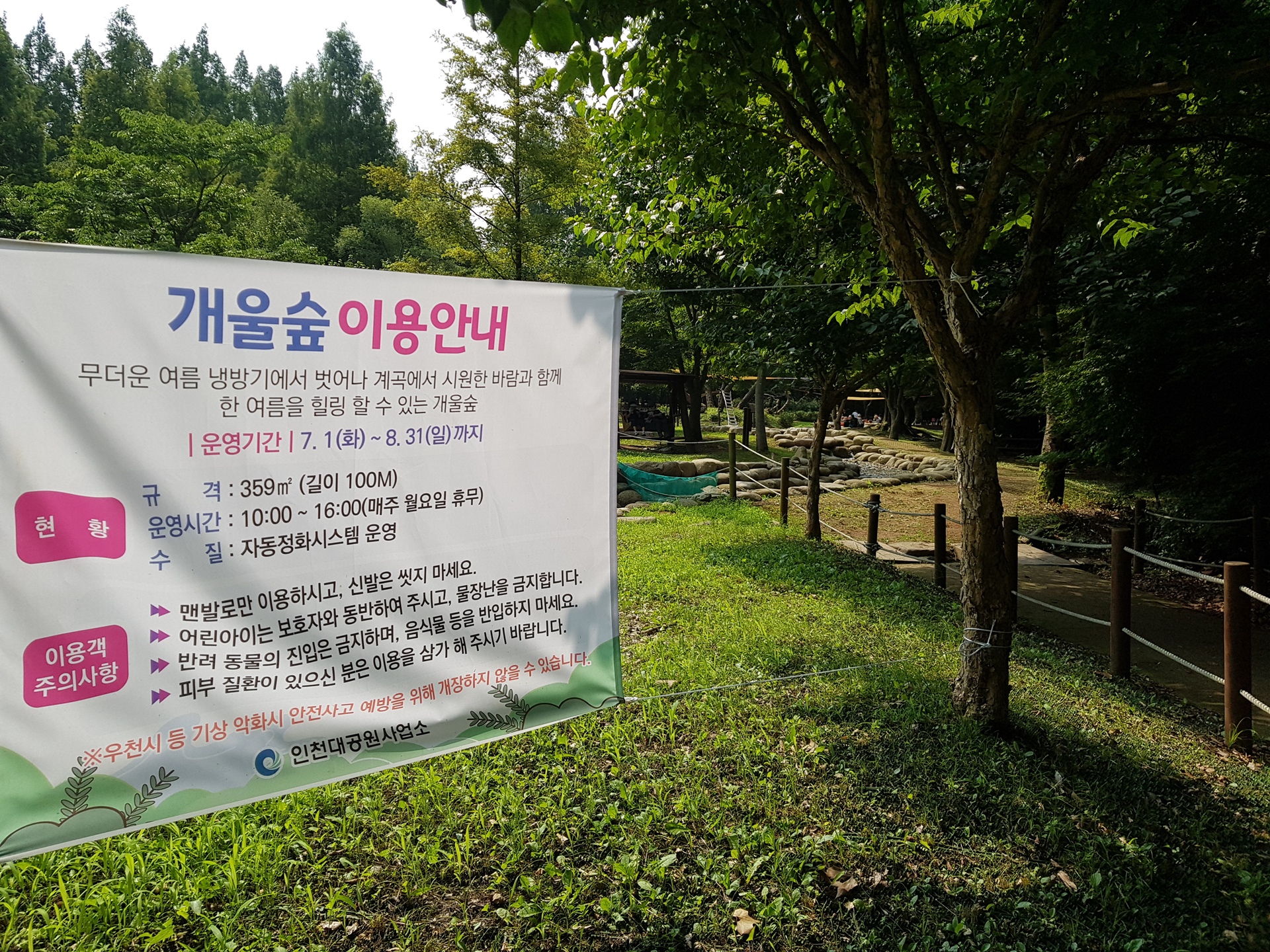 여름 7~8월 동안 한시적으로 운영하는 개울숲이다.