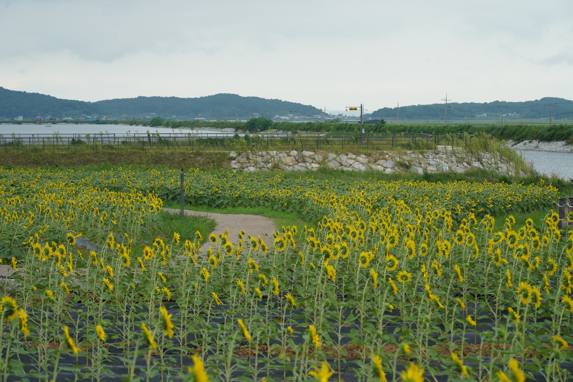 약 10만 송이의 해바라기가 난정저수지 일대를 황금빛으로 물들인다.