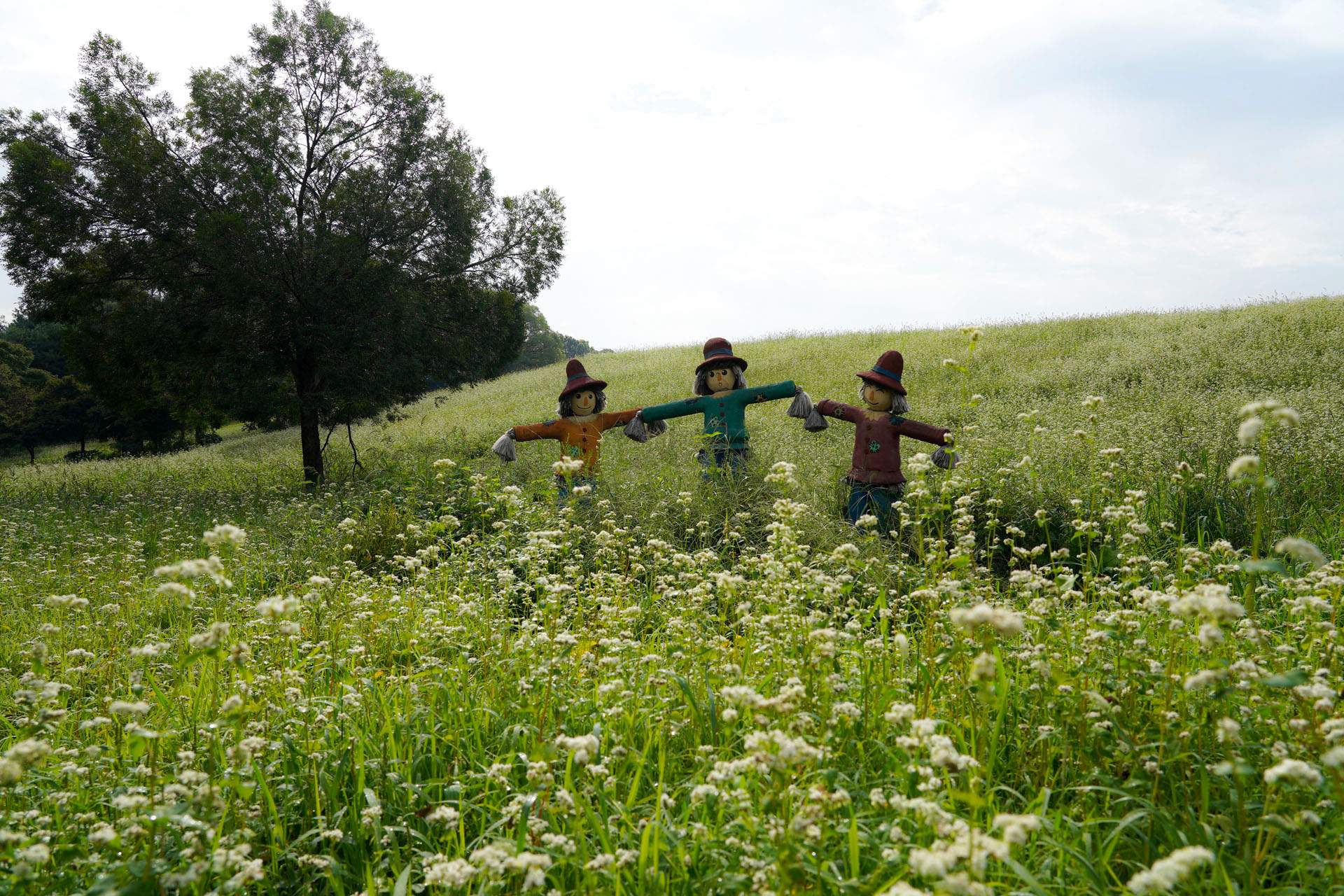 허수아비 3개가 오랫동안 자리를 지키고 있다.