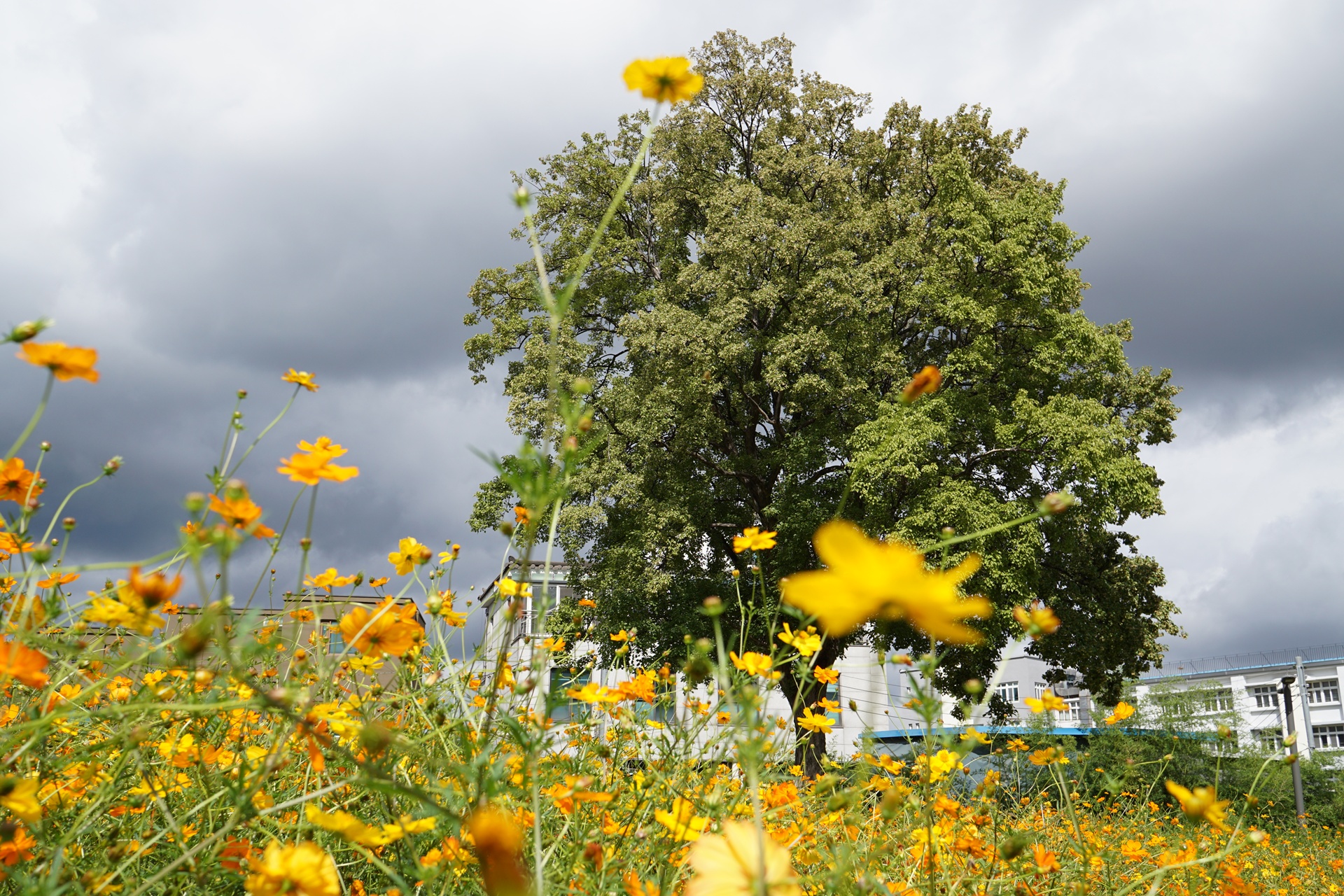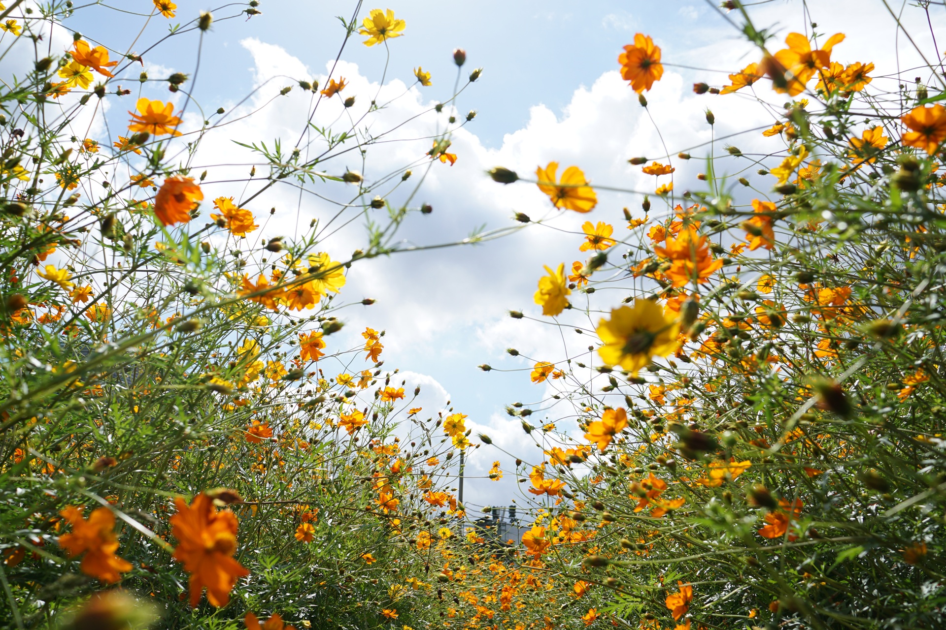 노란빛을 띤 황화코스모스가 넓게 피어있다.