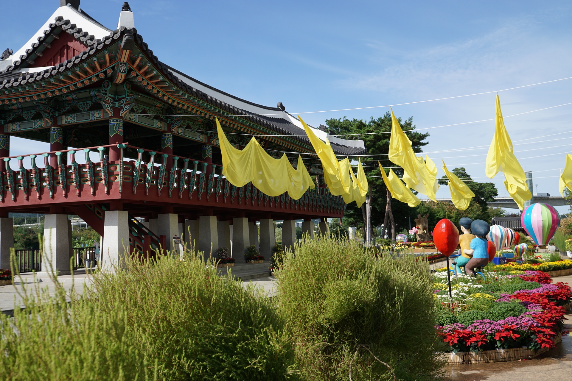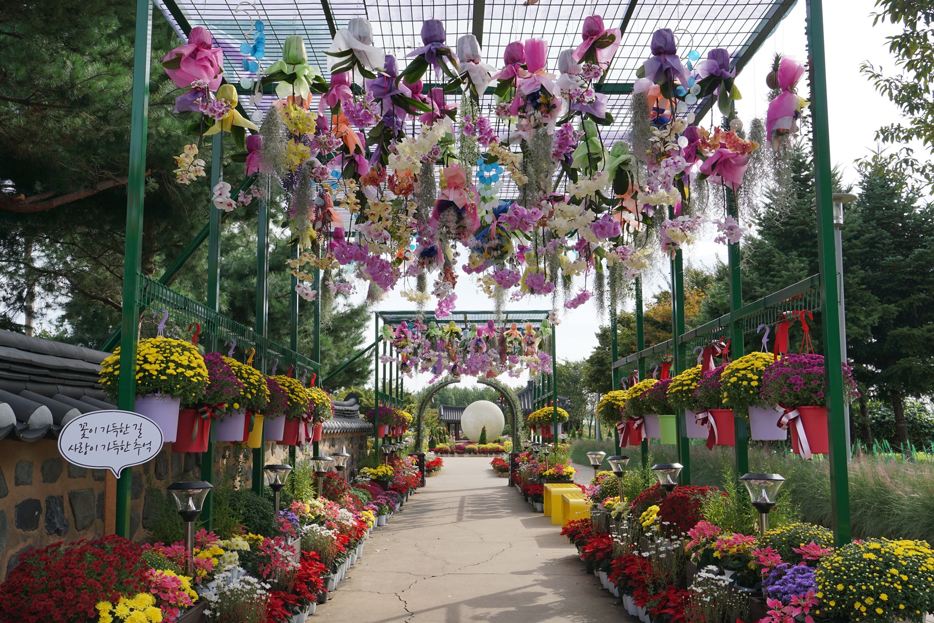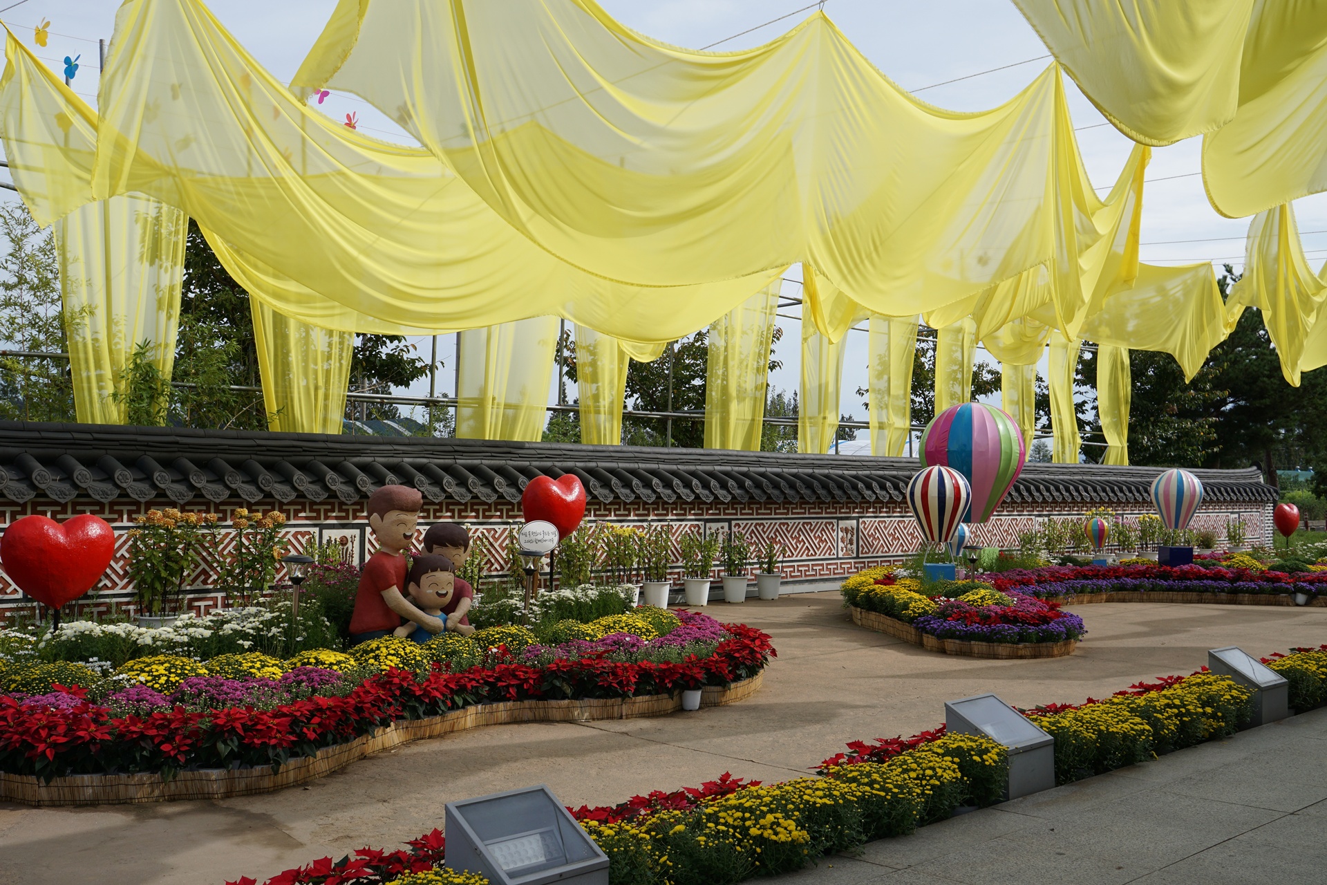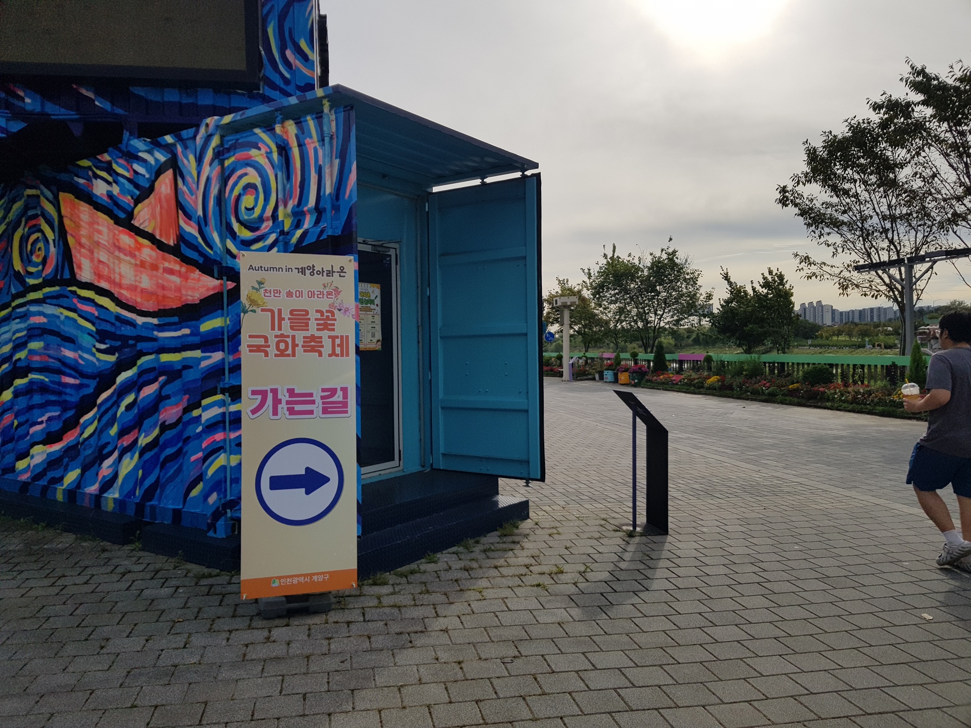 계양아라온 국화축제는 아라온에서 수향원까지 길을 따라 꽃들과 조형물을 볼 수 있다.