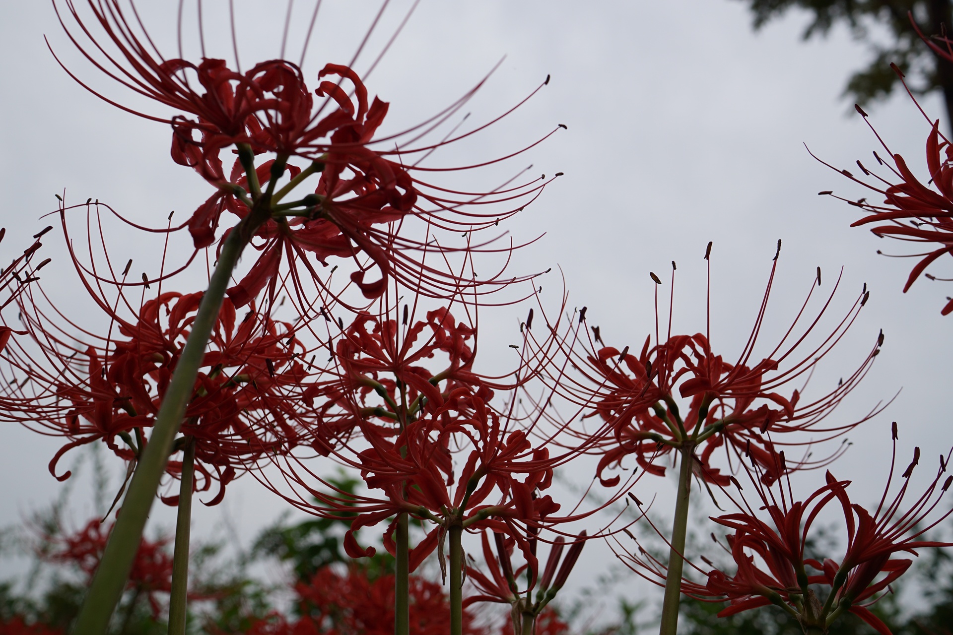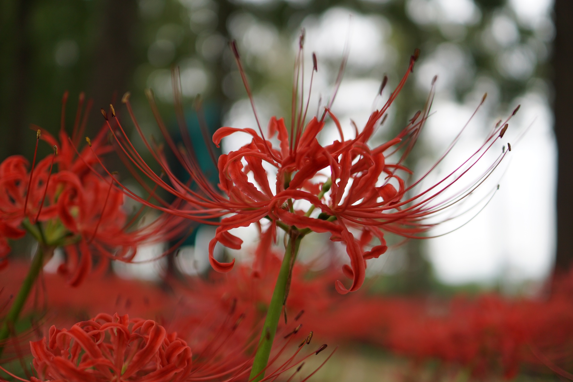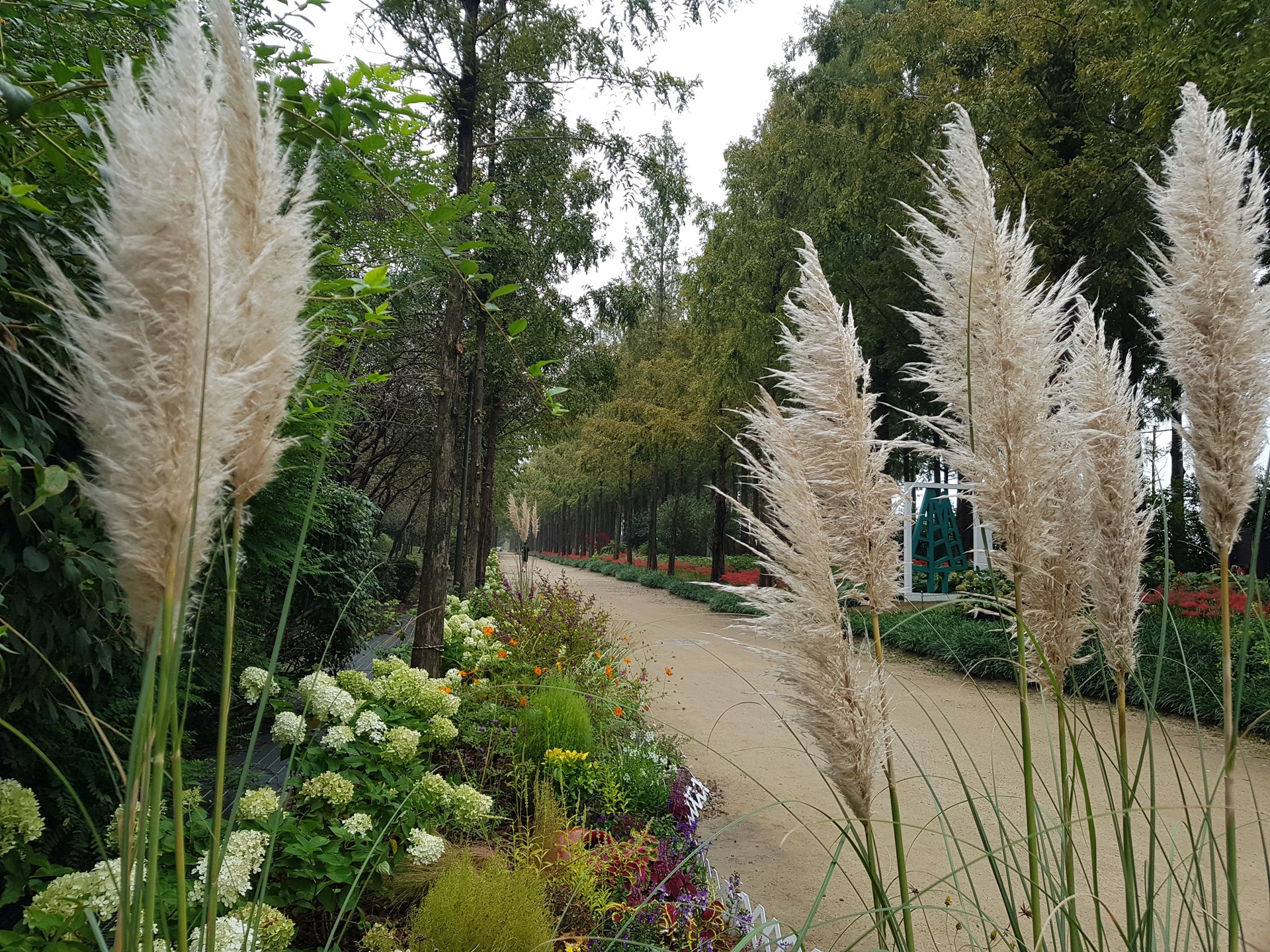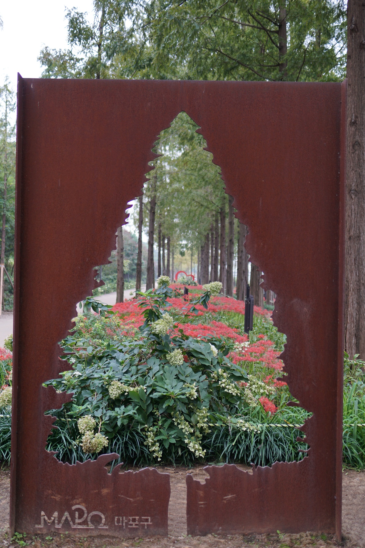 메타세콰이어길 좌우로 활짝 피어있는 꽃무릇.