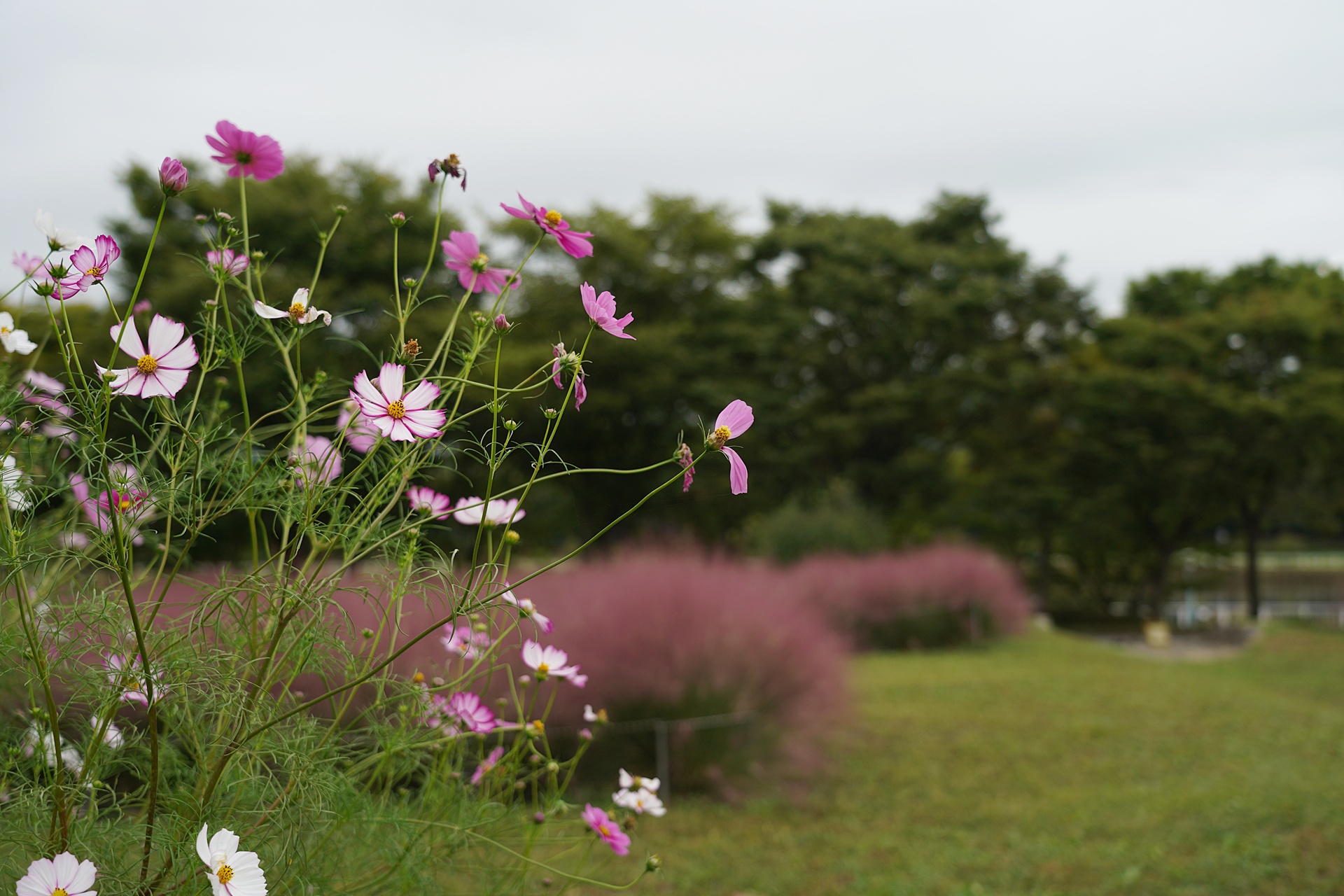 정문 바로 왼편에 핑크뮬리가 가득했다.