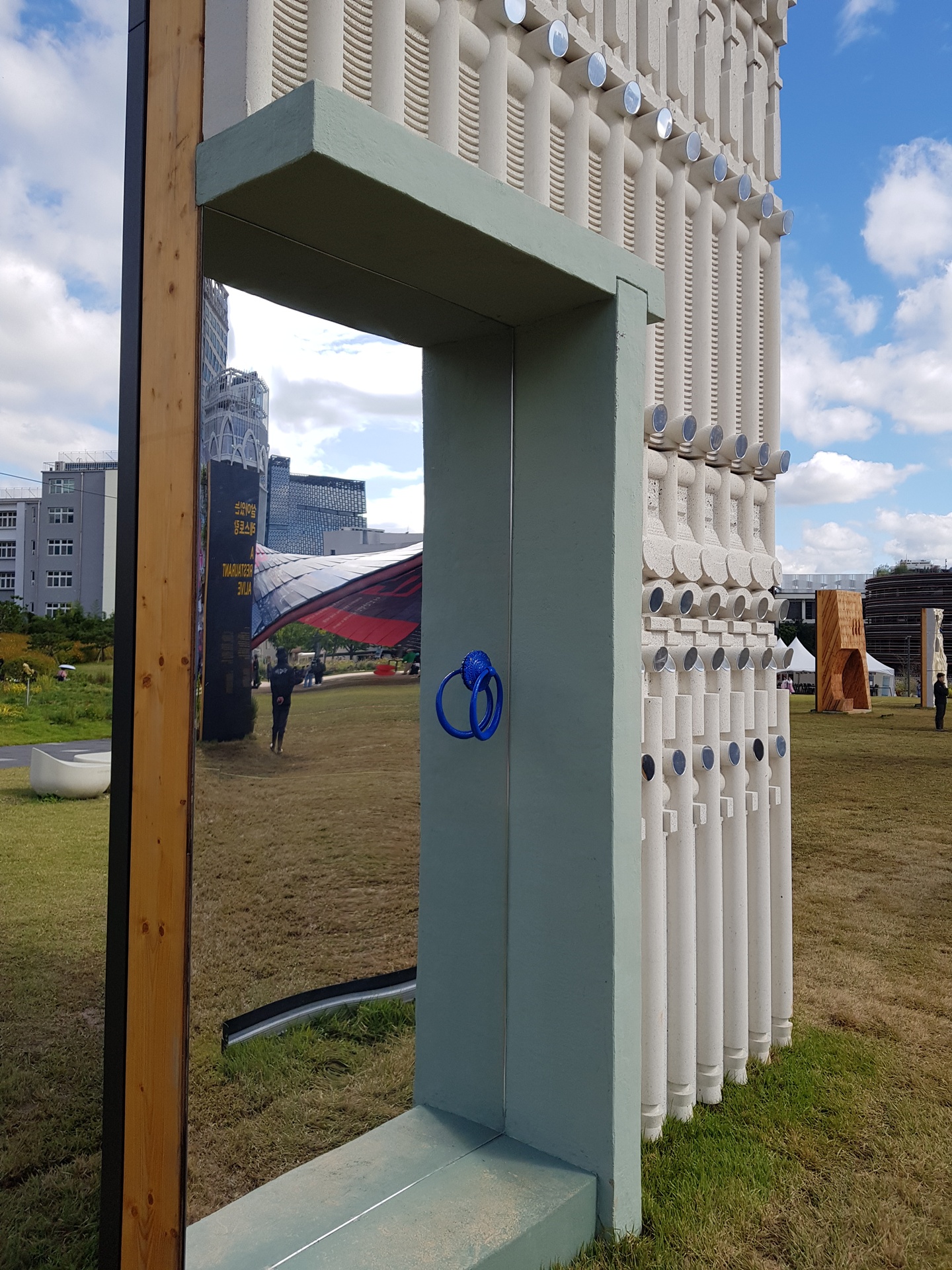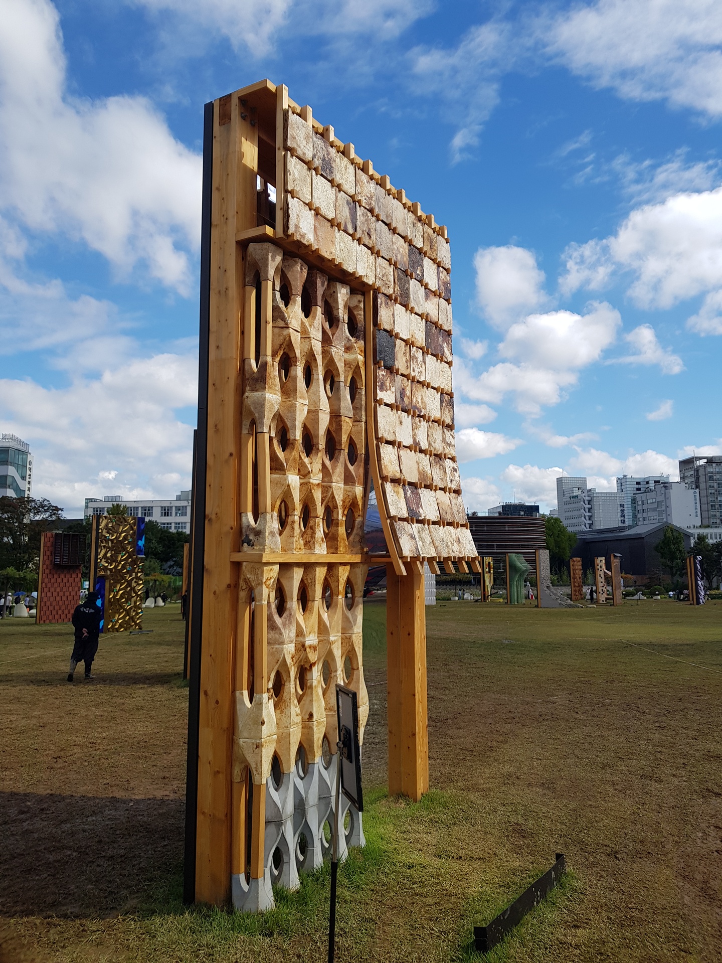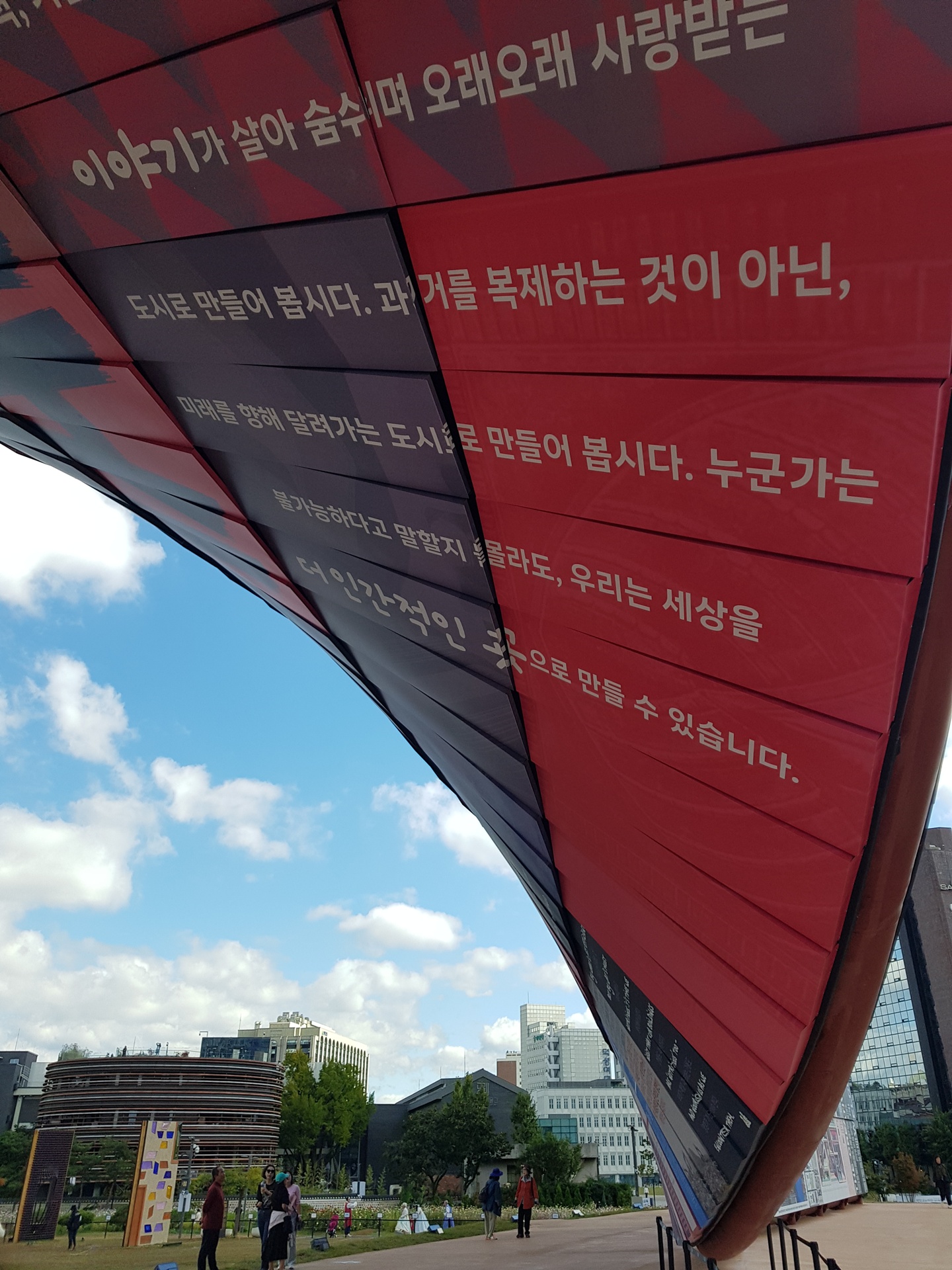 광장에는 벽이 전시되어 있다.