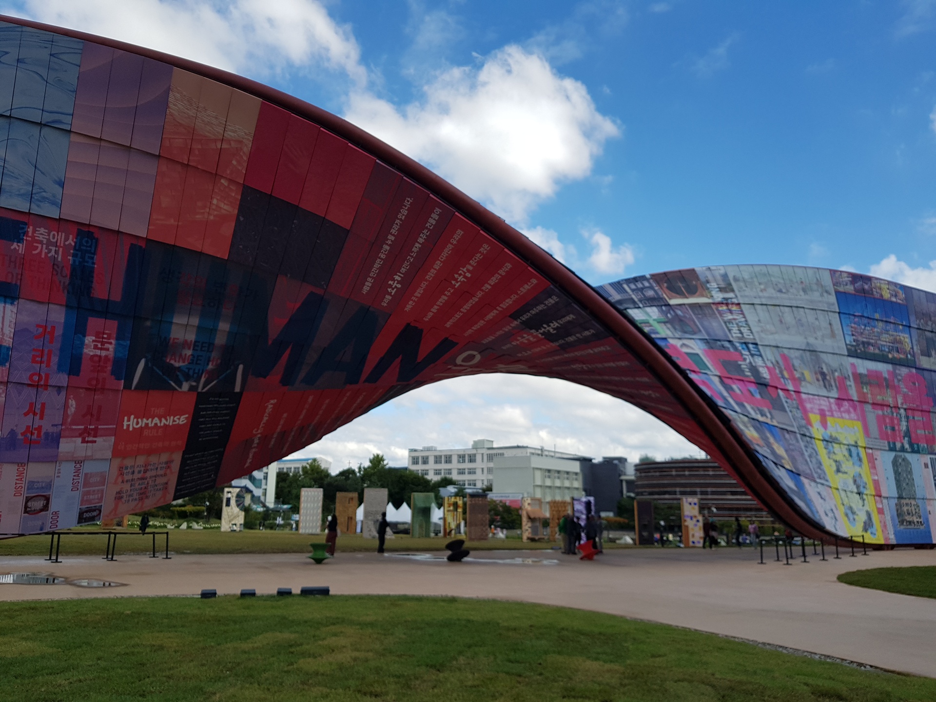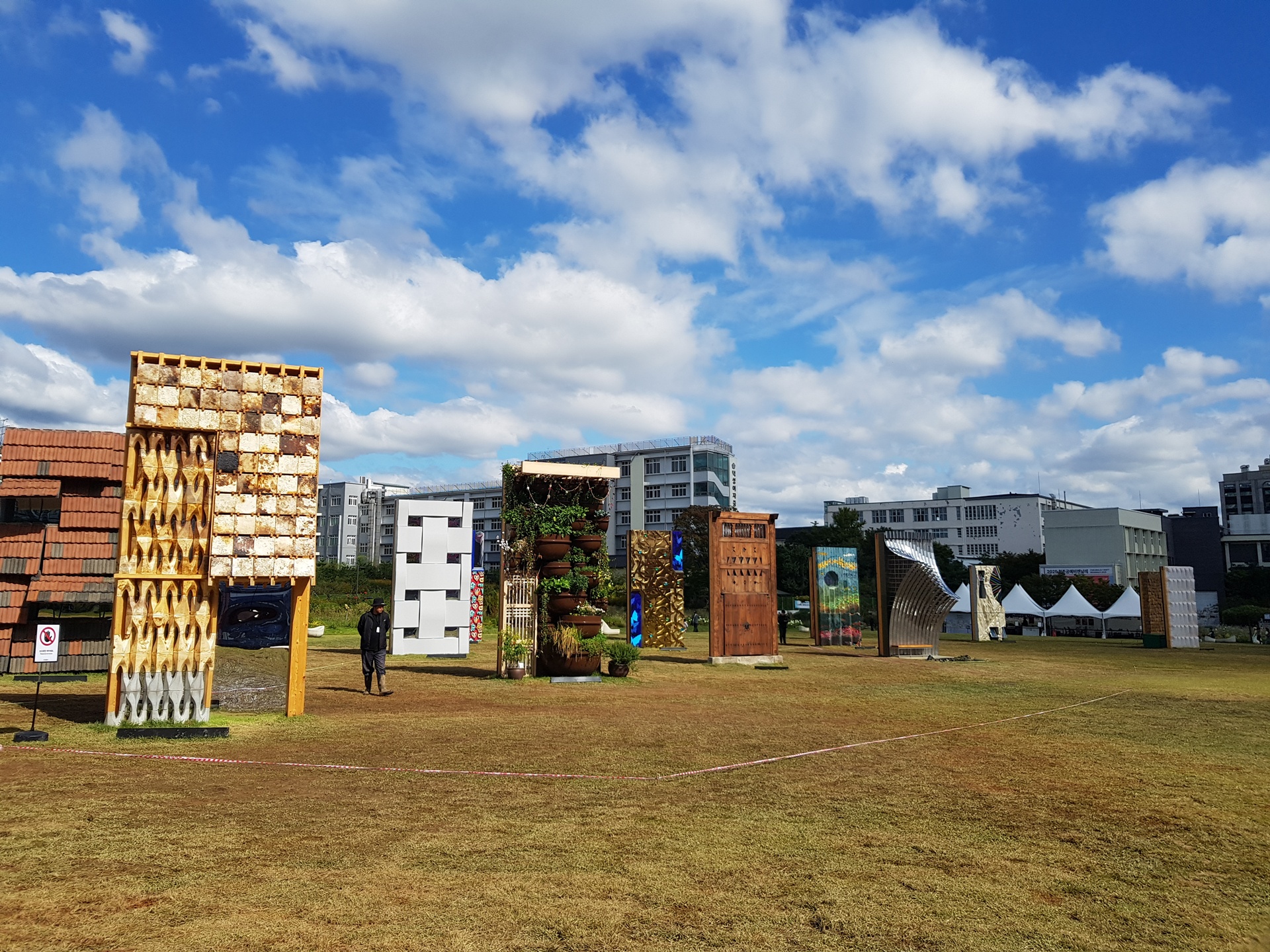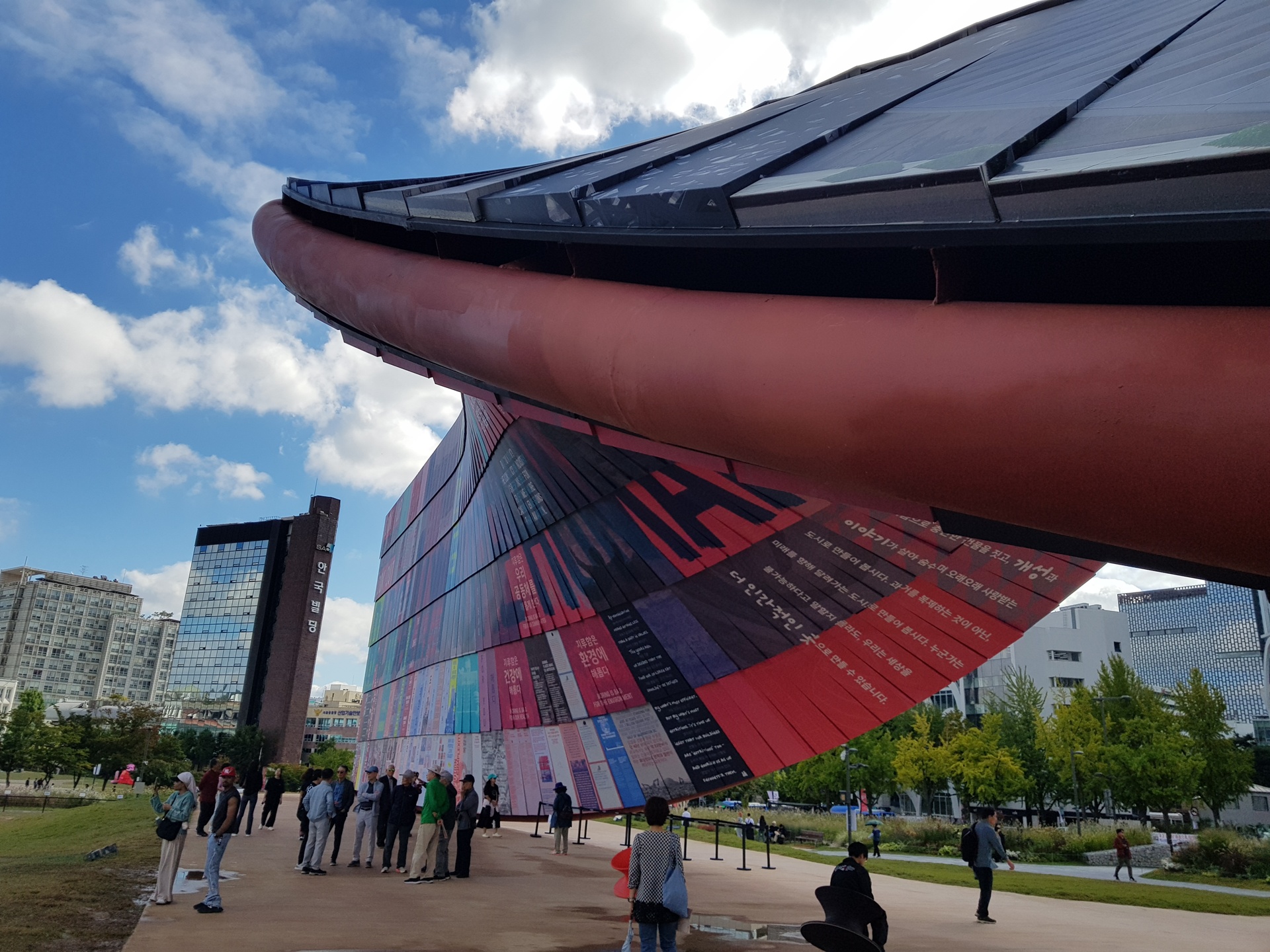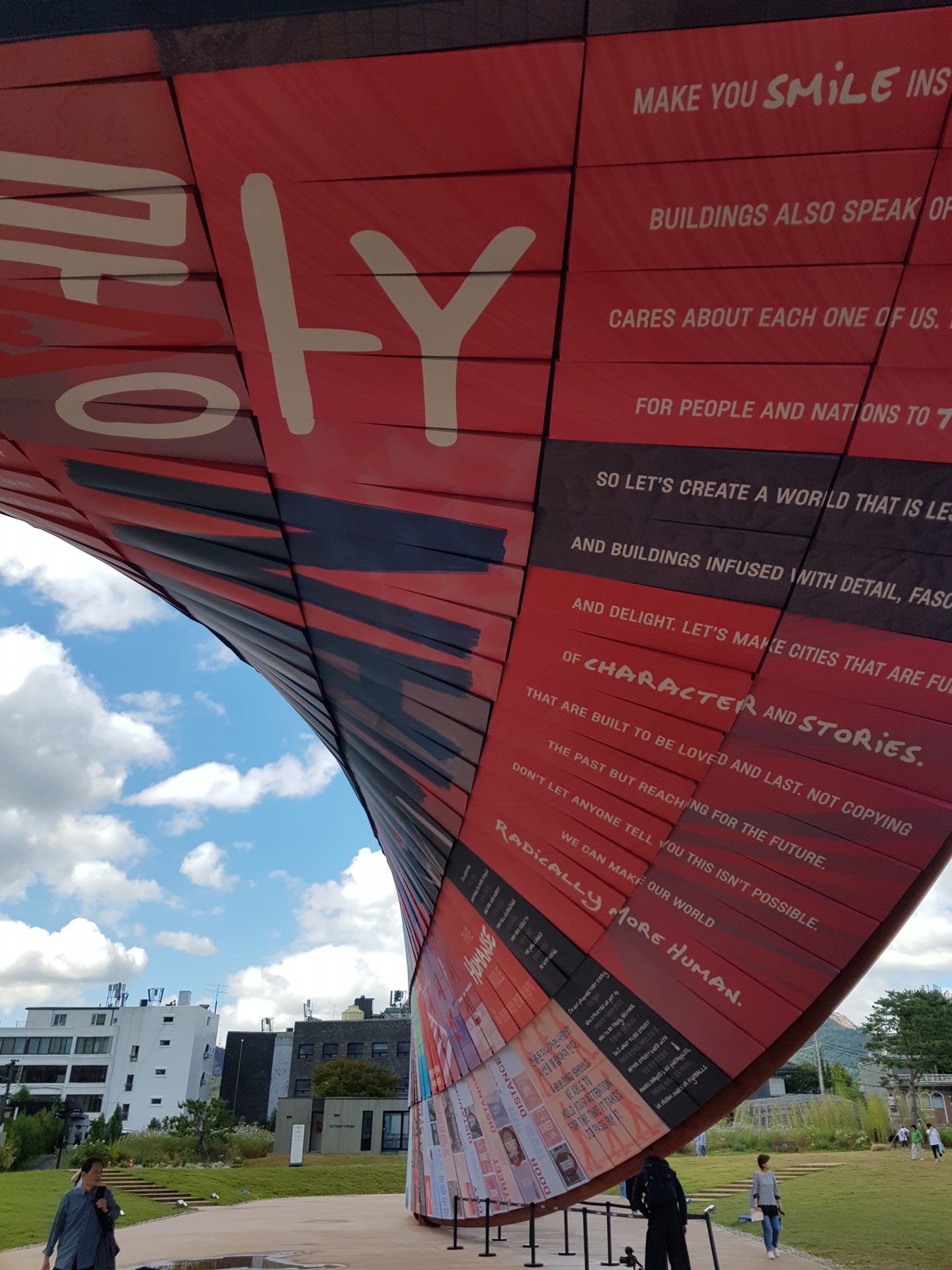광장에는 벽이 전시되어 있다.