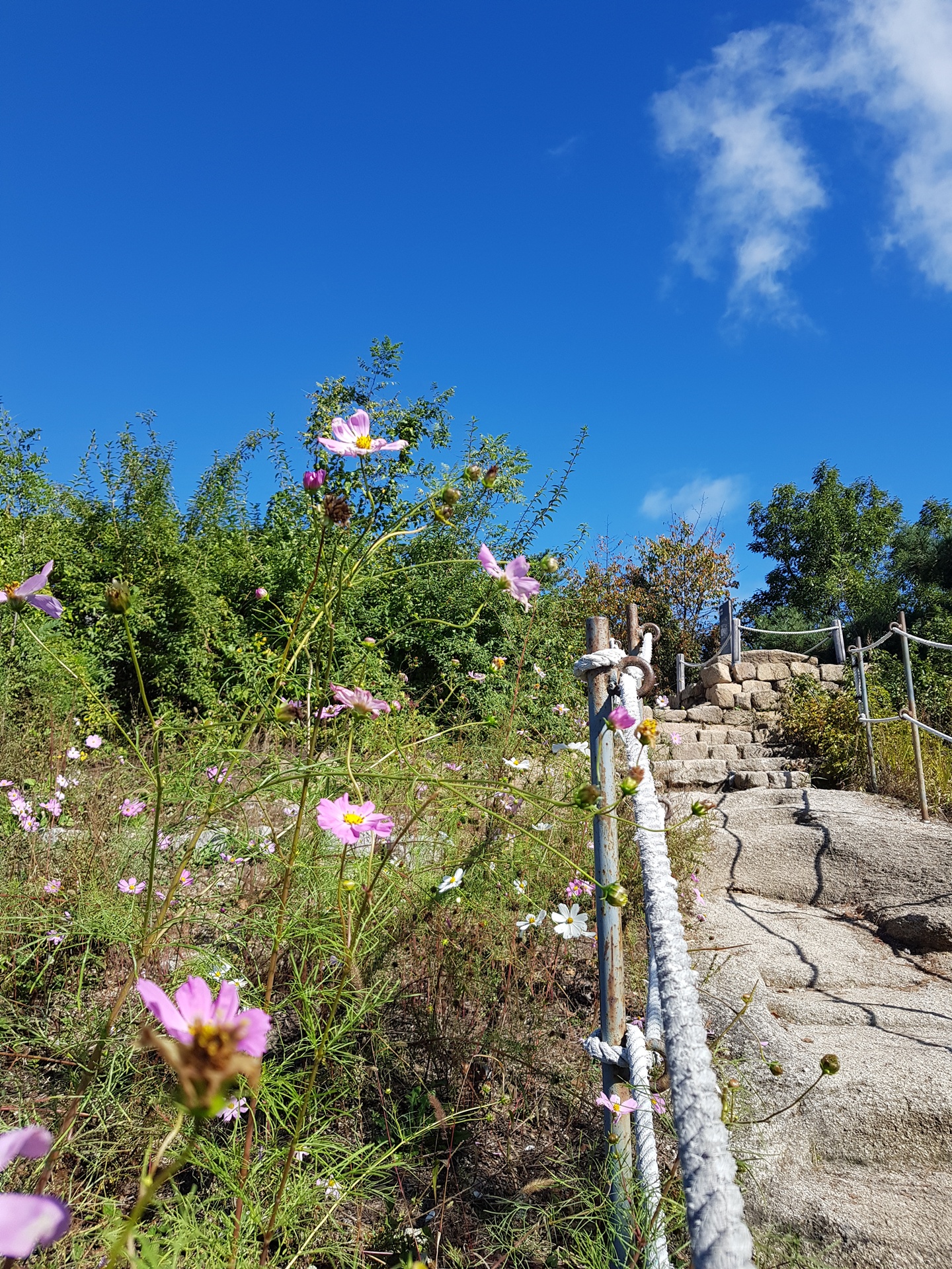 정상 올라가는 길에 핀 코스모스