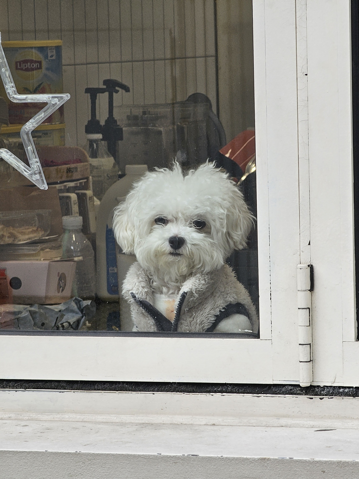 힘들게 올라가다 마주친 강아지.