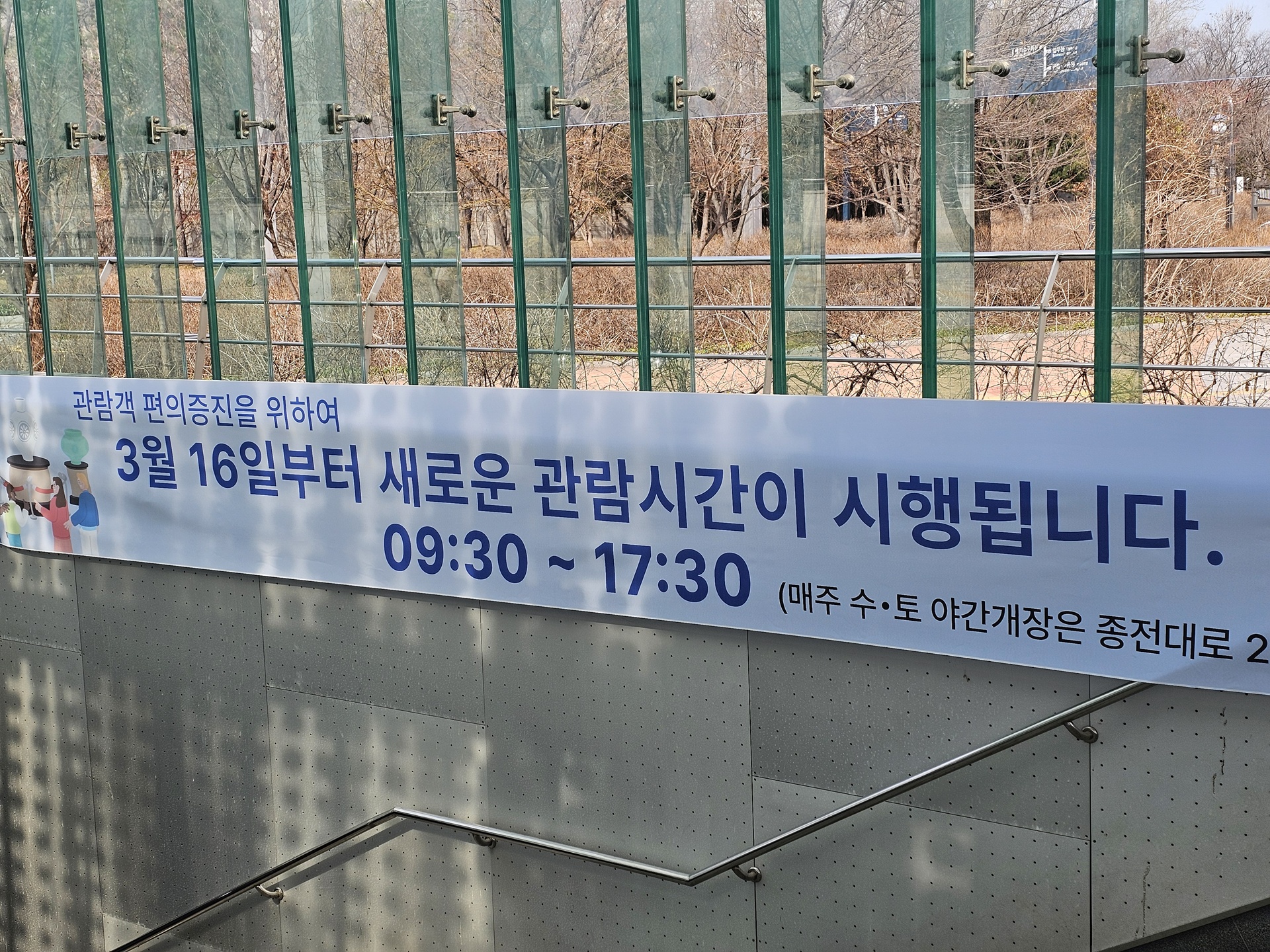 국립중앙박물관이 기존 10시에 시작인데 3월 16일부터는 9시 30분부터 시작한다.