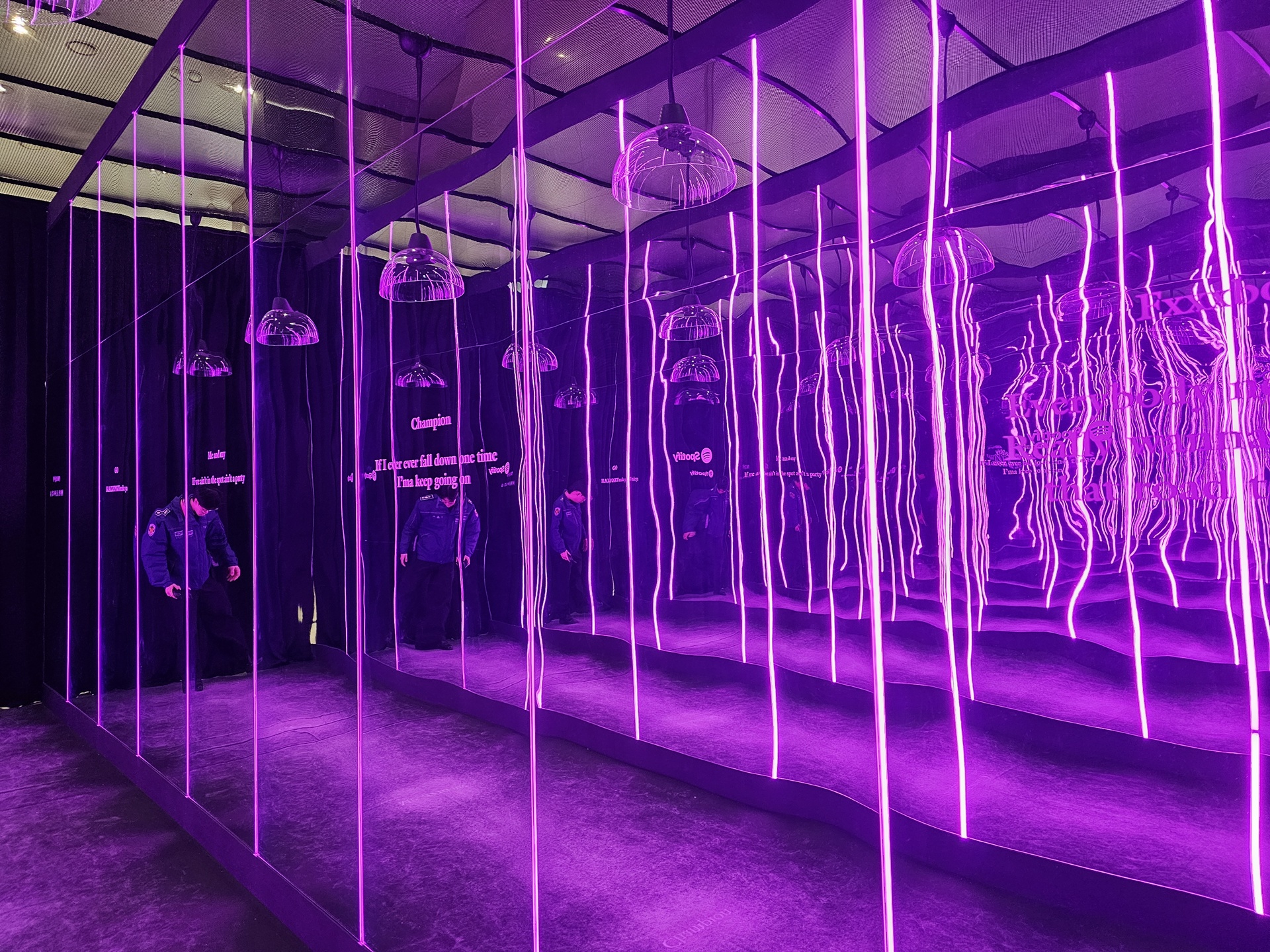 리스닝 세션은 곡명이 적힌 거울 앞에 서면 천장에 설치된 개별 스피커를 통해 음악이 나온다.