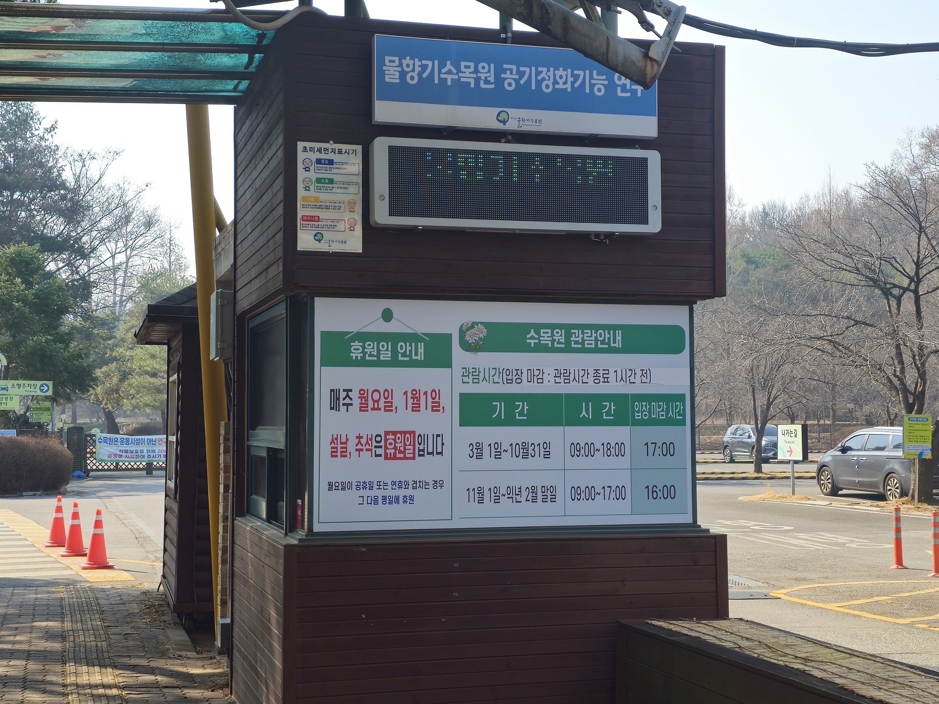 오산 물향기수목원은 경기도 오산시에 위치한 도립 수목원으로, 입장료가 무료이며 사계절 다양한 테마 정원을 즐길 수 있는 힐링 명소입니다. 현재(3월~10월) 관람시간은 오전 9시부터 오후 6시까지이며, 매주 월요일은 휴원한다.